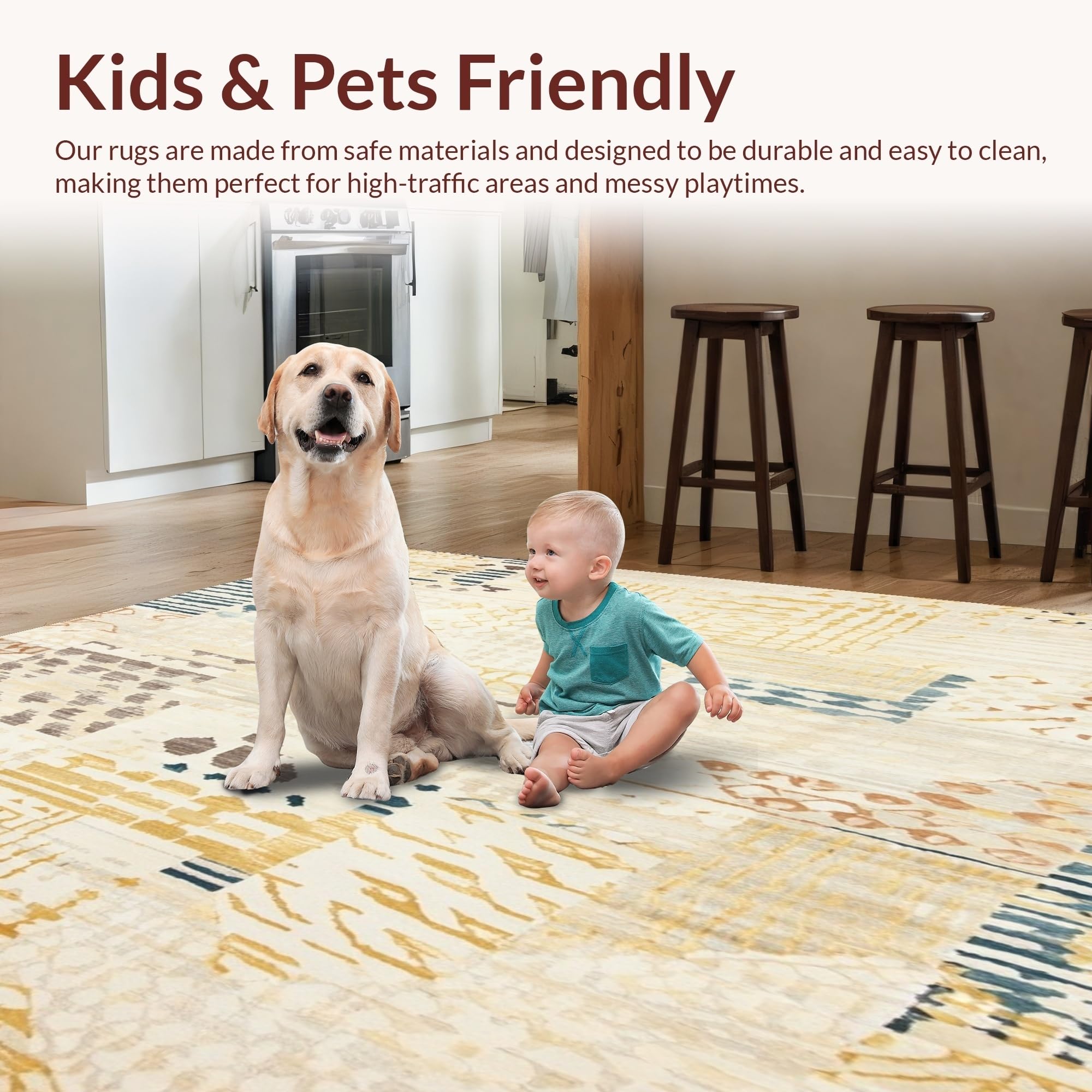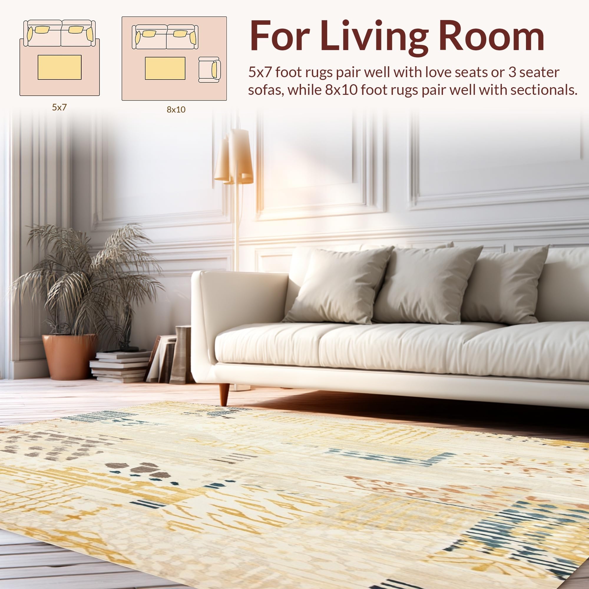 Ultra Soft Area Rug, Non Slip, Stain Resistant, Washable Area Rugs for Living Room, Bedroom, Modern Boho Ivory Beige(Beige) Overview: