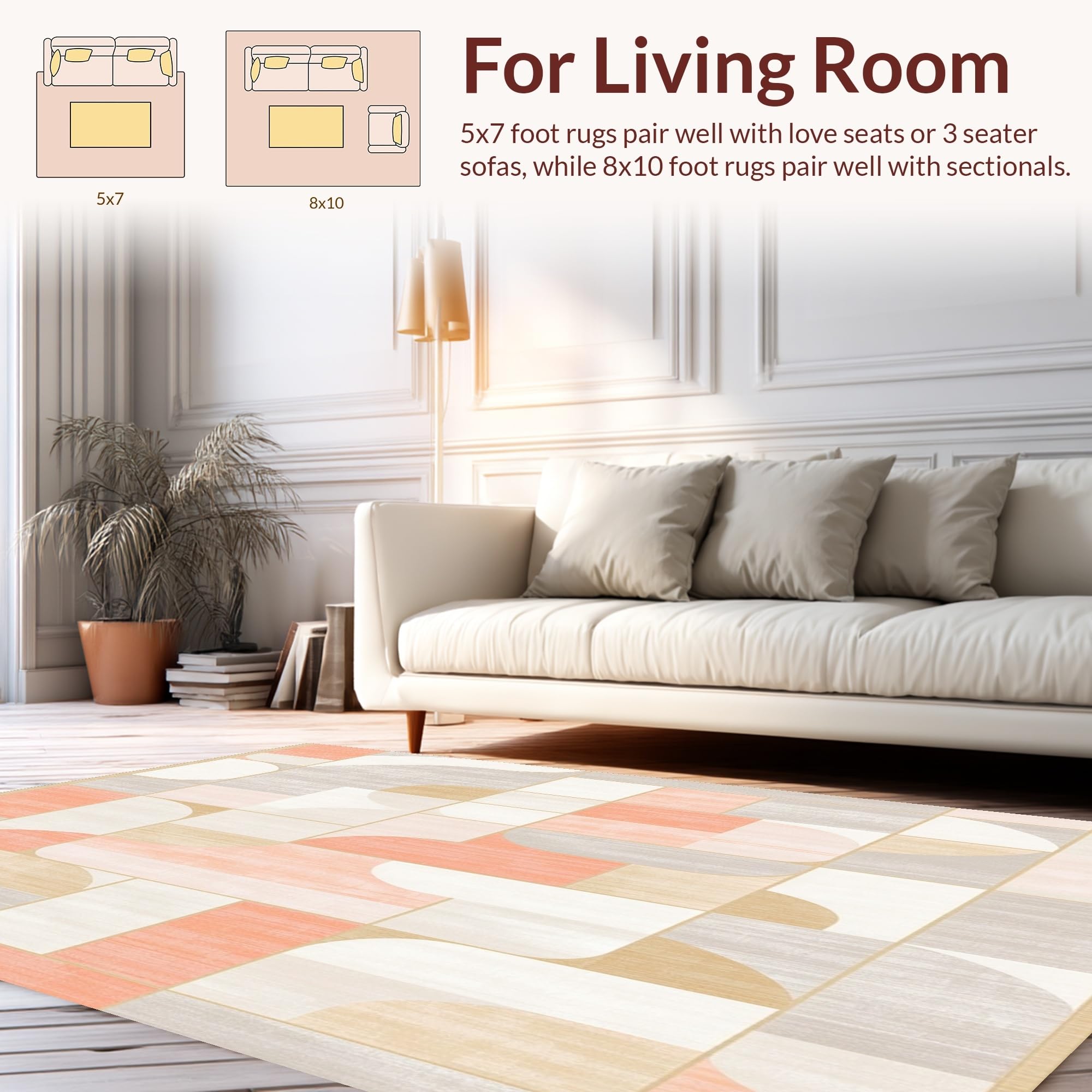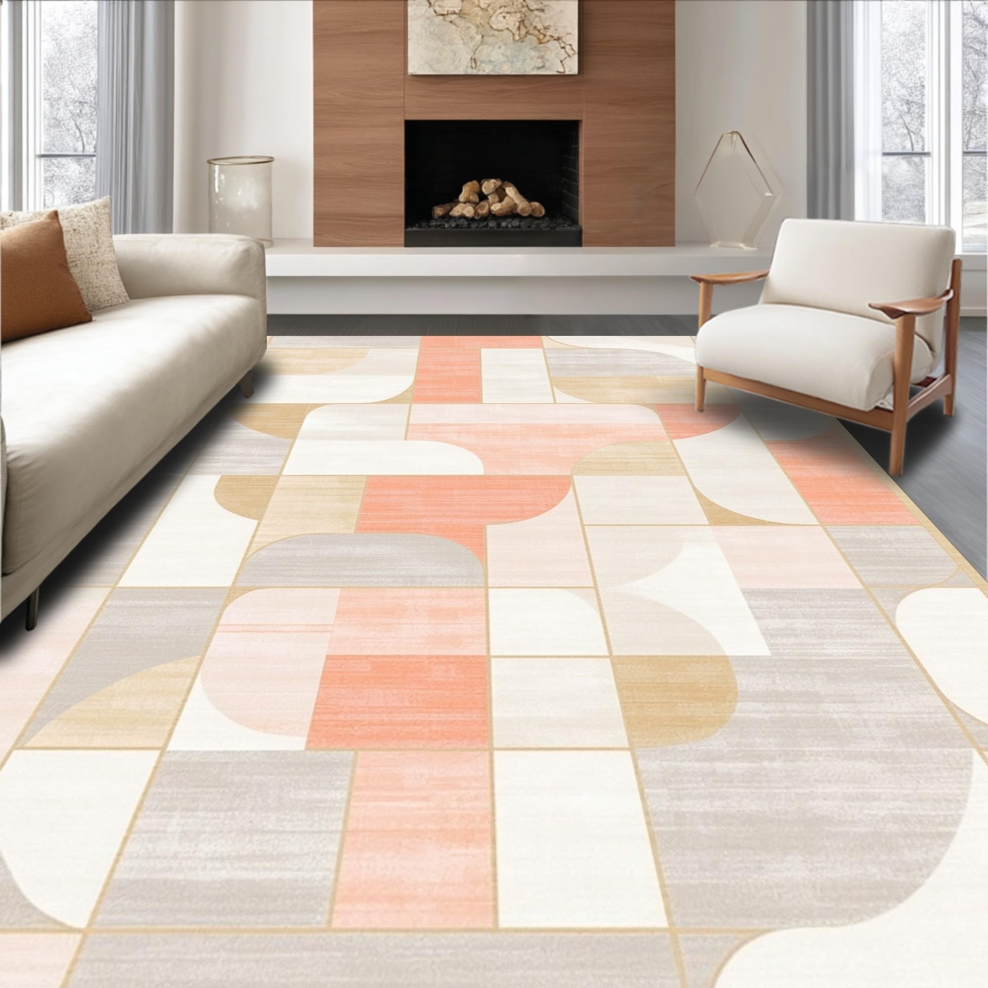 Ultra Soft Area Rug, Non Slip, Stain Resistant, Washable Area Rugs for Living Room, Bedroom, Modern Boho Kids Area with Playful Geometric Puzzle Motifs(Beige) Overview: