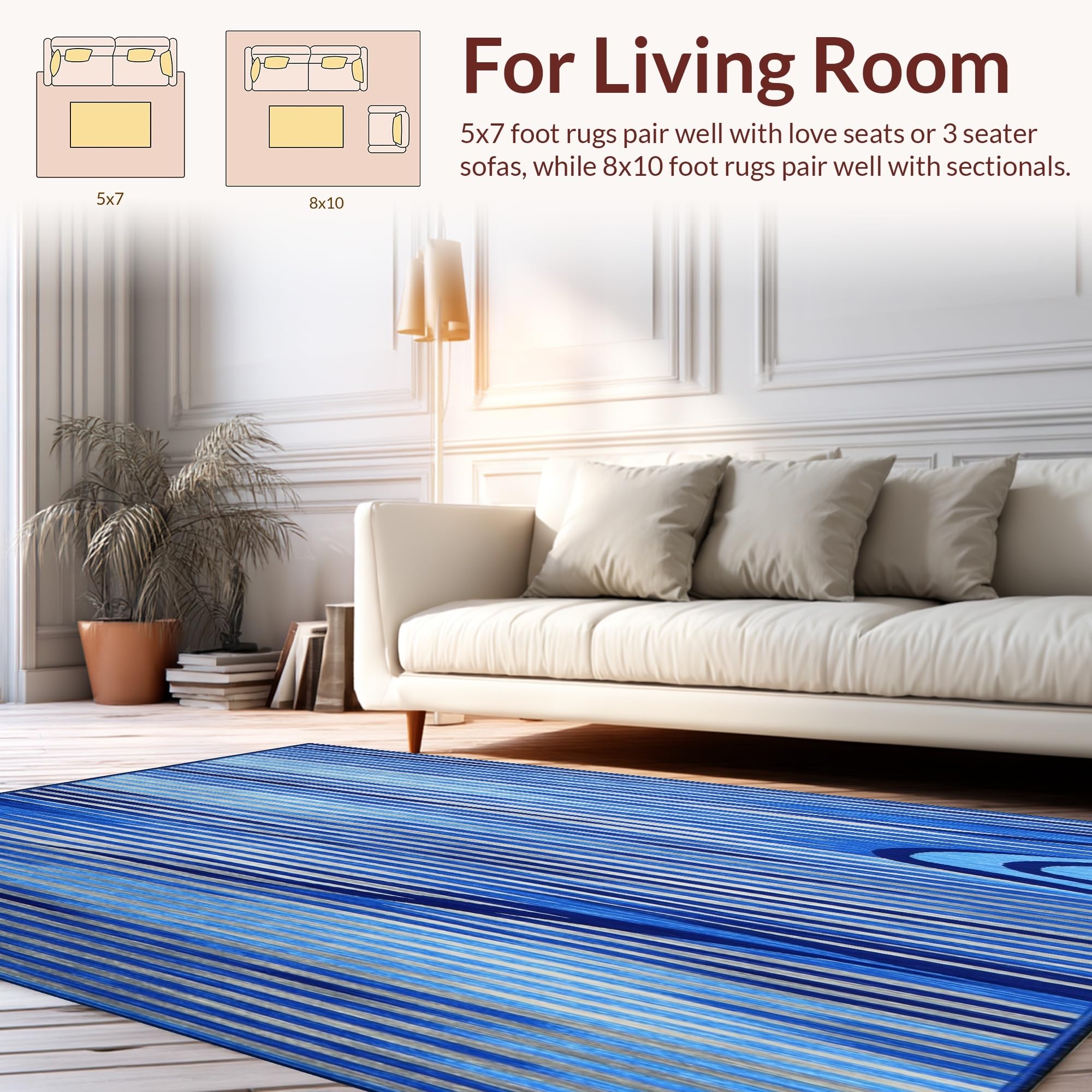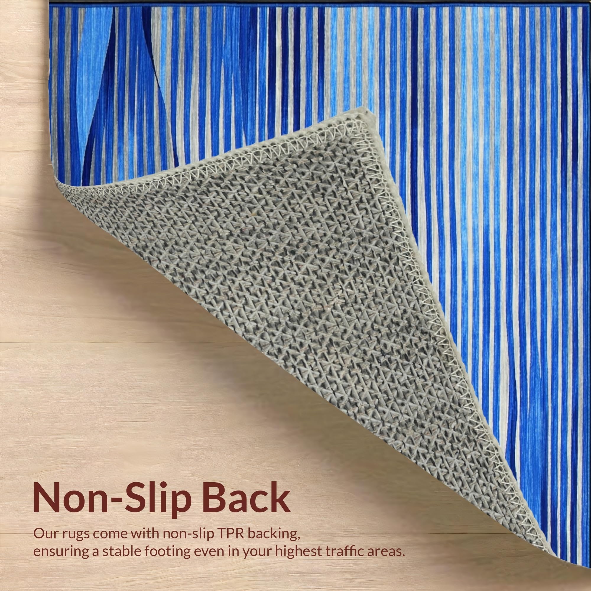 Ultra Soft Area Rug, Non Slip, Stain Resistant, Washable Area Rugs for Living Room, Bedroom, Modern Boho Patio with Abstract Shapes(Blue) Overview: