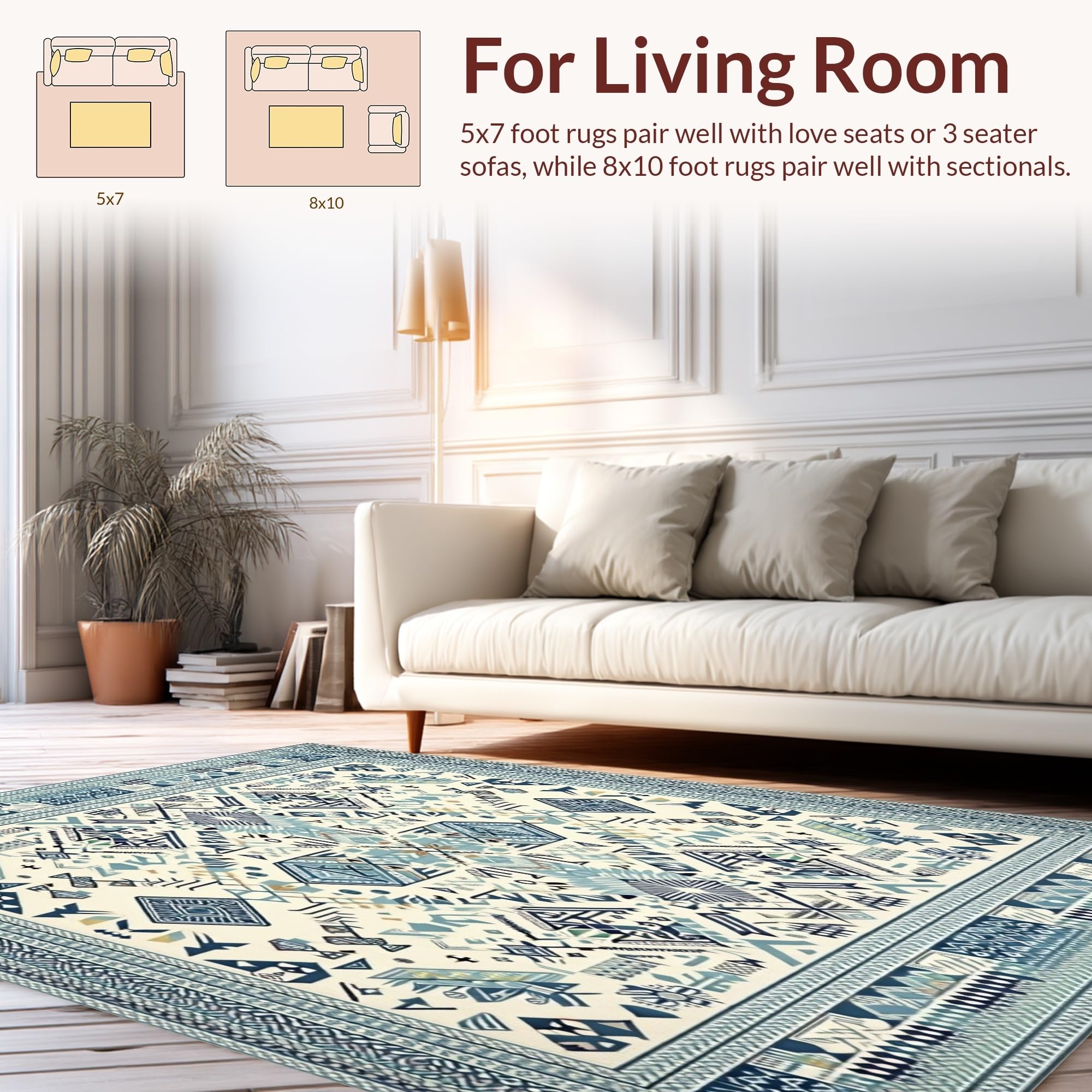 Ultra Soft Area Rug, Non Slip, Stain Resistant, Washable Area Rugs for Living Room, Bedroom, Modern Boho Style Cream(White) Overview: