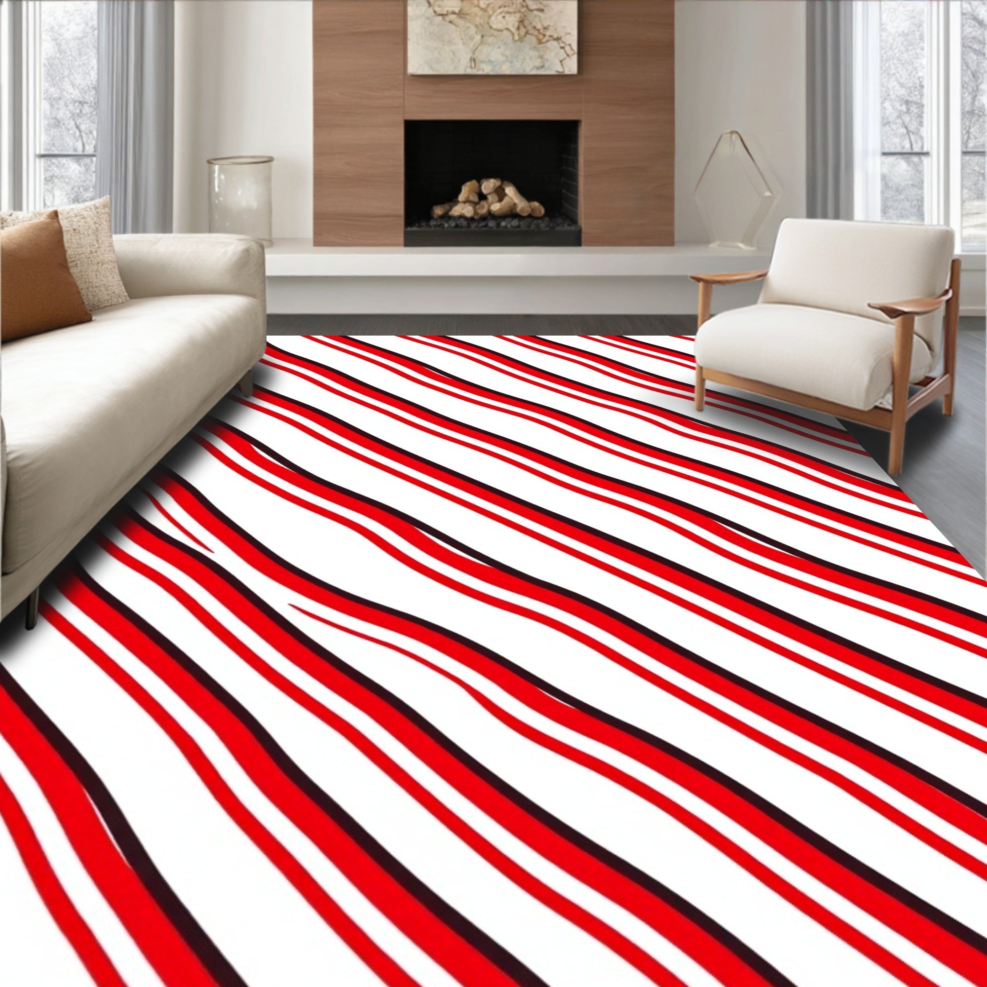 Ultra Soft Area Rug, Non Slip, Stain Resistant, Washable Area Rugs for Living Room, Bedroom, Modern Chevron Wave Design Featuring Angles and Rhythmic Flow(Red) Overview: