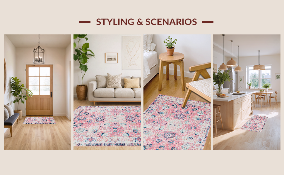 Ultra Soft Area Rug, Non Slip, Stain Resistant, Washable Area Rugs for Living Room, Bedroom, Modern Chic Abstract Motif(Pink) Overview:
