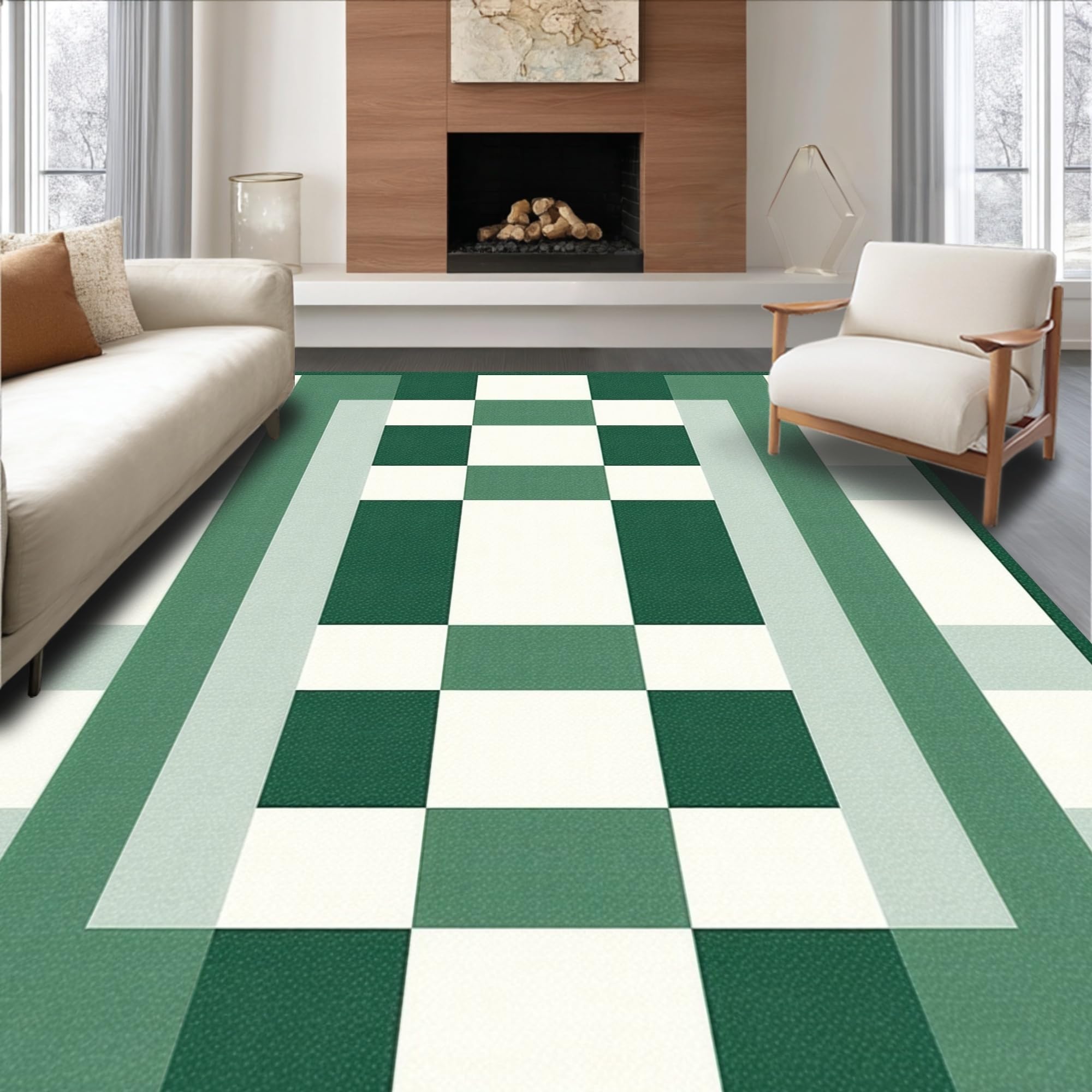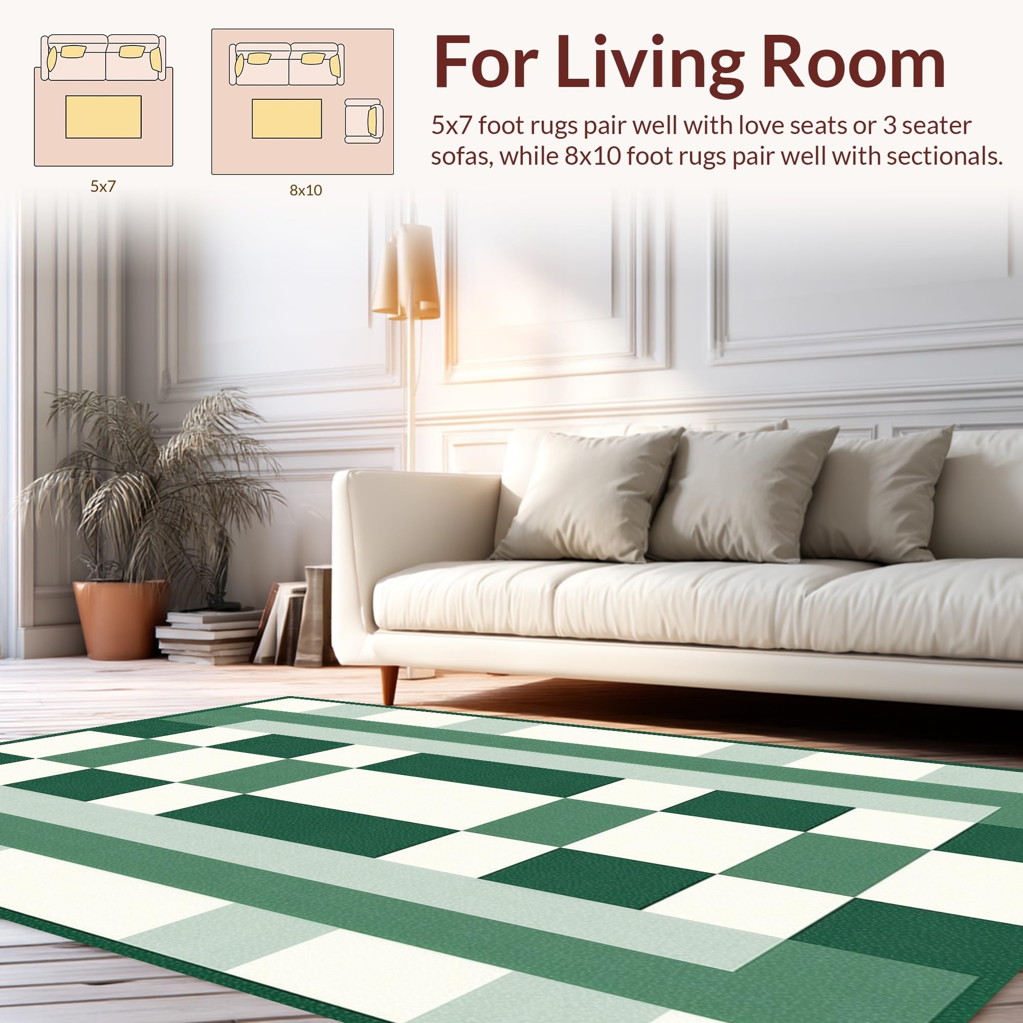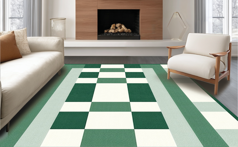 Ultra Soft Area Rug, Non Slip, Stain Resistant, Washable Area Rugs for Living Room, Bedroom, Modern Chic Checkerboard Aesthetic(Green) Overview: