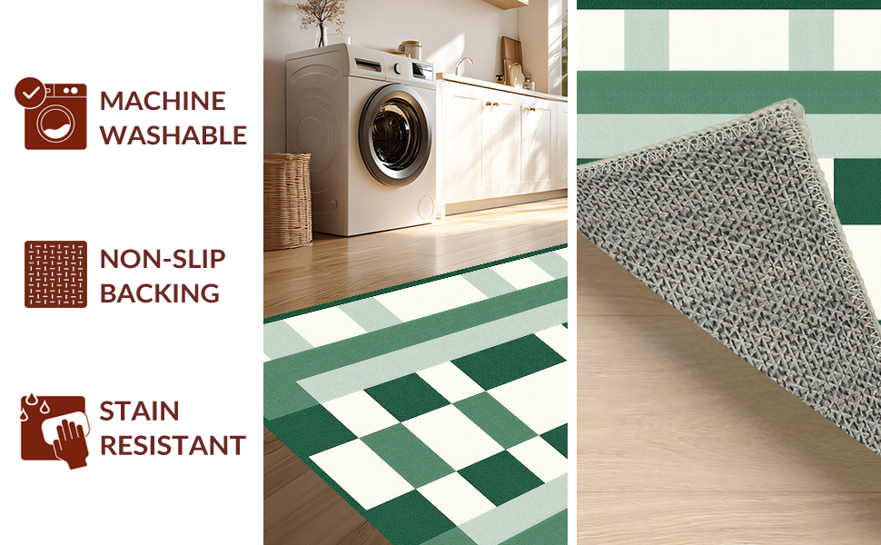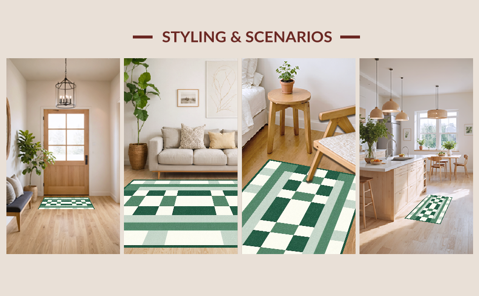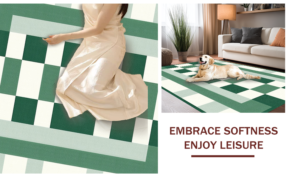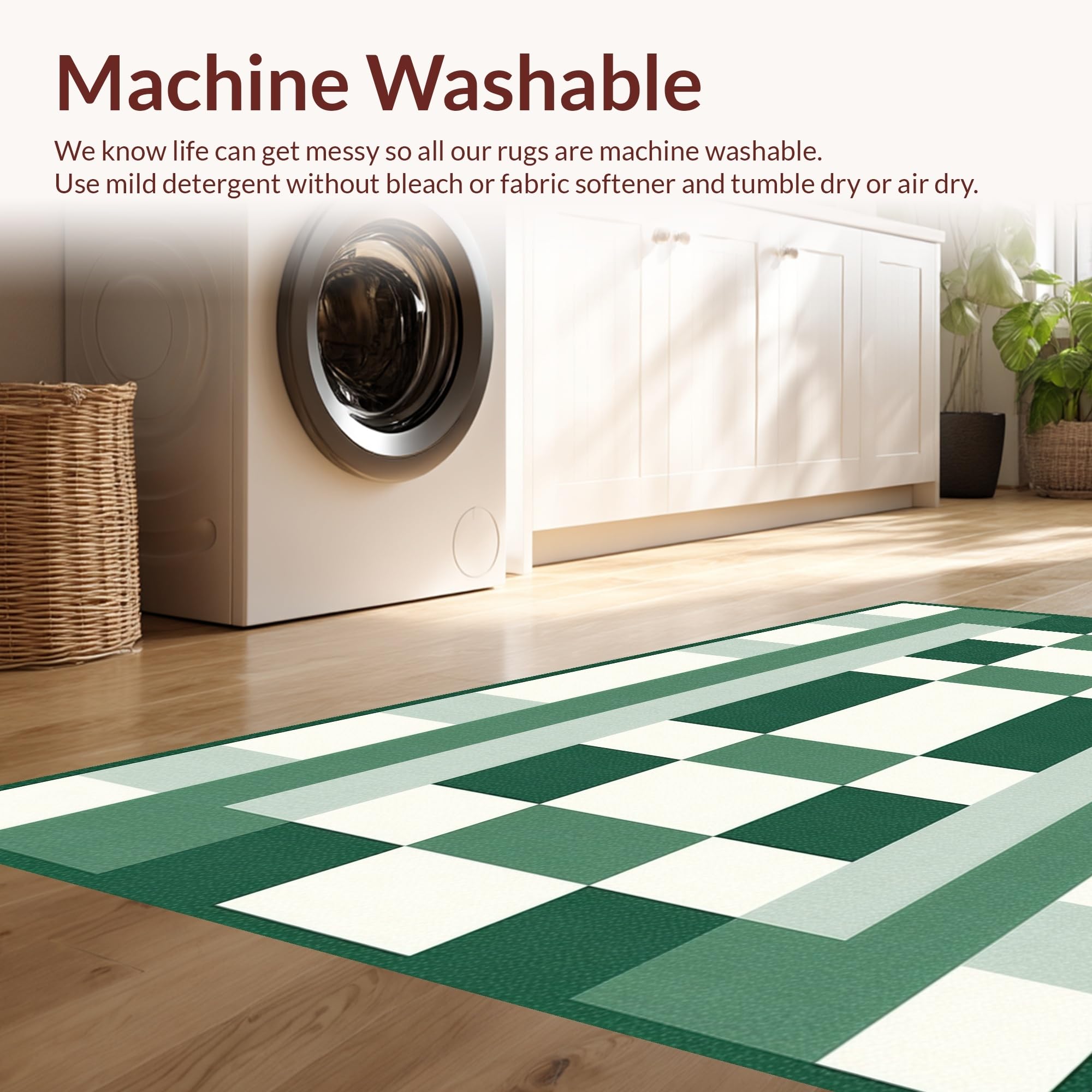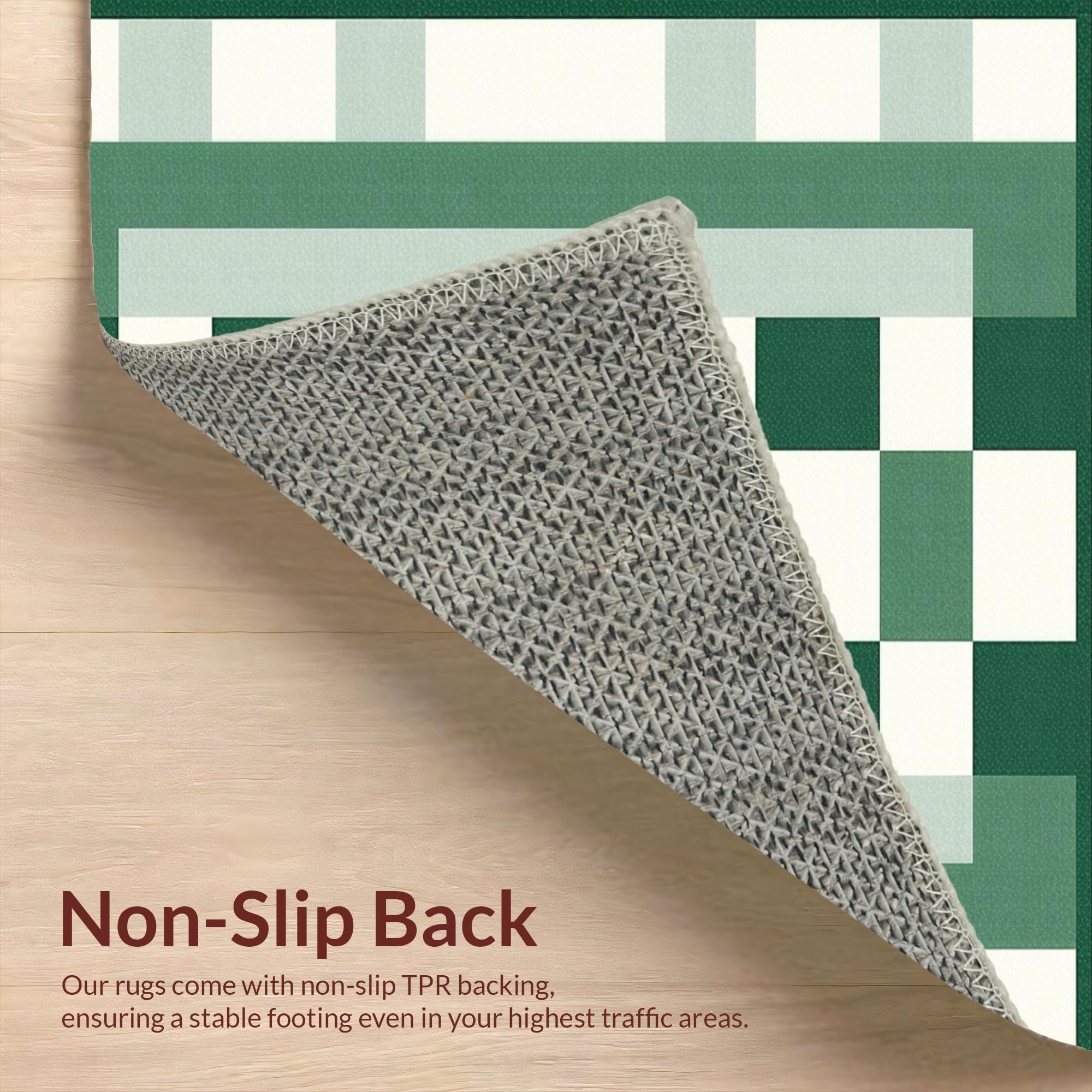 Ultra Soft Area Rug, Non Slip, Stain Resistant, Washable Area Rugs for Living Room, Bedroom, Modern Chic Checkerboard Aesthetic(Green) Overview: