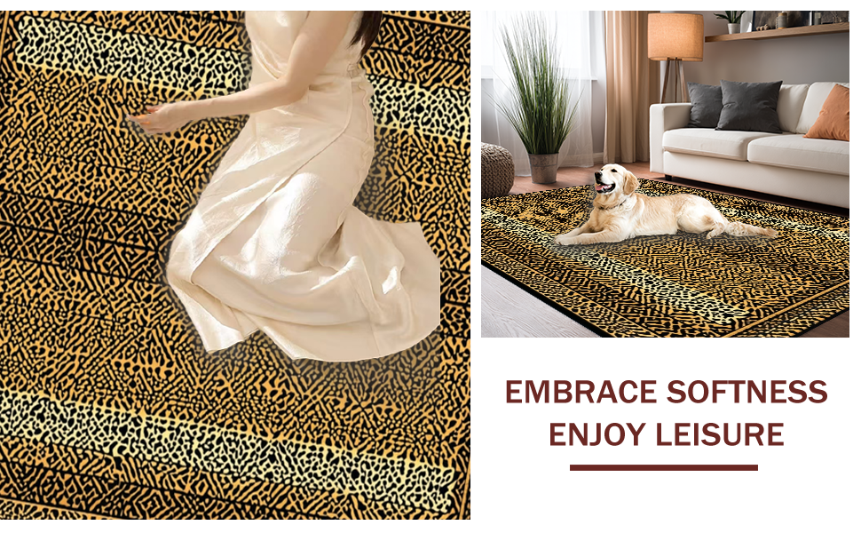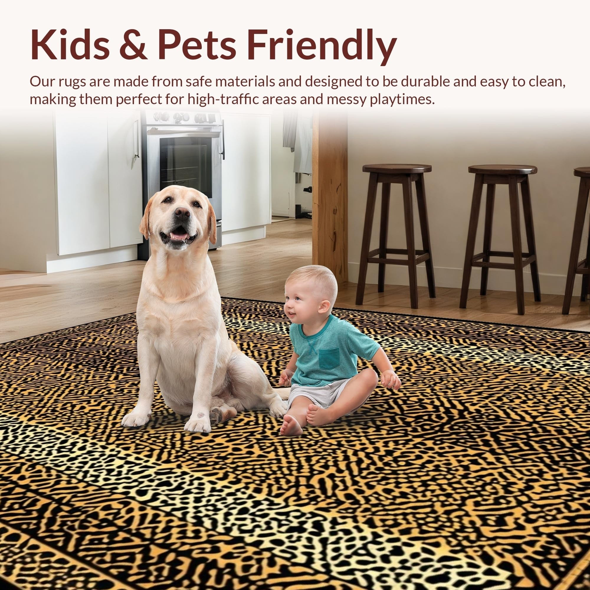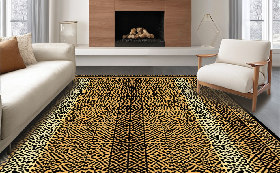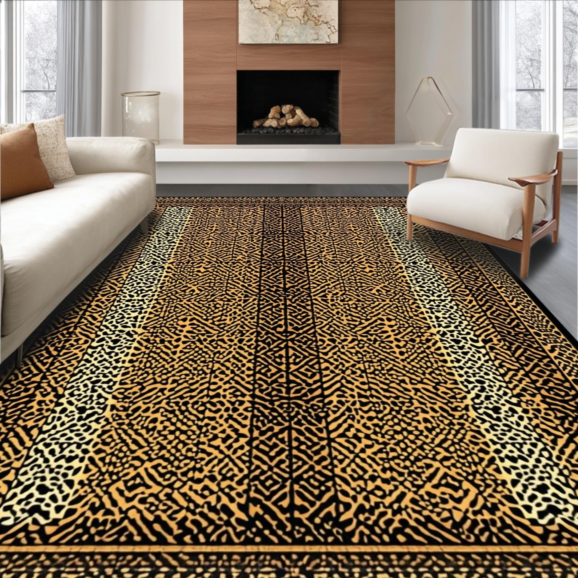 Ultra Soft Area Rug, Non Slip, Stain Resistant, Washable Area Rugs for Living Room, Bedroom, Modern Chic Faux Fur Motif(Gold) Overview: