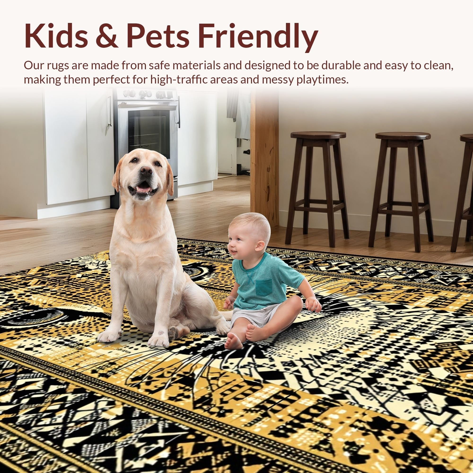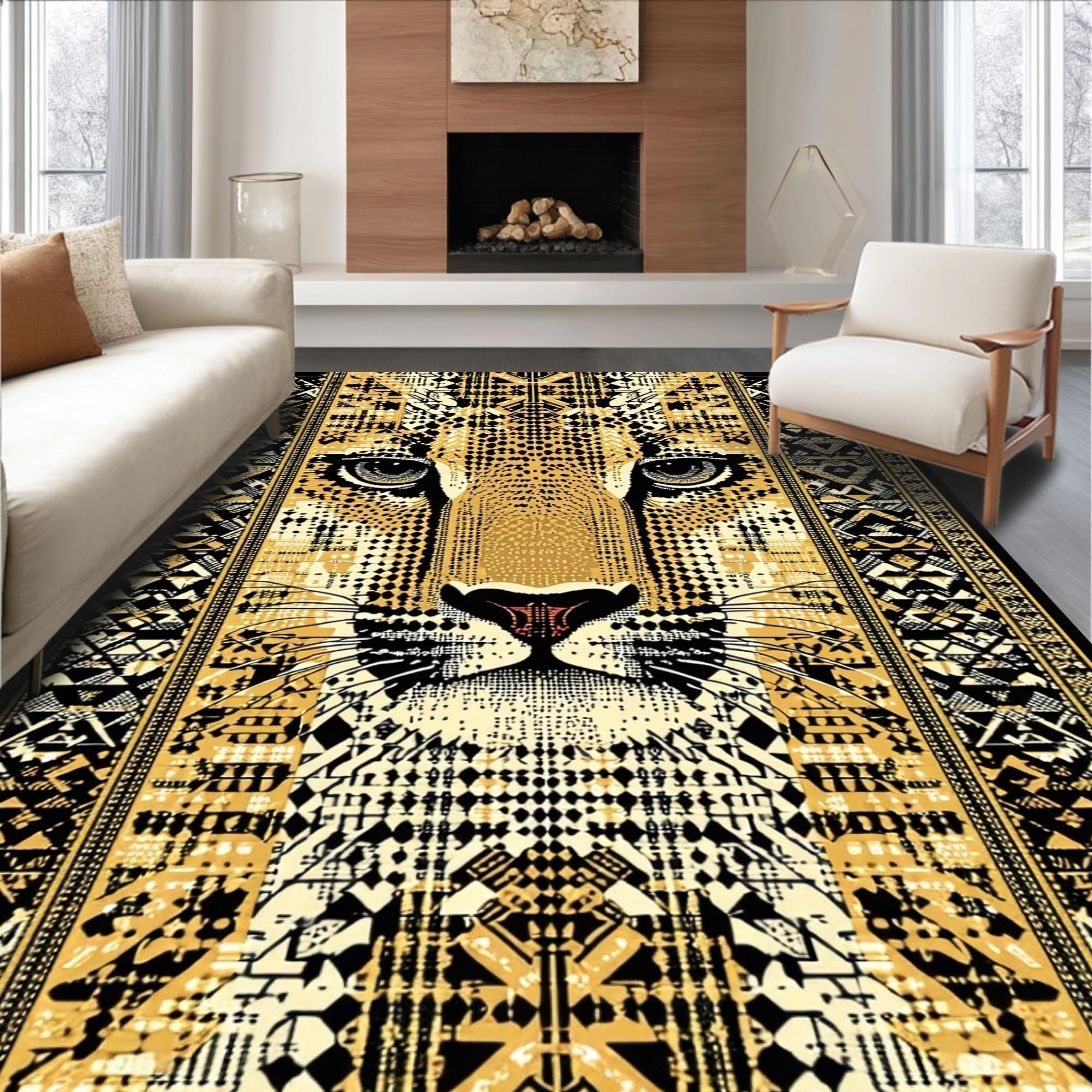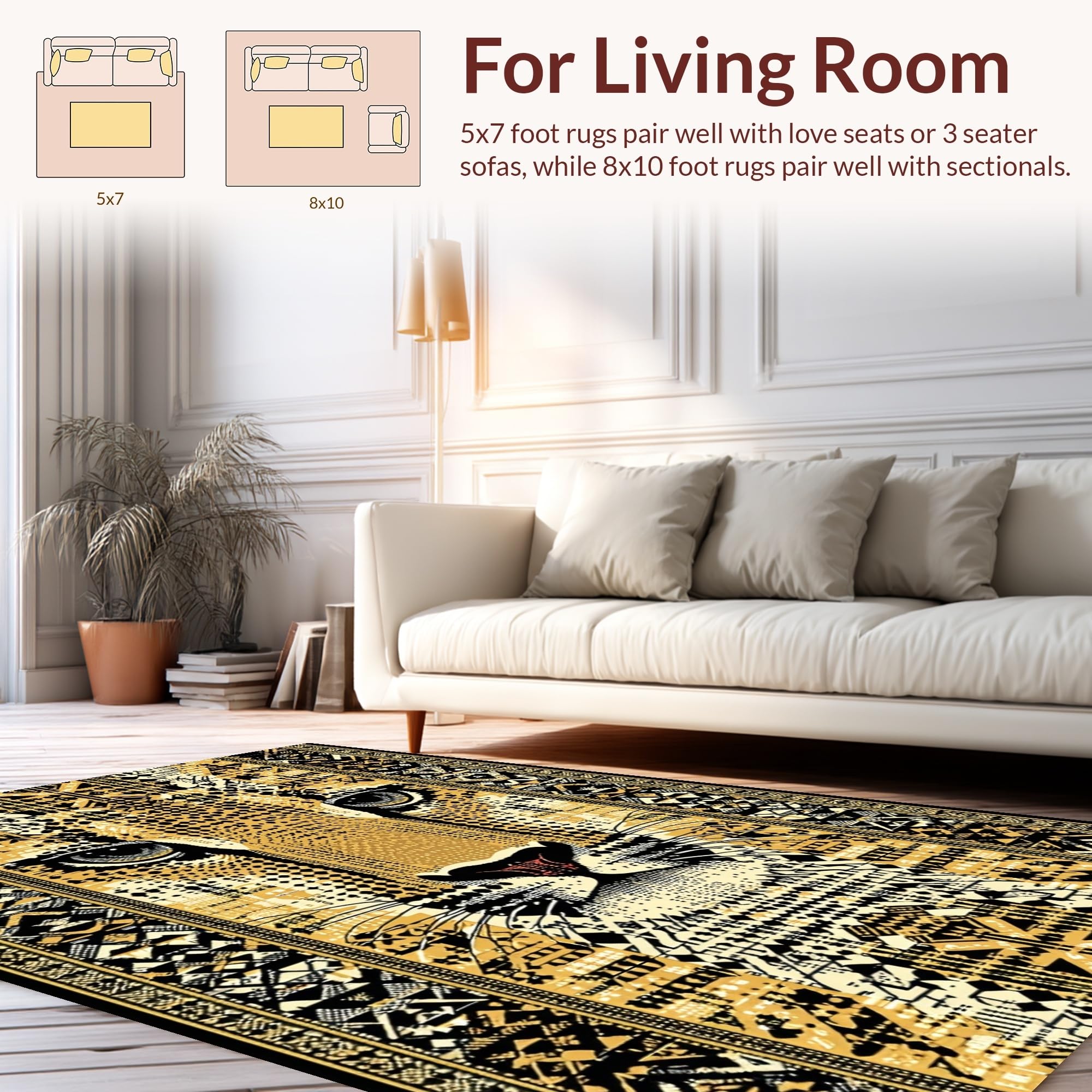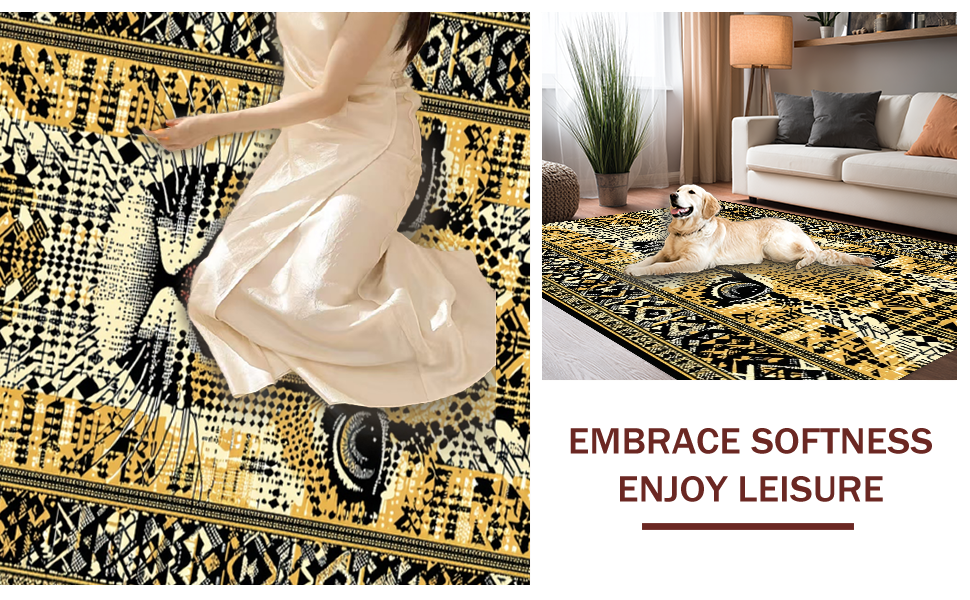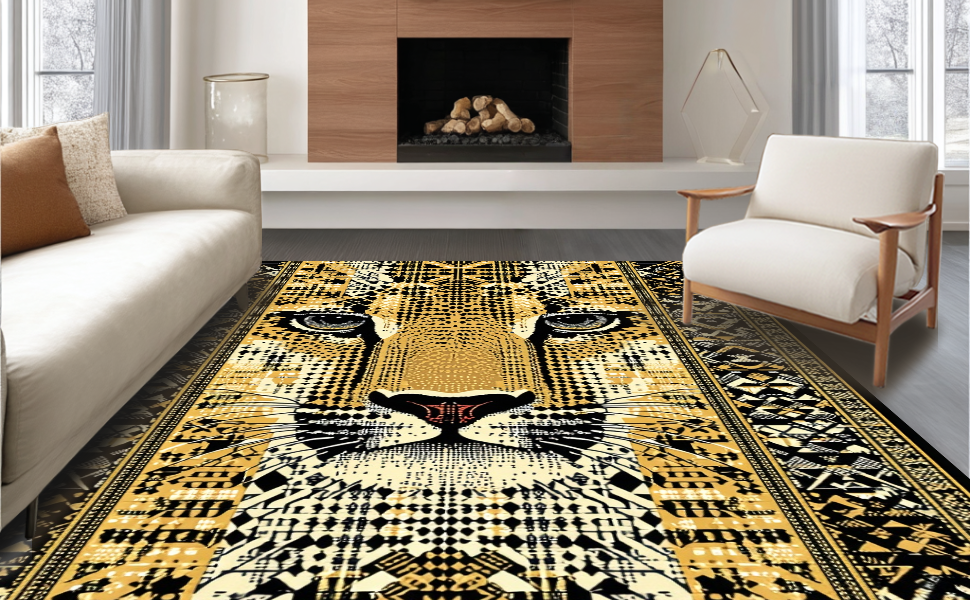 Ultra Soft Area Rug, Non Slip, Stain Resistant, Washable Area Rugs for Living Room, Bedroom, Modern Chic Safari Aesthetic(Gold) Overview: