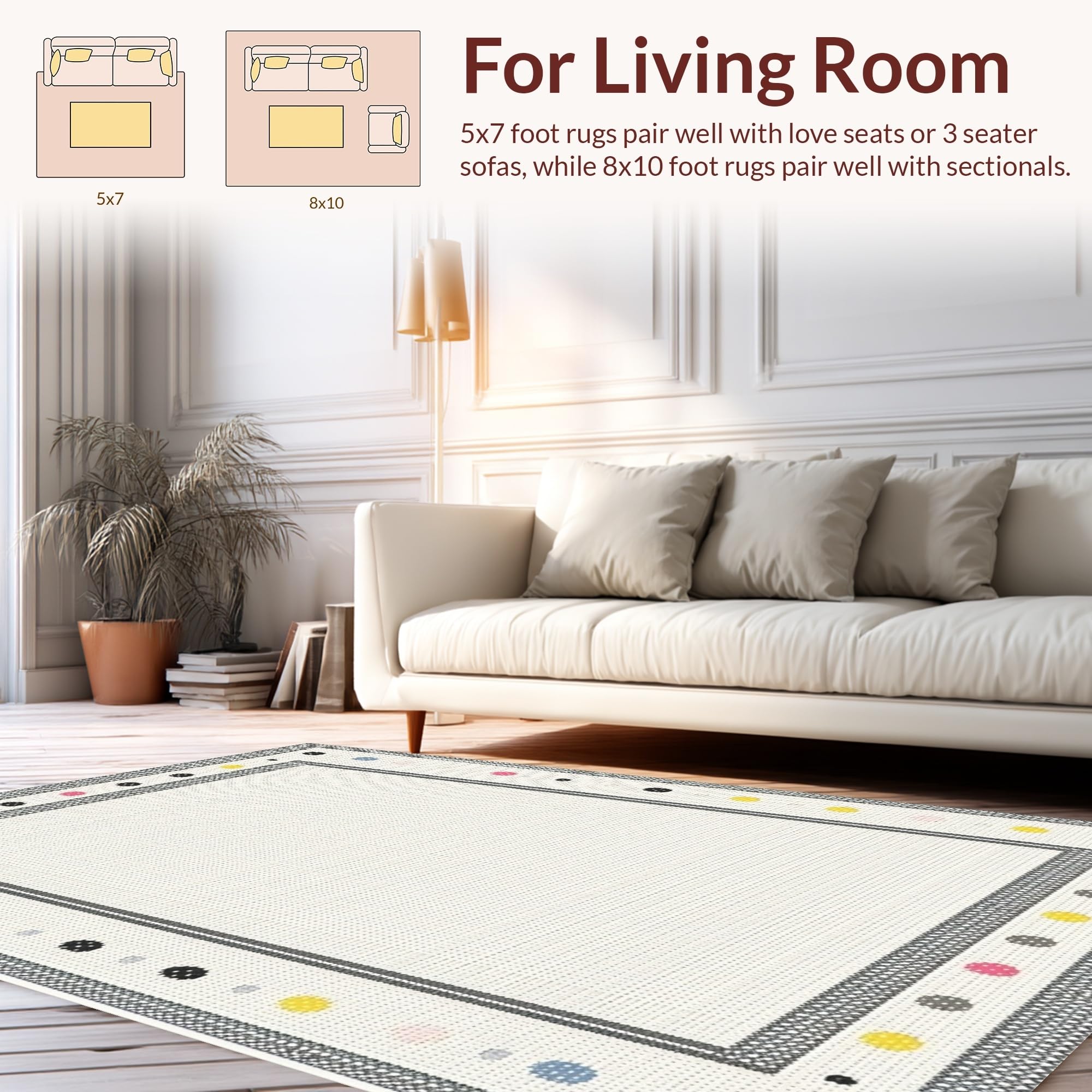 Ultra Soft Area Rug, Non Slip, Stain Resistant, Washable Area Rugs for Living Room, Bedroom, Modern Chic Striped Visual Style(White) Overview: