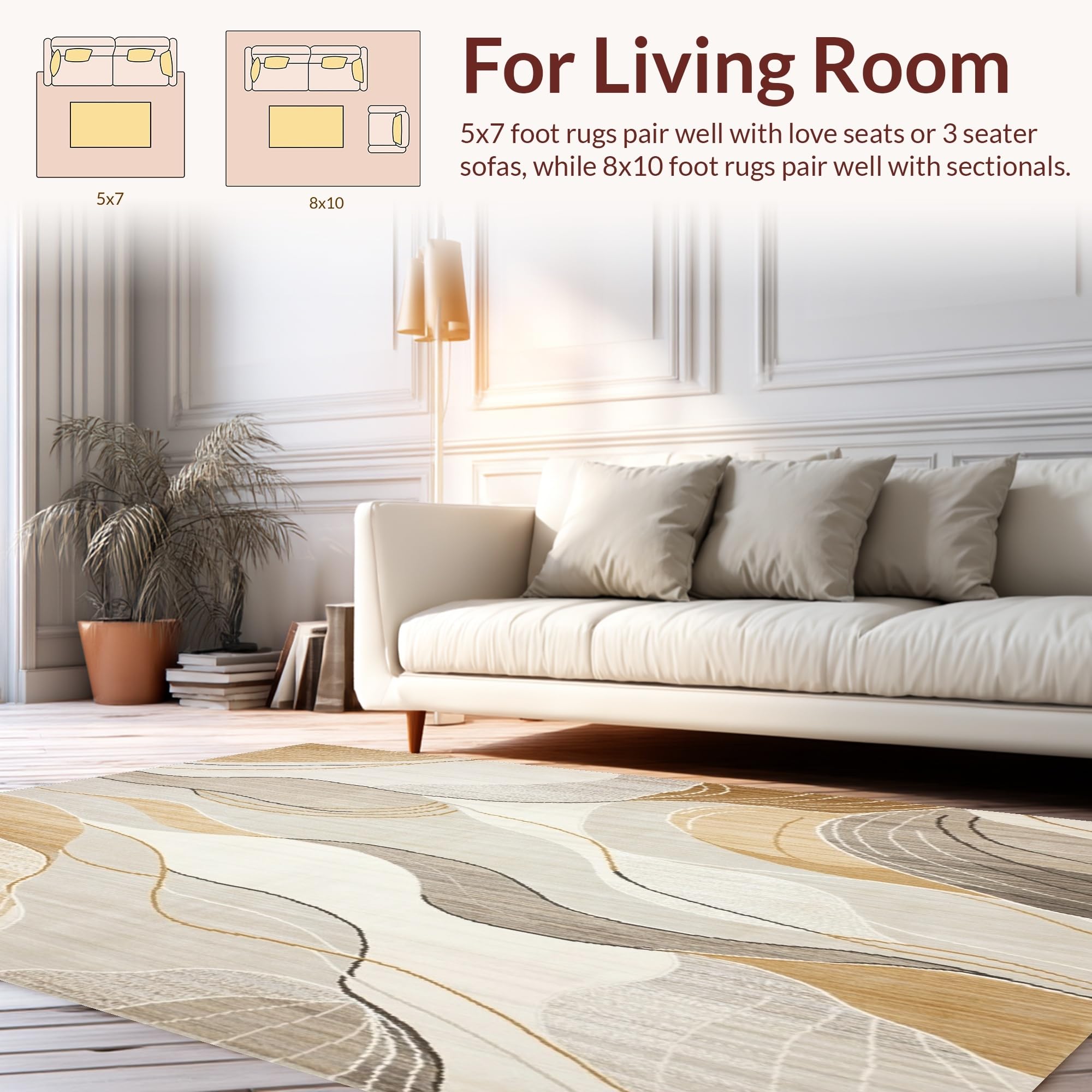 Ultra Soft Area Rug, Non Slip, Stain Resistant, Washable Area Rugs for Living Room, Bedroom, Modern Circular Area Highlighting Swirls And Muted Beige Tones(Beige) Overview: