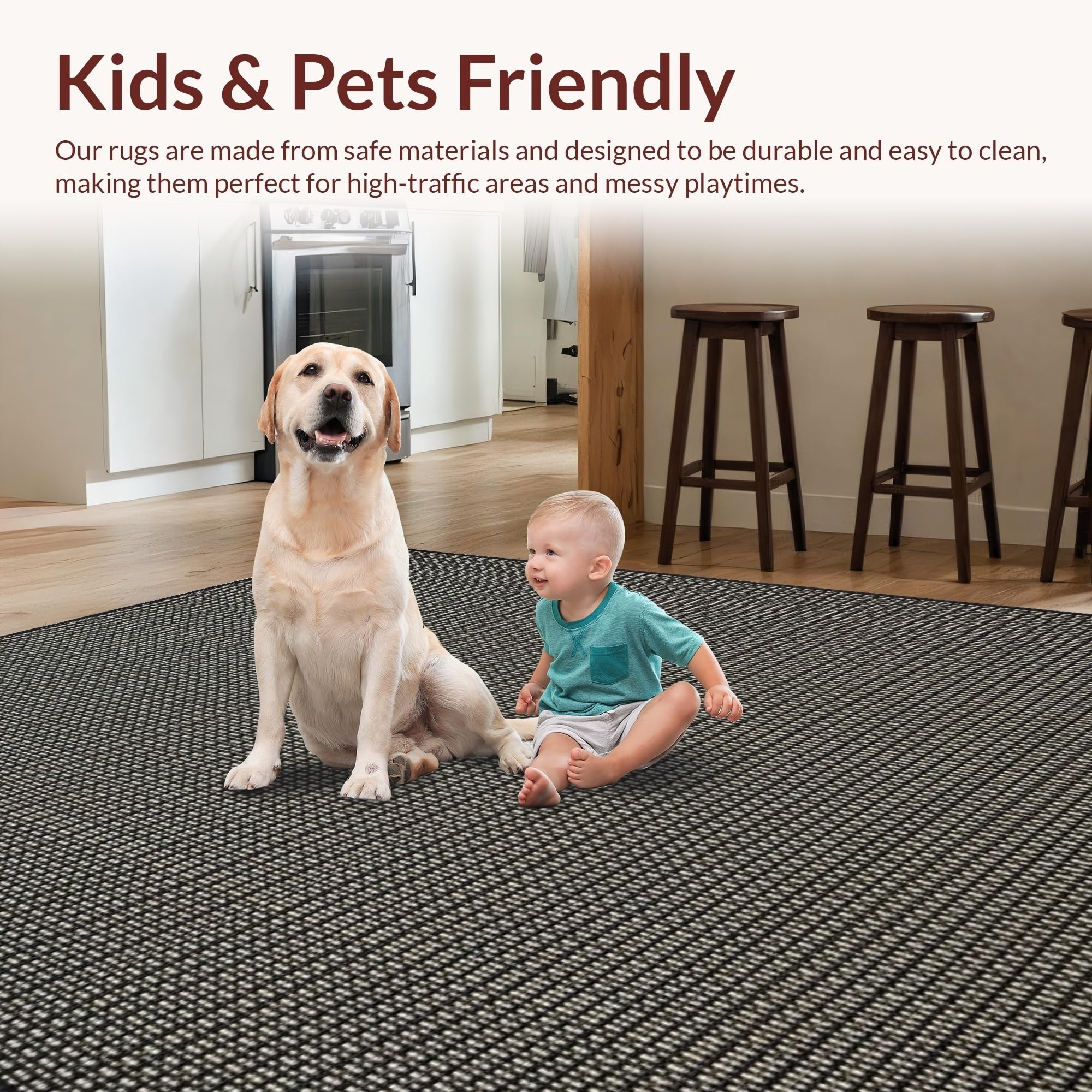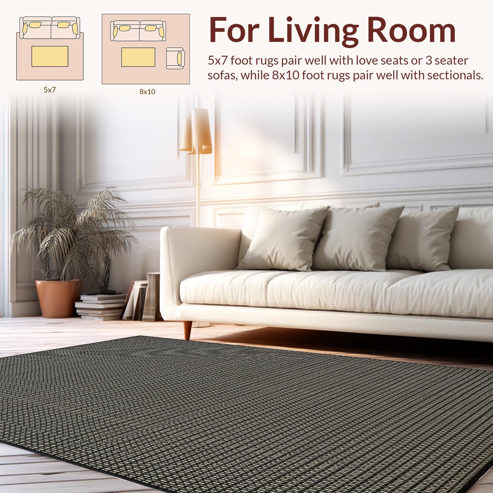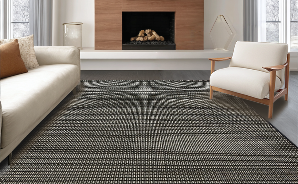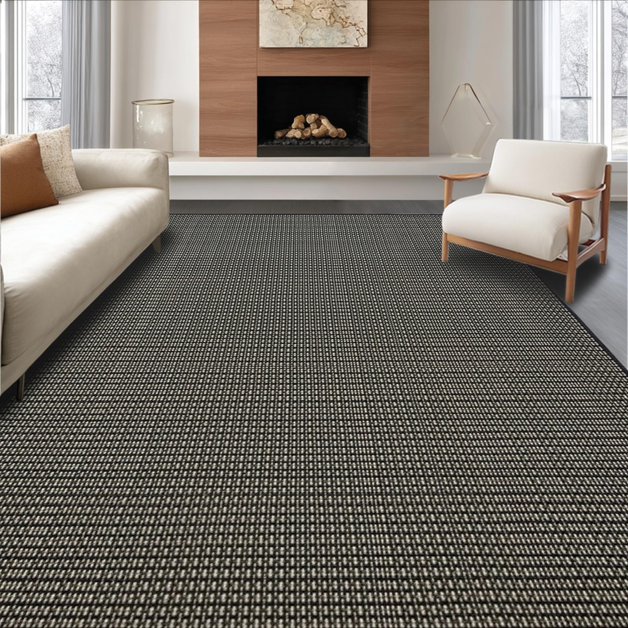 Ultra Soft Area Rug, Non Slip, Stain Resistant, Washable Area Rugs for Living Room, Bedroom, Modern Classic Checked Aesthetic(Black) Overview: