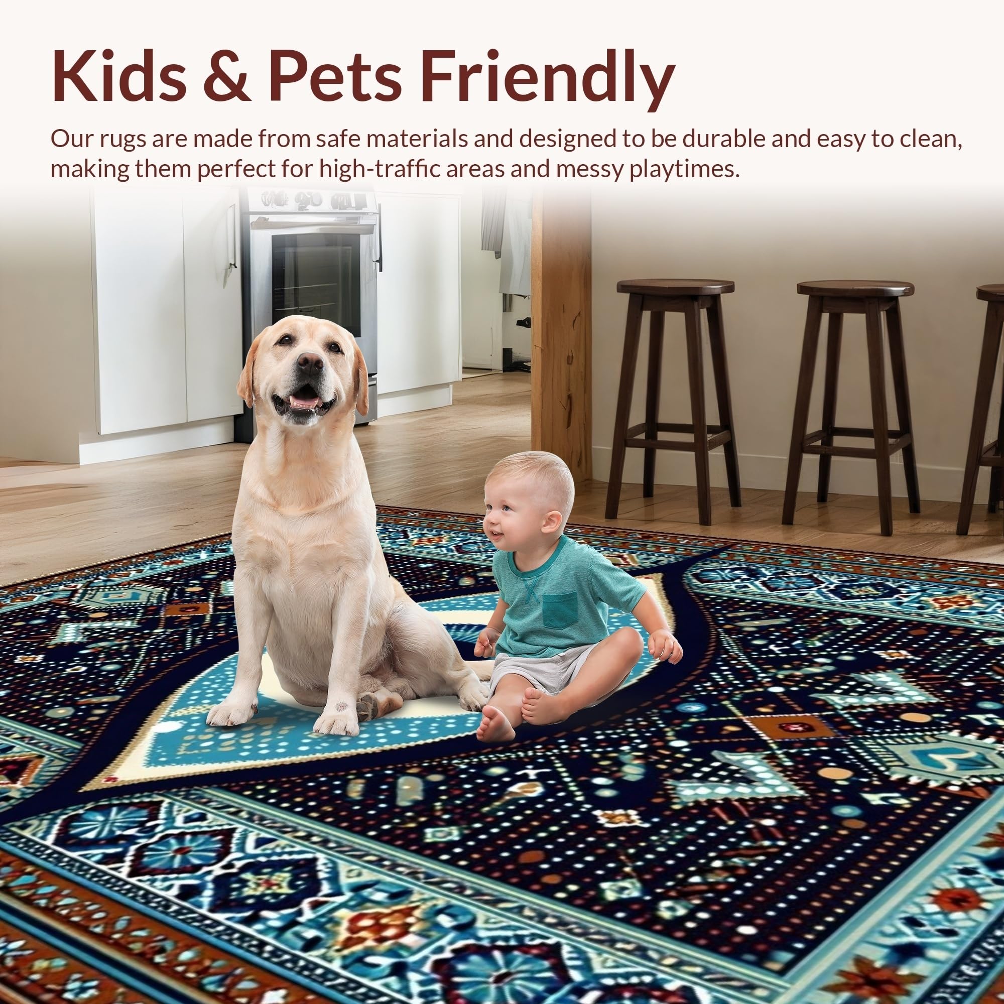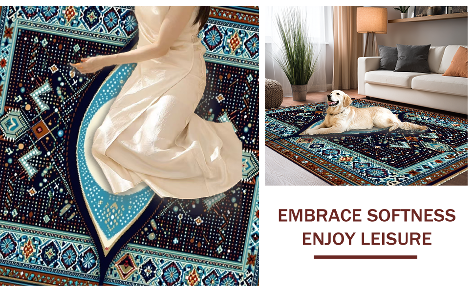 Ultra Soft Area Rug, Non Slip, Stain Resistant, Washable Area Rugs for Living Room, Bedroom, Modern Clean Line Visual Appeal(Blue) Overview: