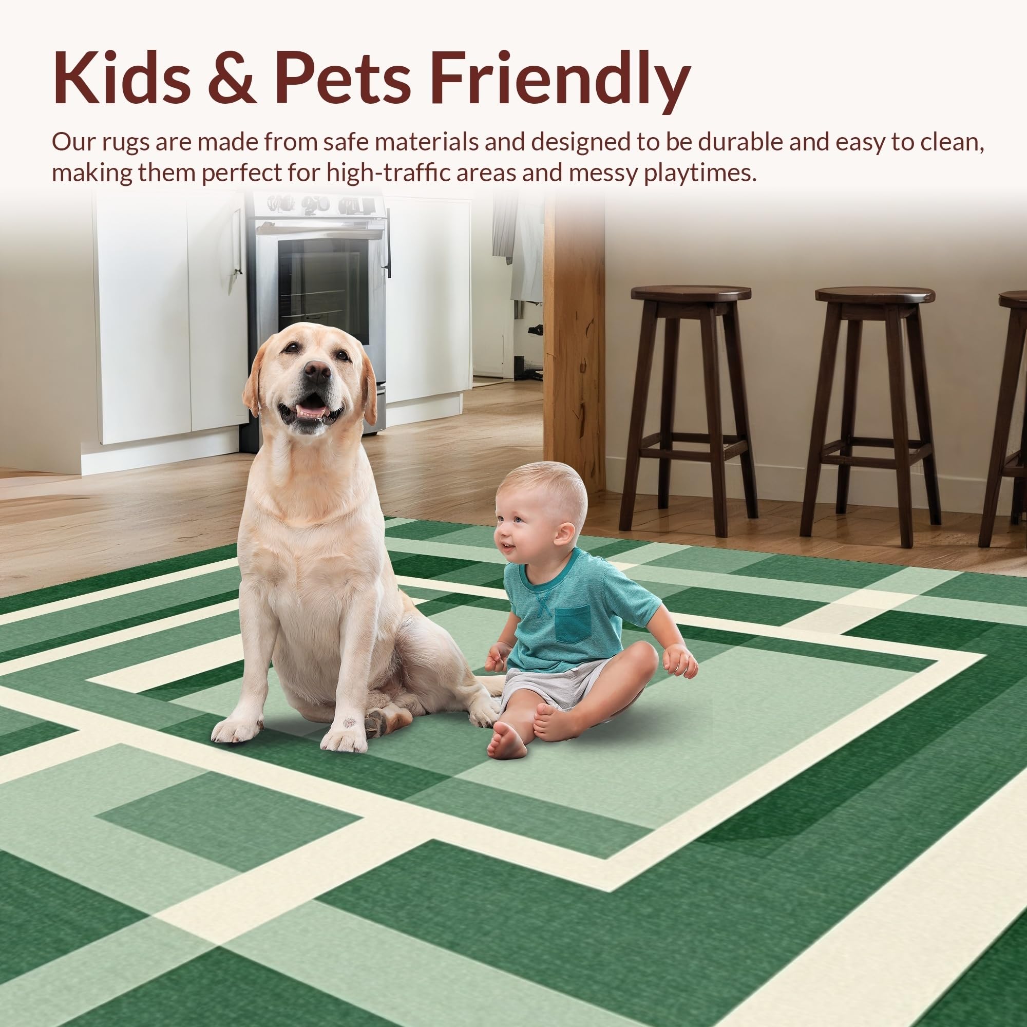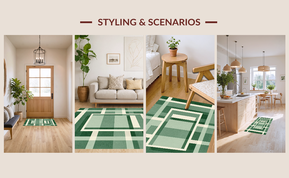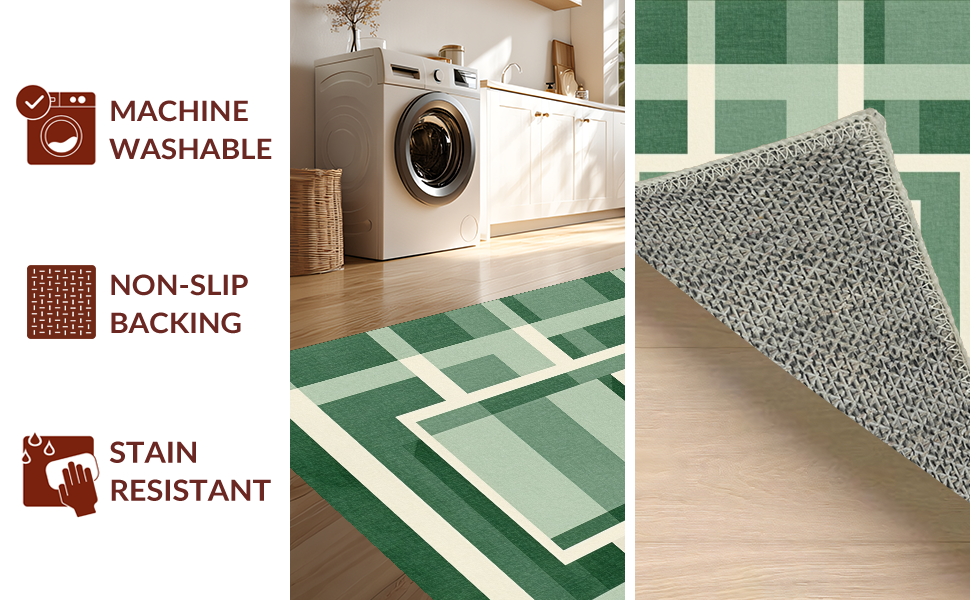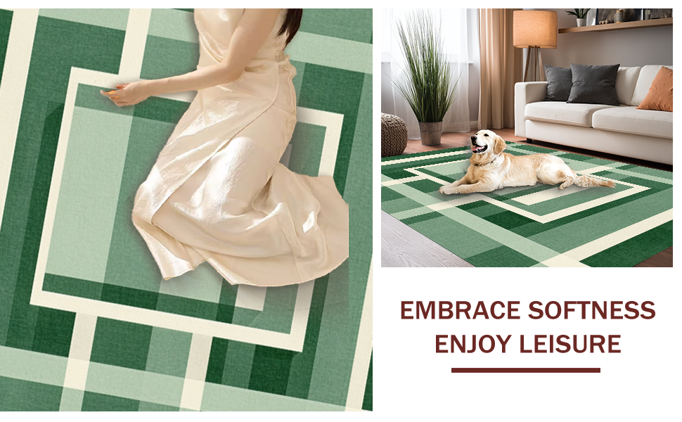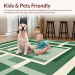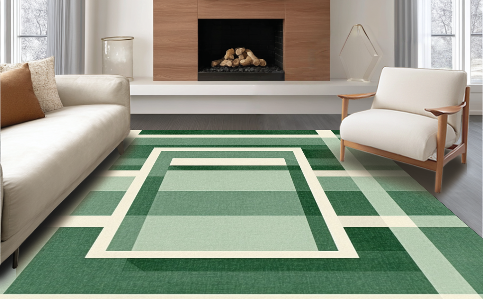 Ultra Soft Area Rug, Non Slip, Stain Resistant, Washable Area Rugs for Living Room, Bedroom, Modern Clean Symmetrical Checkers(Green) Overview: