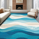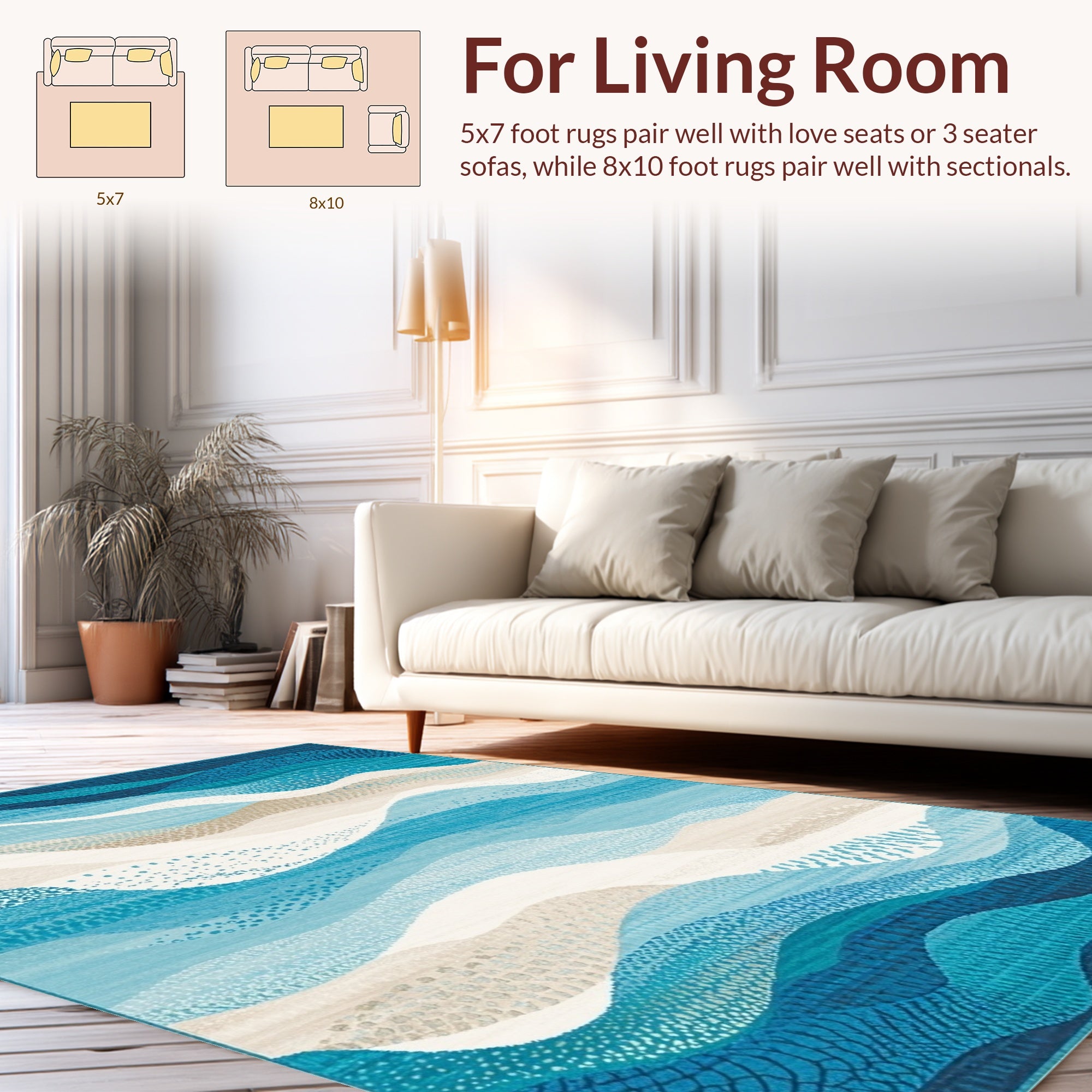 Flatwoven High Traffic Area Rug, Modern Coral Expression, Non Slip, Stain Resistant, Washable Area Rugs for Living Room, Bedroom (Blue) Overview: