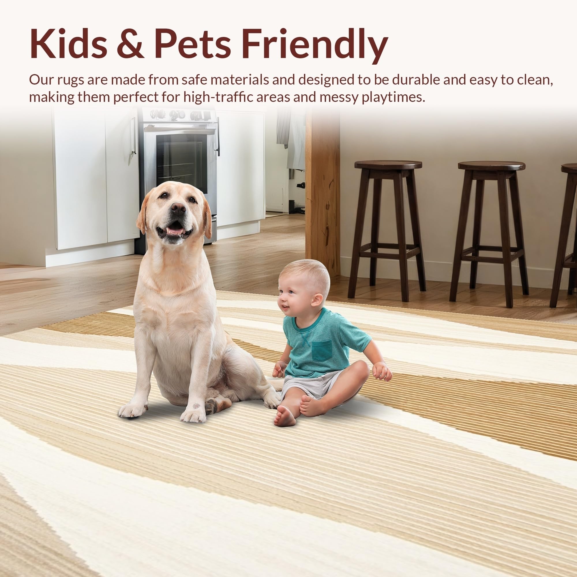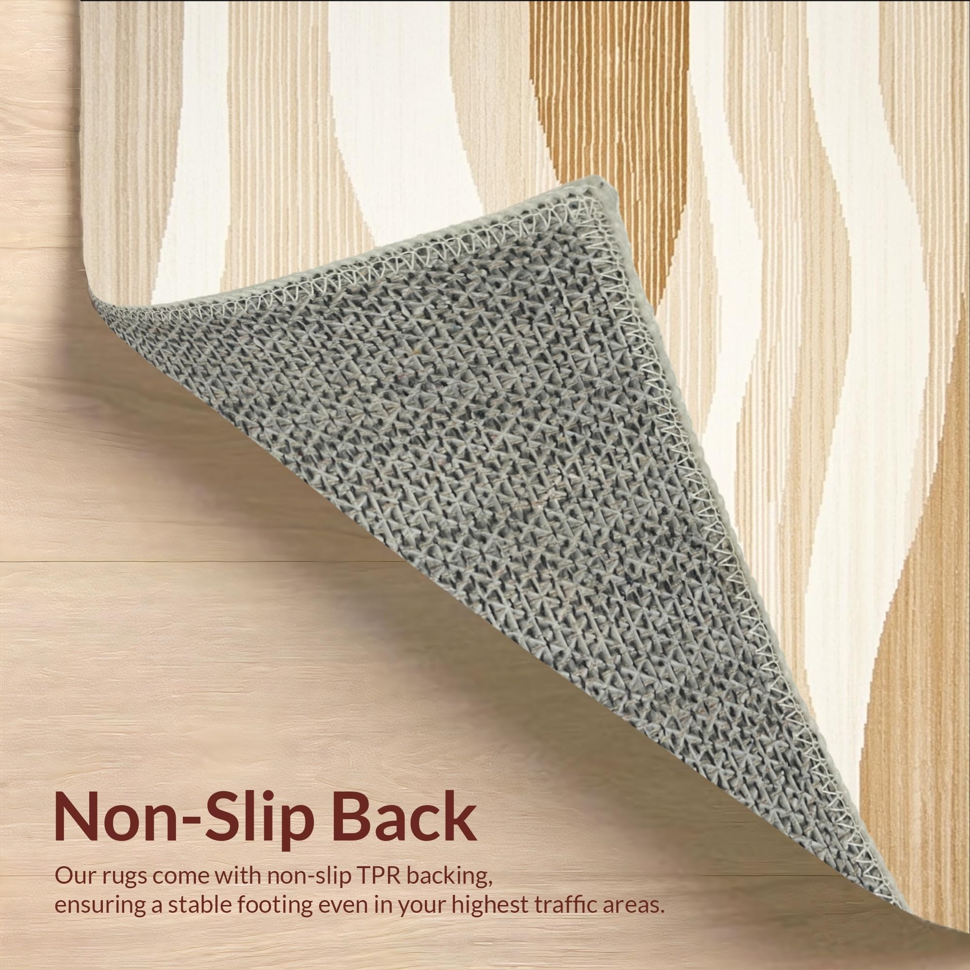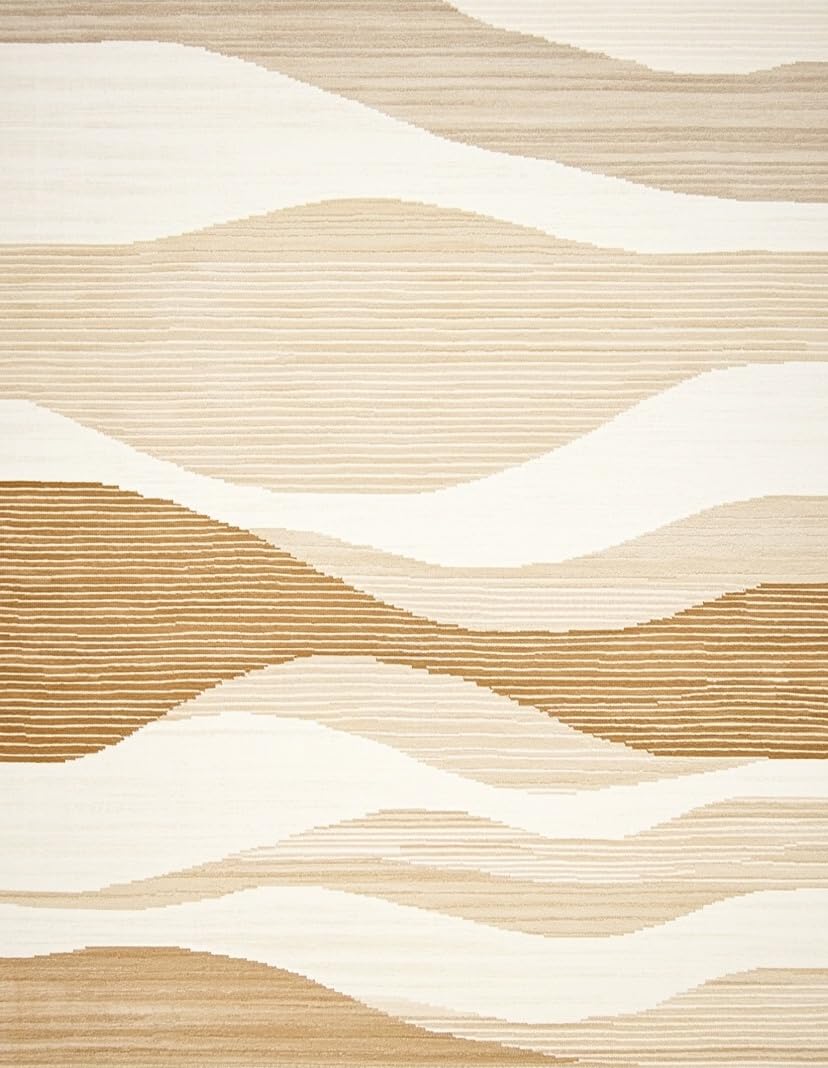 Ultra Soft Area Rug, Non Slip, Stain Resistant, Washable Area Rugs for Living Room, Bedroom, Modern Coastal Sand Tone Ripple Subtle Linear Accents(Beige) Overview: