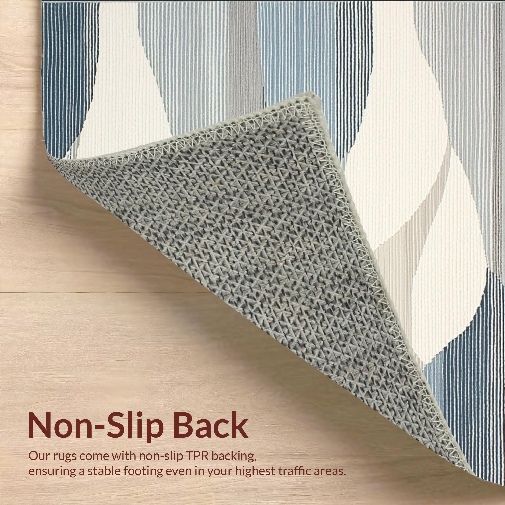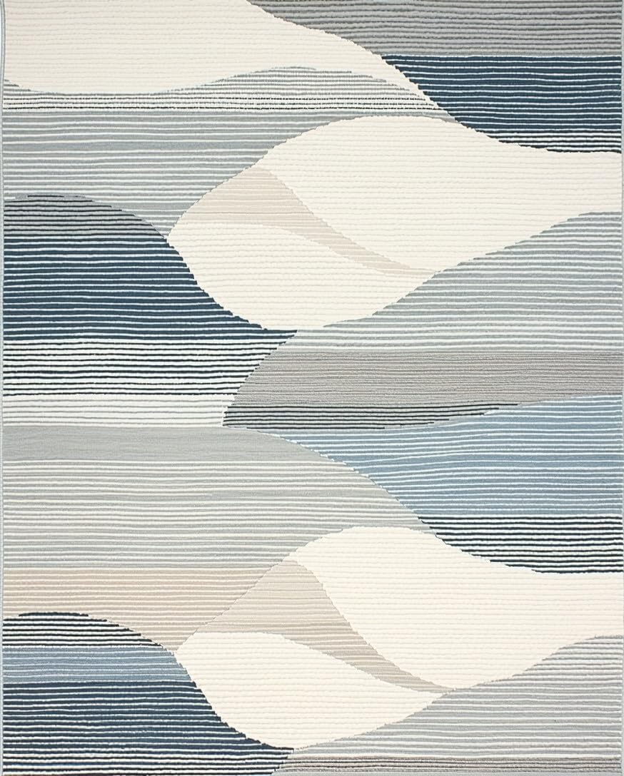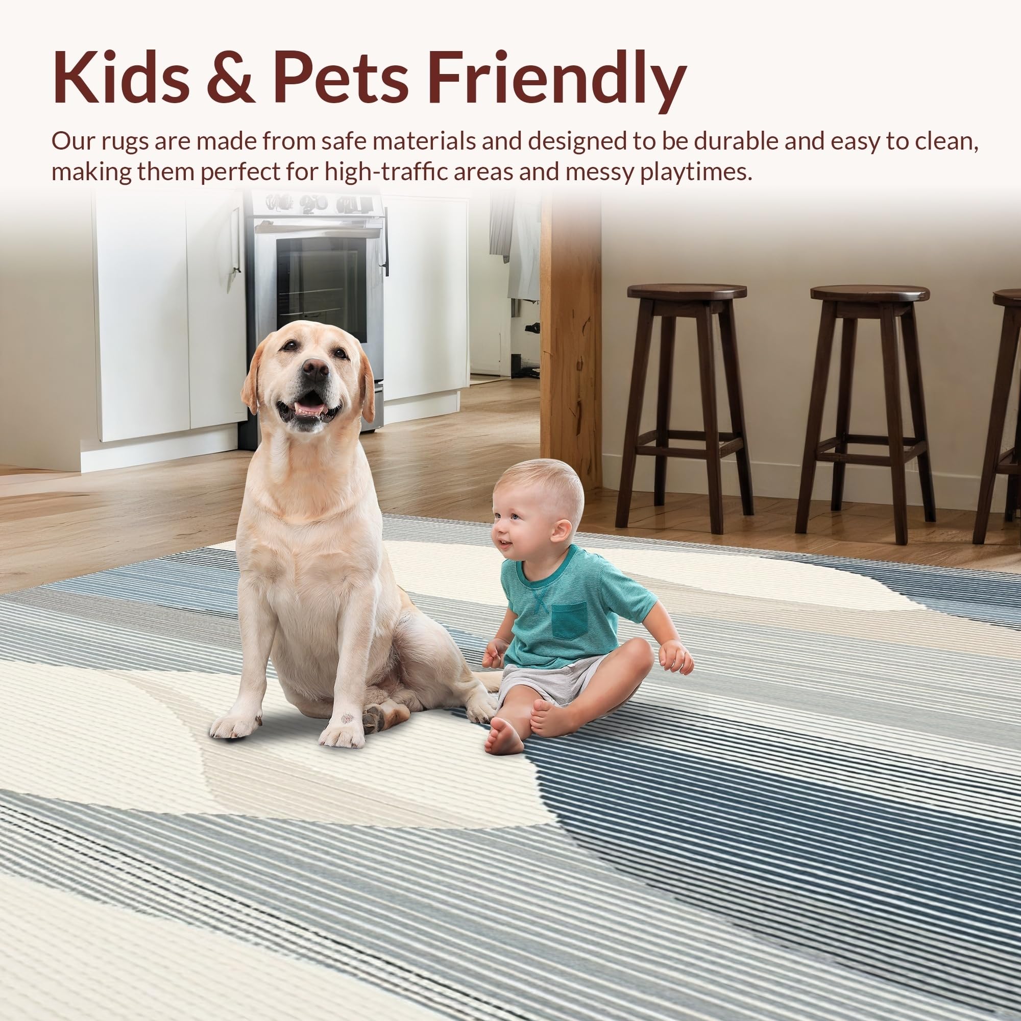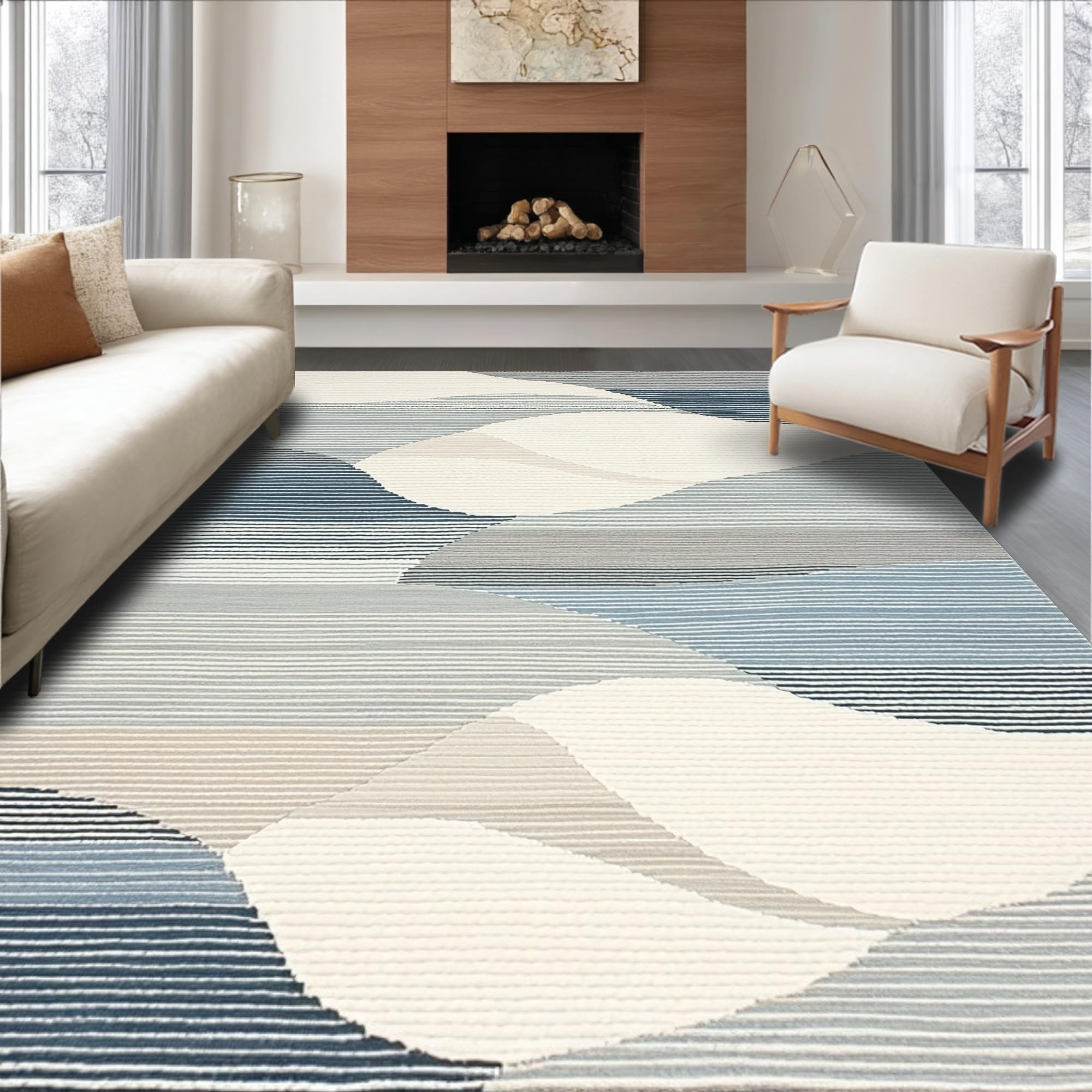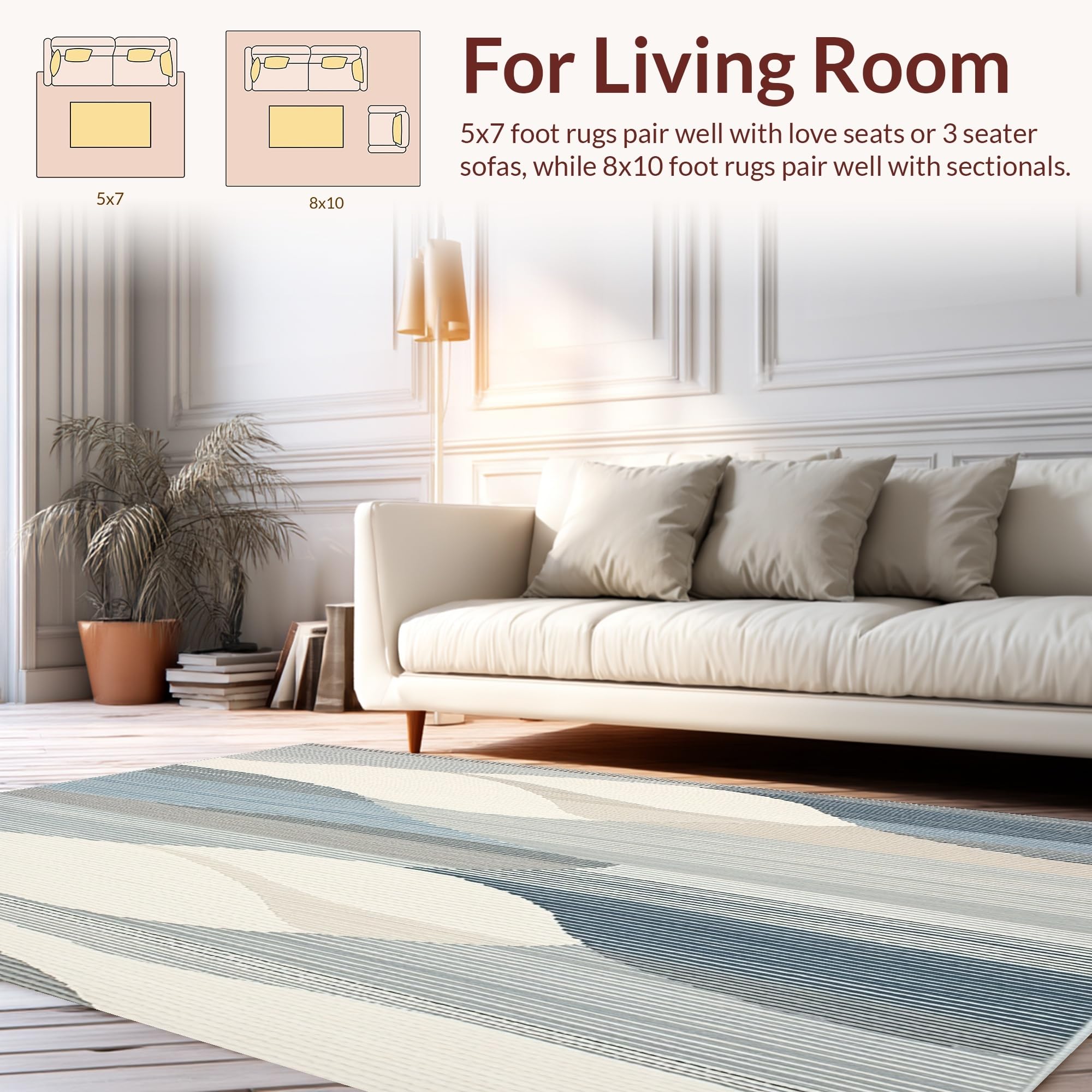 Ultra Soft Area Rug, Non Slip, Stain Resistant, Washable Area Rugs for Living Room, Bedroom, Modern Coastal Stripe Area with Wave Inspired Bluish Gray and Beige Lines(Gray) Overview: