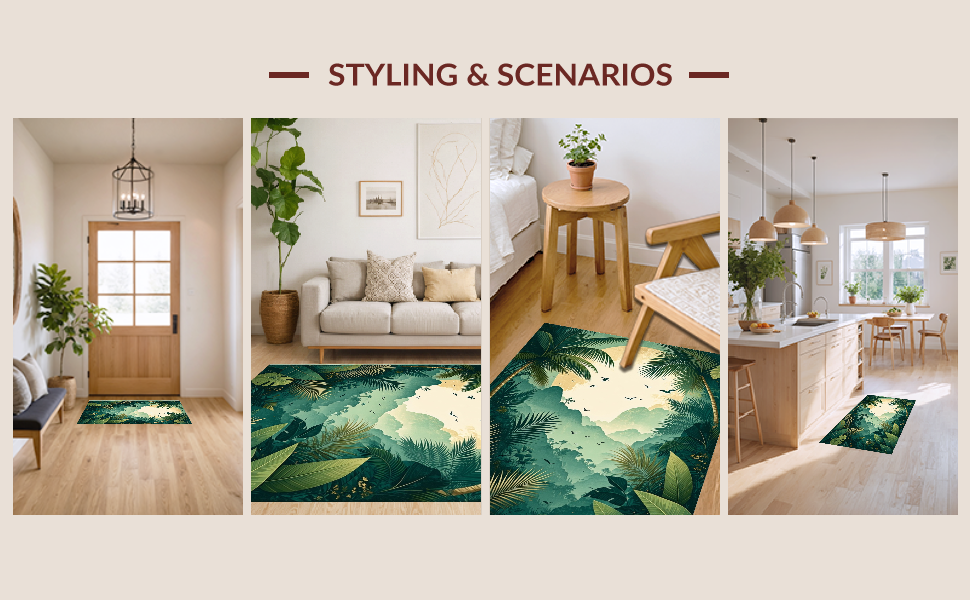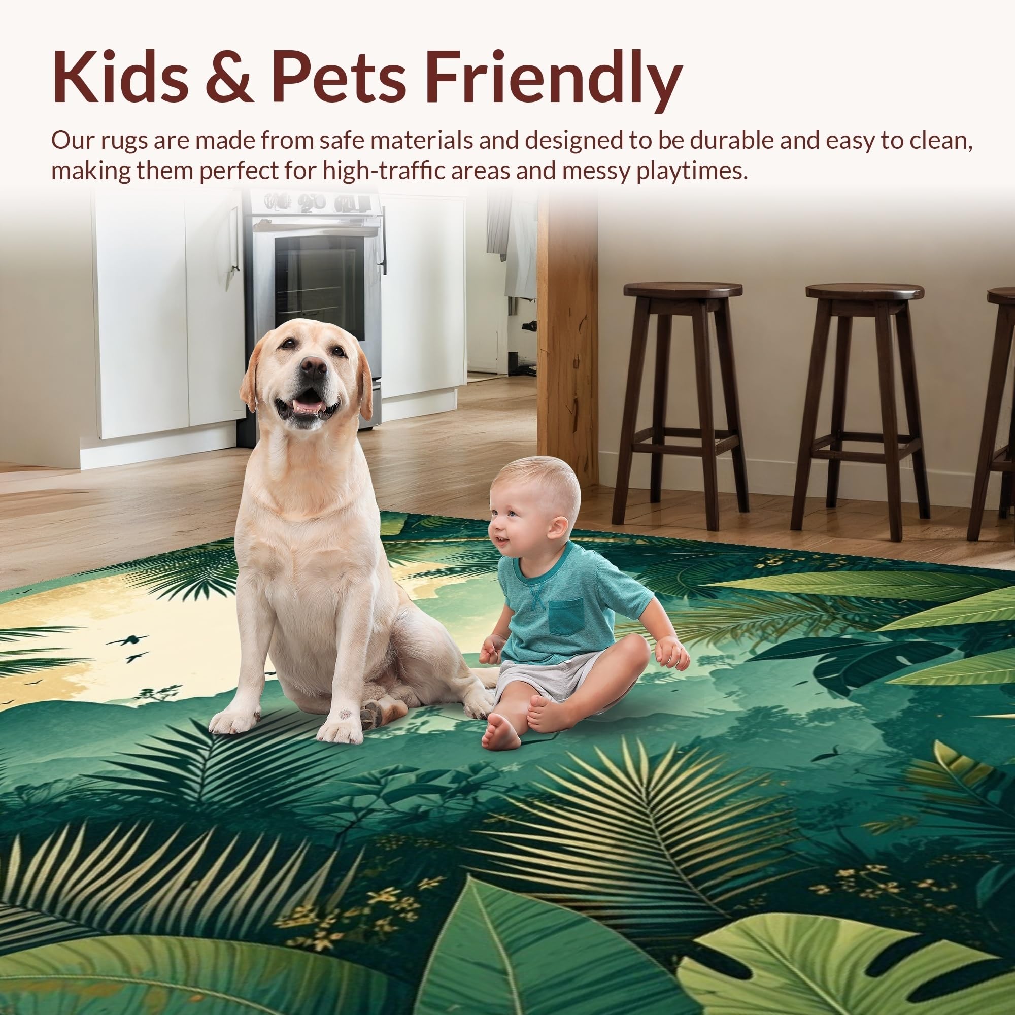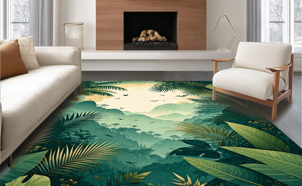 Ultra Soft Area Rug, Non Slip, Stain Resistant, Washable Area Rugs for Living Room, Bedroom, Modern Colorful Ogee Style(Green) Overview: