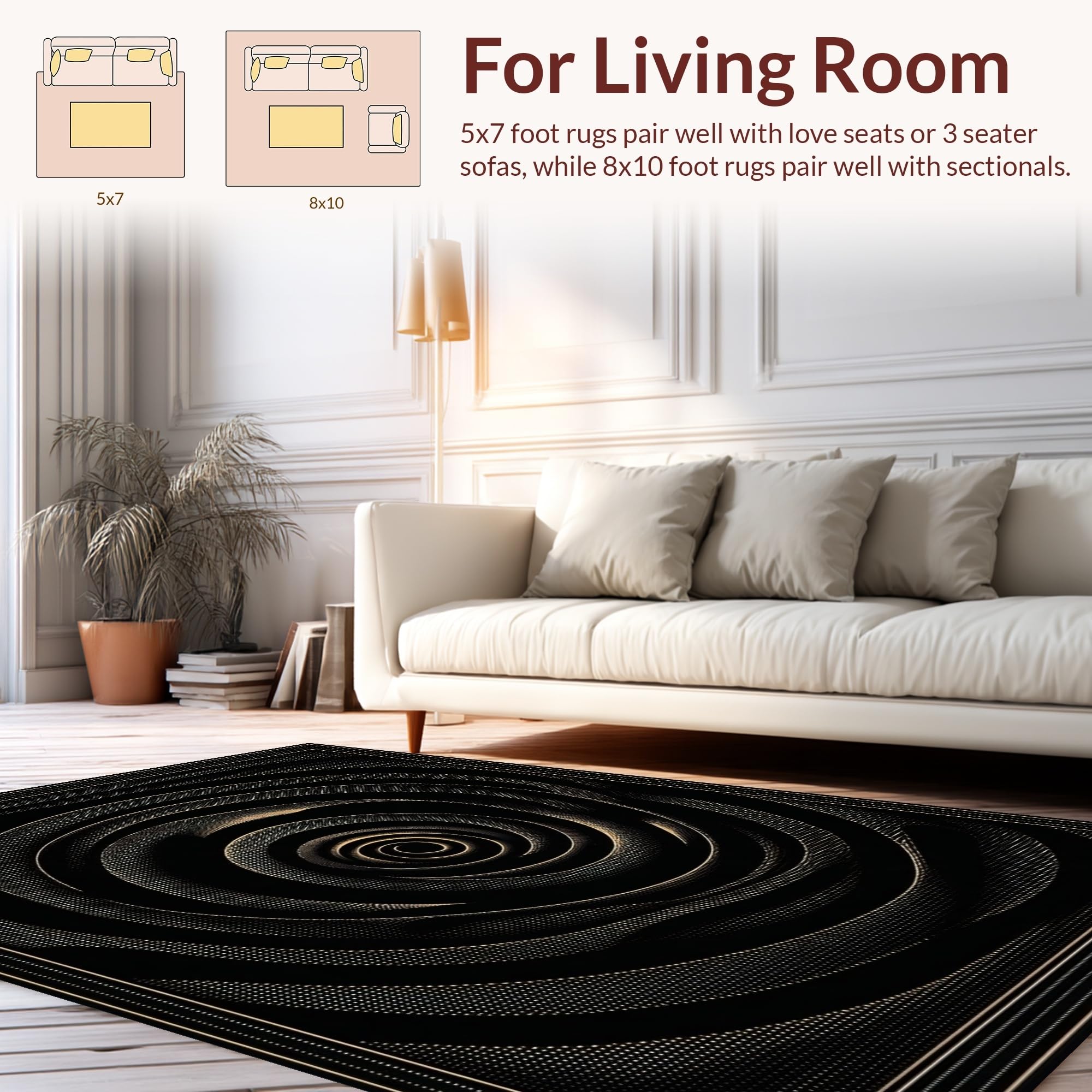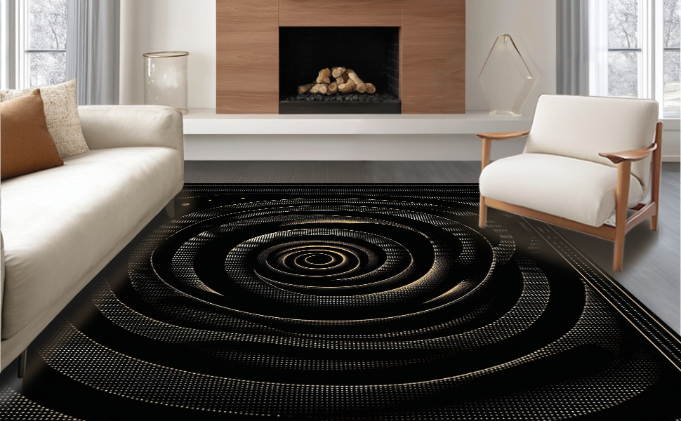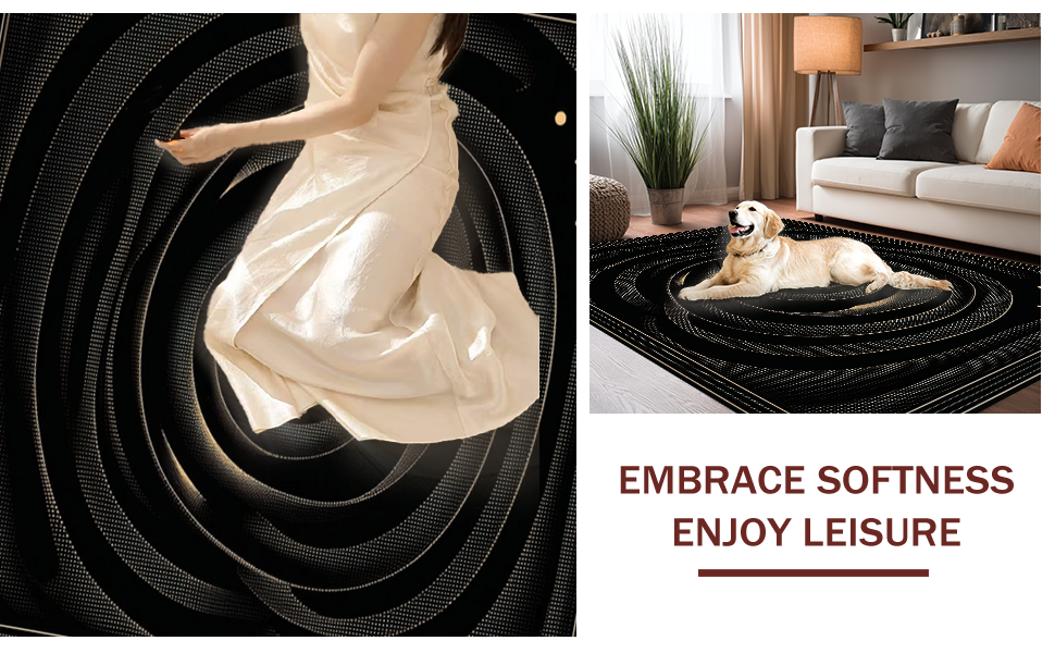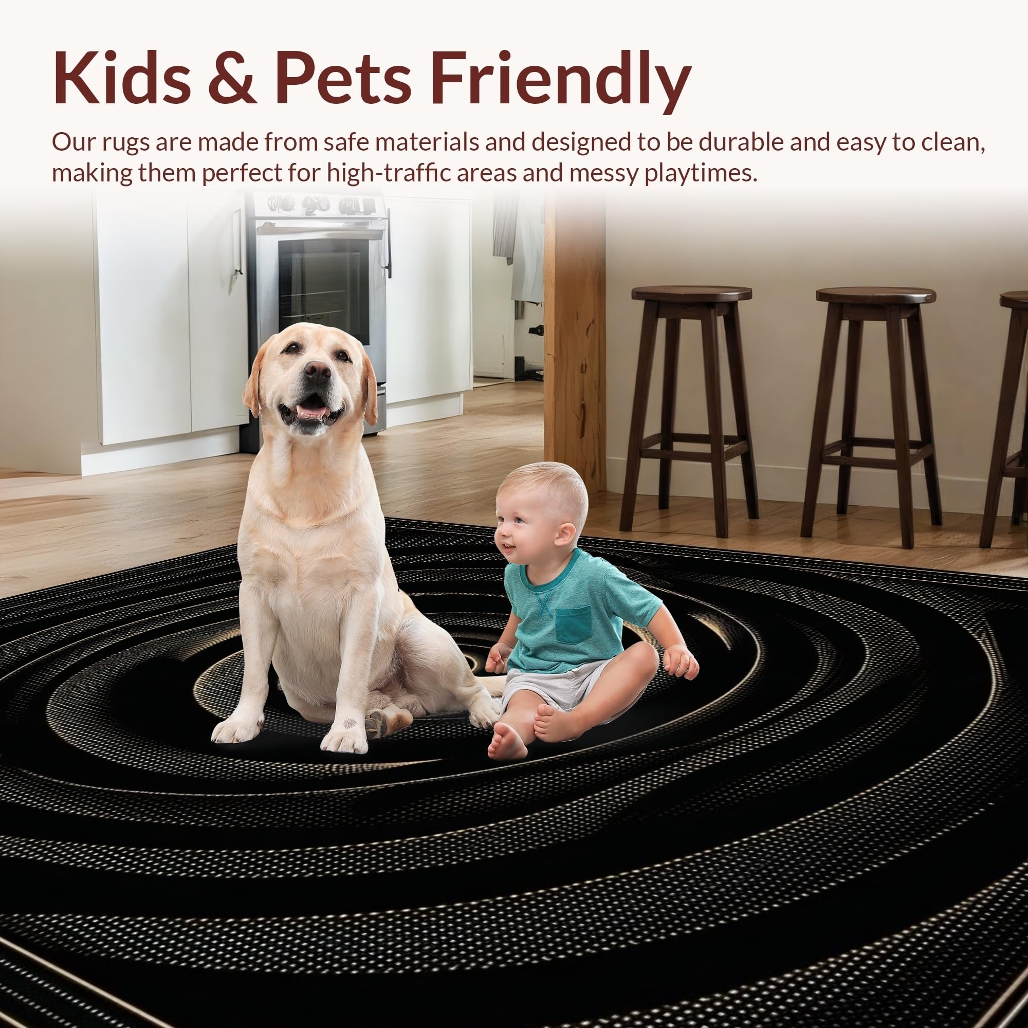 Ultra Soft Area Rug, Non Slip, Stain Resistant, Washable Area Rugs for Living Room, Bedroom, Modern Colorful Optical Design(Black) Overview: