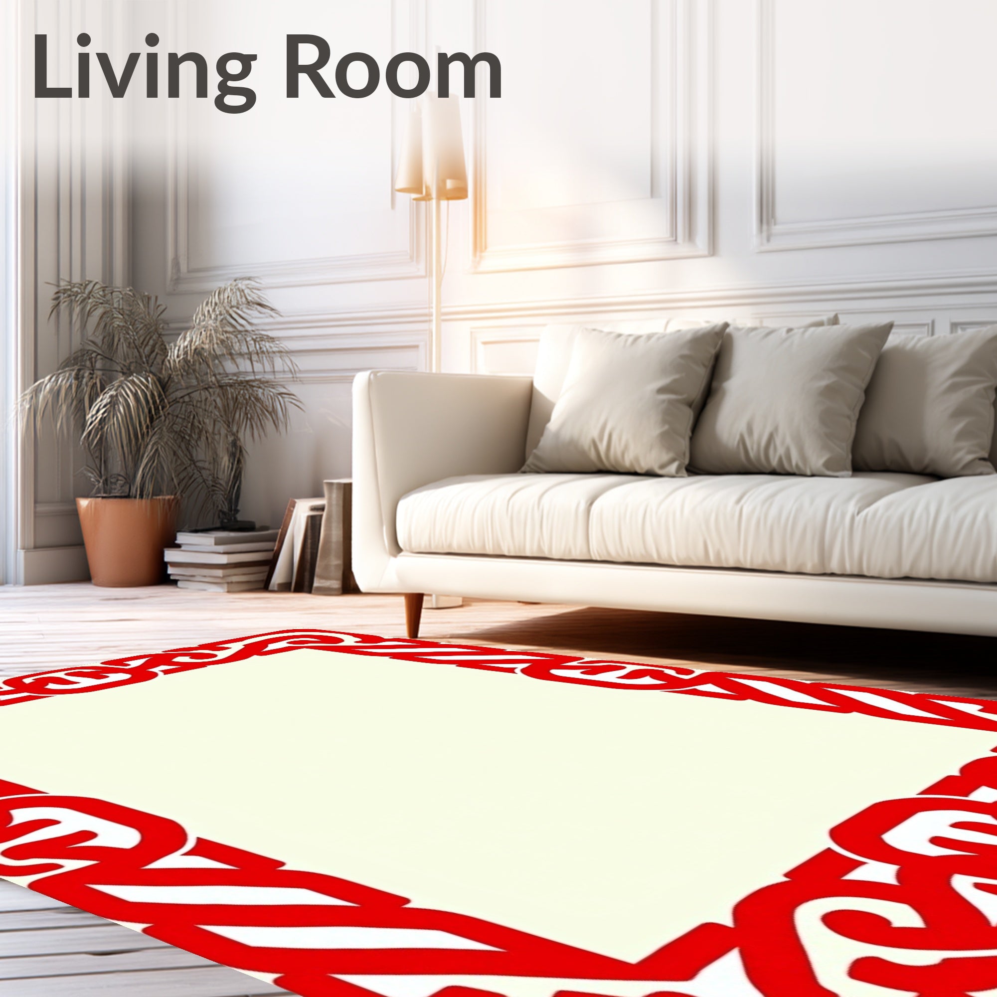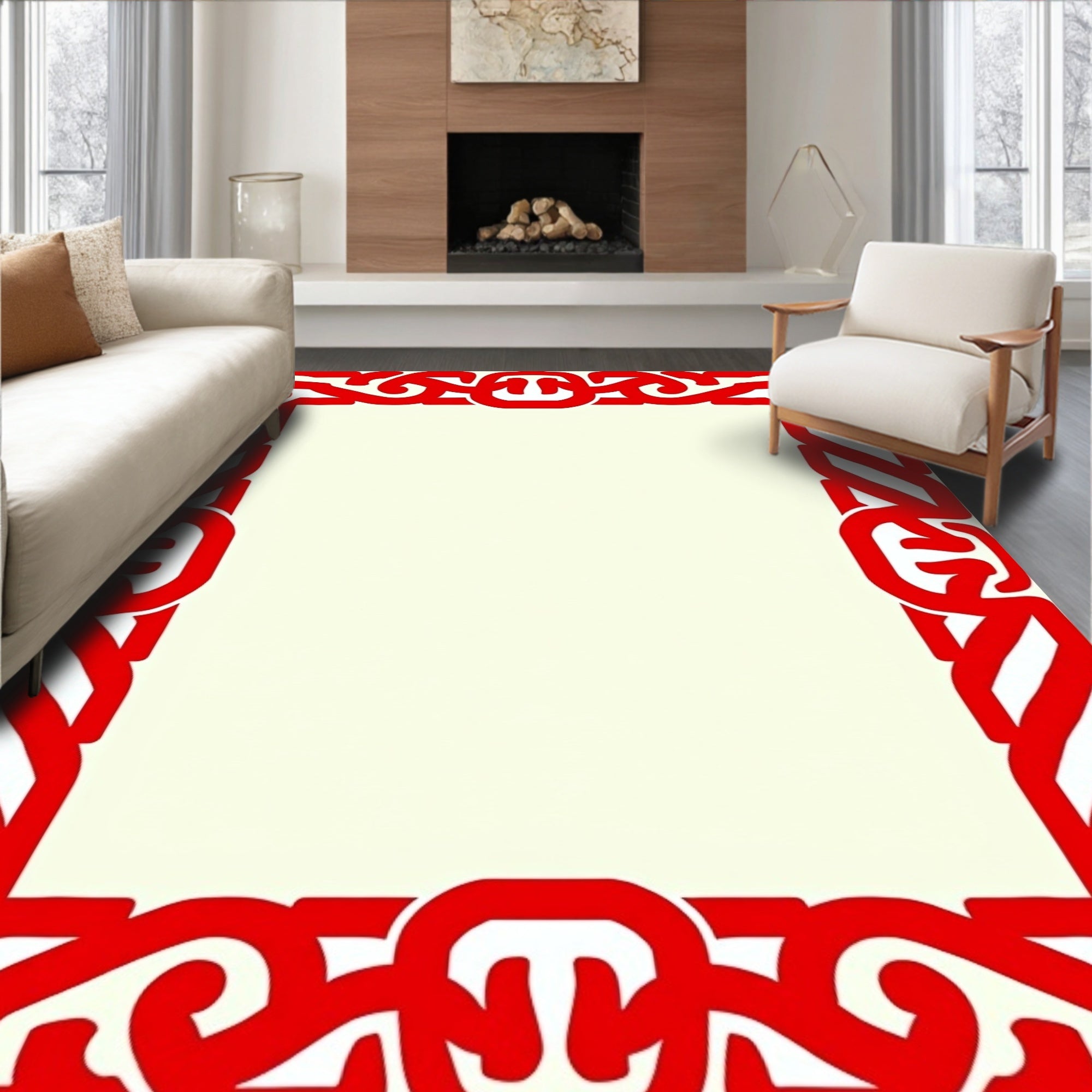 Ultra Soft Area Rug, Non Slip, Stain Resistant, Washable Area Rugs for Living Room, Bedroom, Modern Contour Frame Featuring Bold Interlocking Borders(Red) Overview: