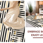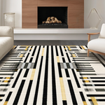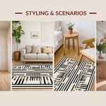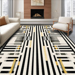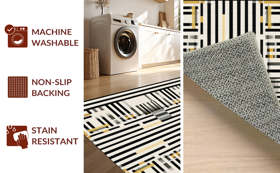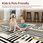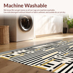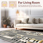 Ultra Soft Area Rug, Non Slip, Stain Resistant, Washable Area Rugs for Living Room, Bedroom, Modern Contrast Layered Stripe Rug Featuring Alternating Black and White Bands(Black) Overview: