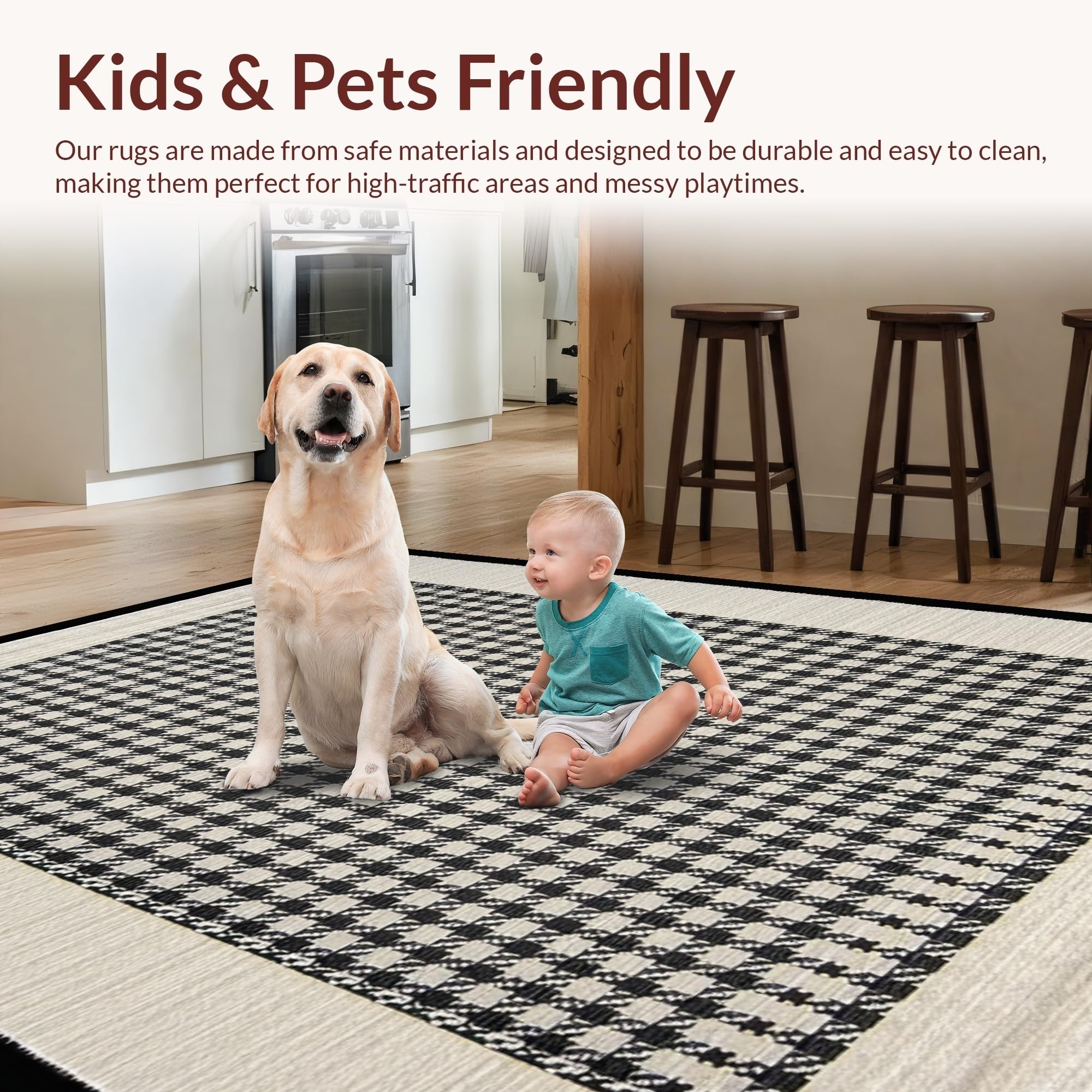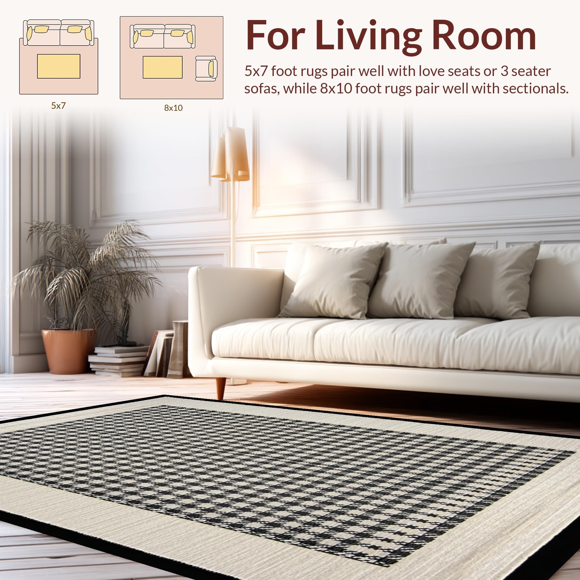 Ultra Soft Area Rug, Non Slip, Stain Resistant, Washable Area Rugs for Living Room, Bedroom, Modern Contrast Patterned Aesthetic(Beige) Overview: