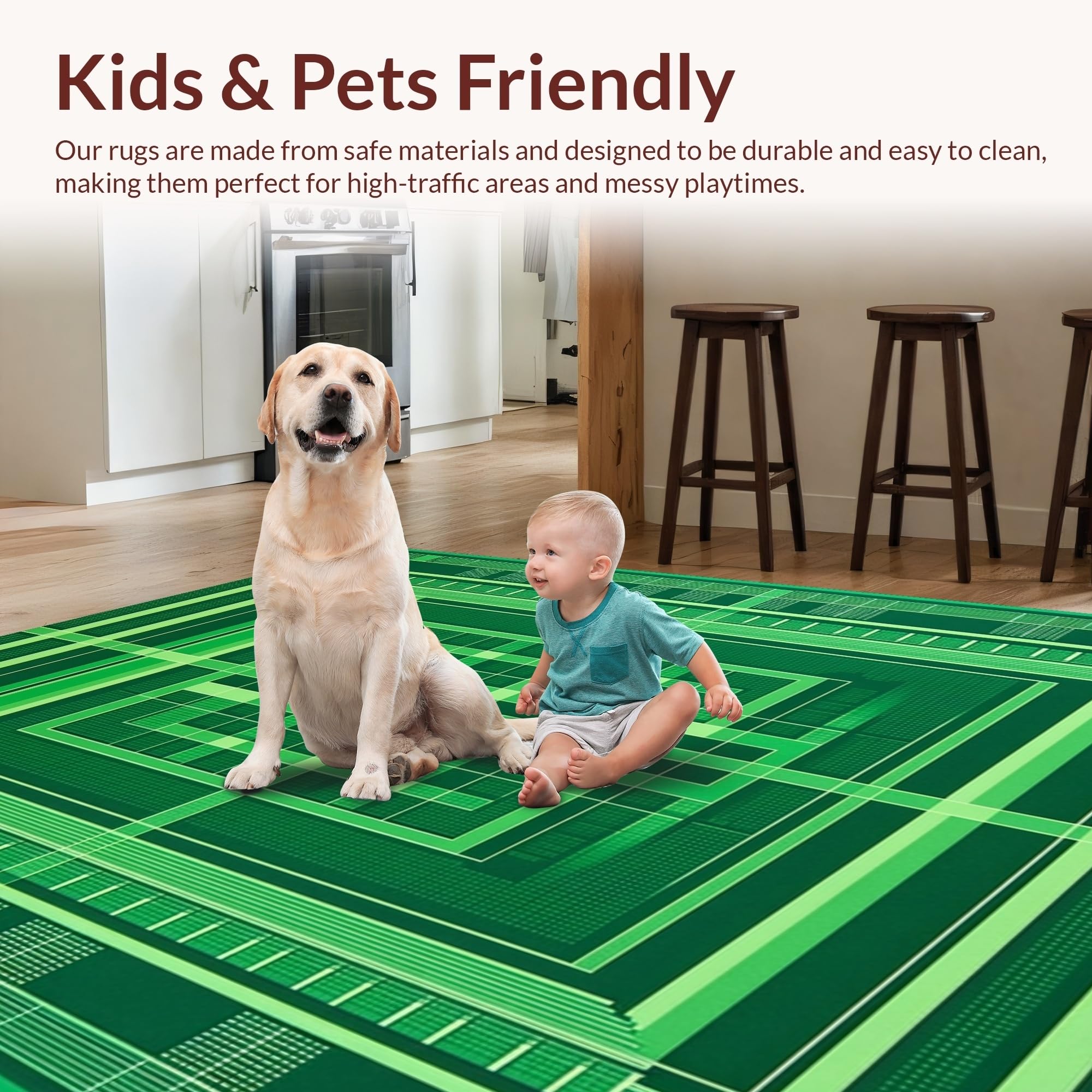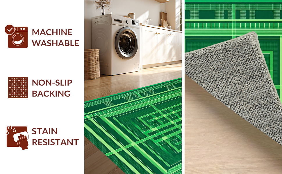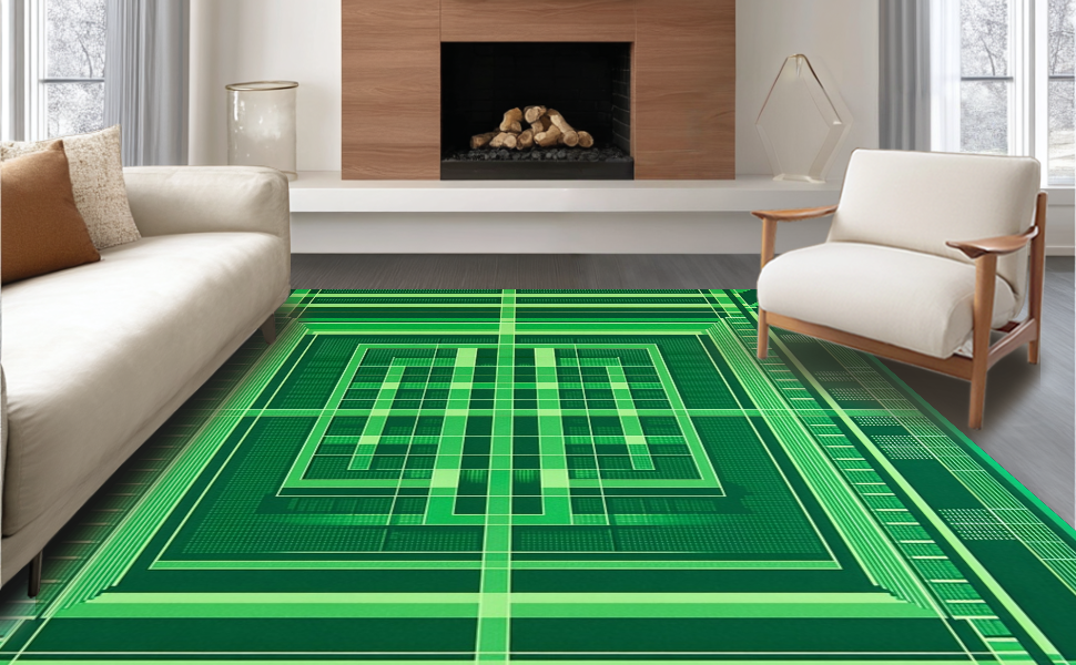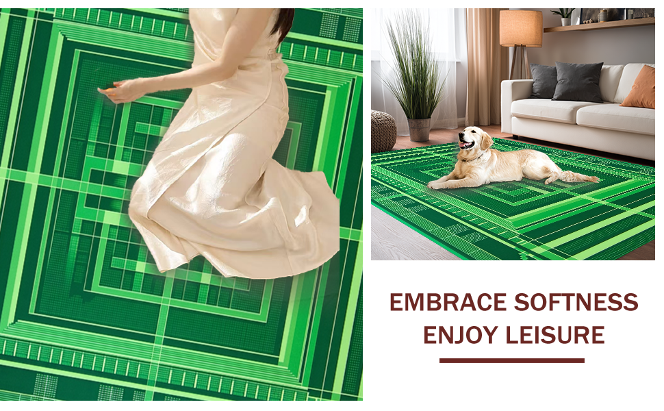 Ultra Soft Area Rug, Non Slip, Stain Resistant, Washable Area Rugs for Living Room, Bedroom, Modern Cozy Ladder Design(Green) Overview: