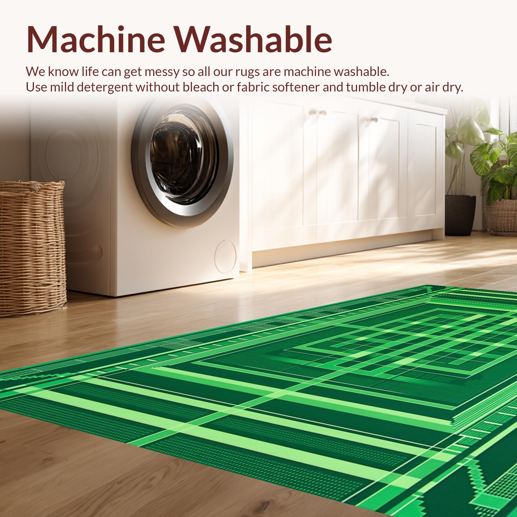 - Machine Washable: Our rugs can be easily thrown in the wash machine.