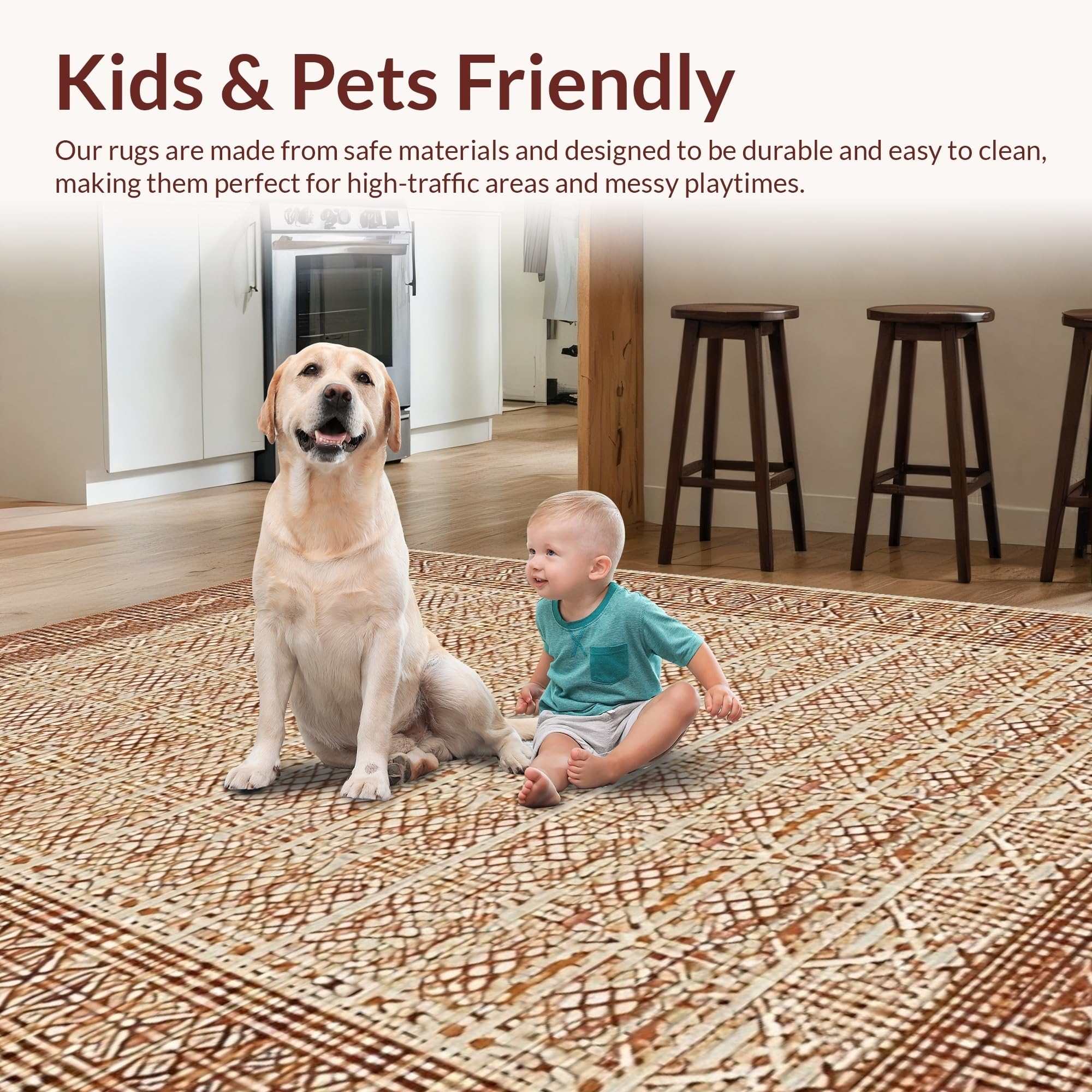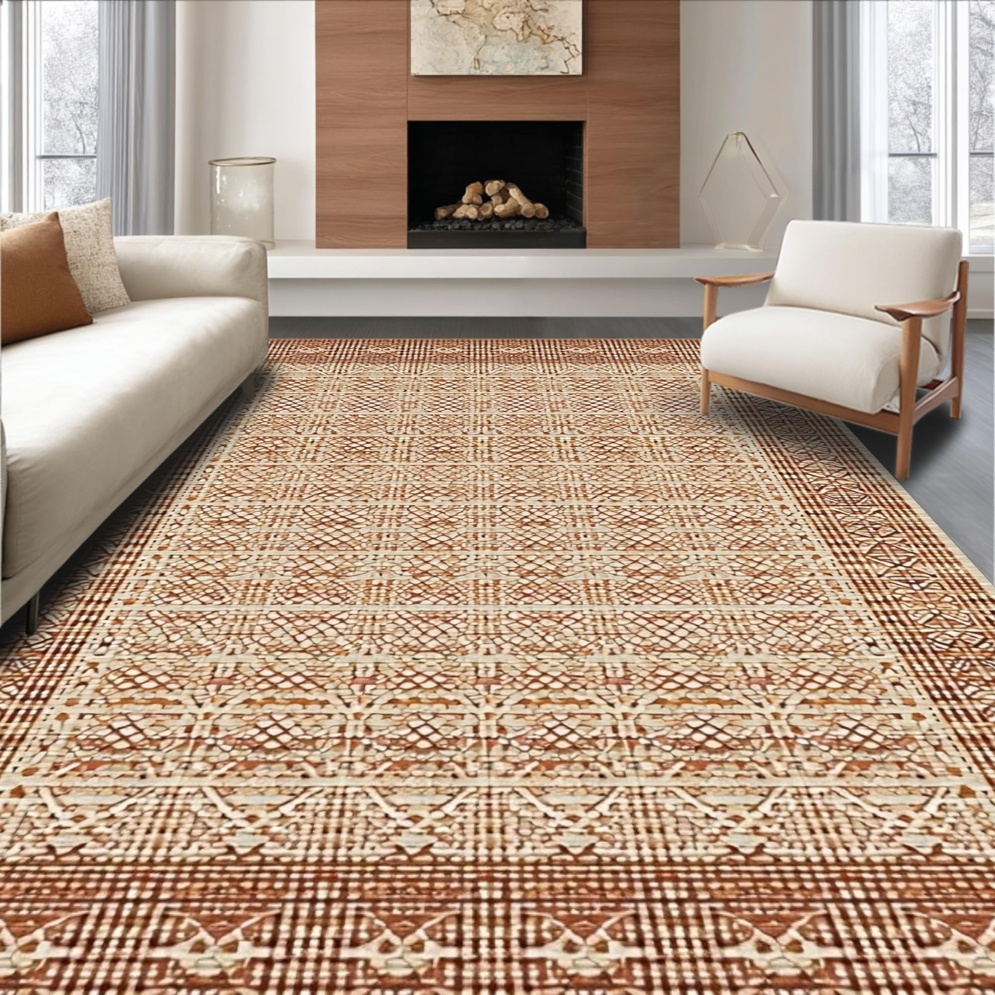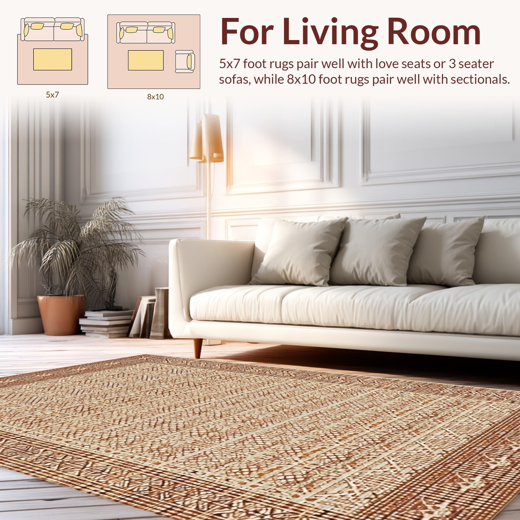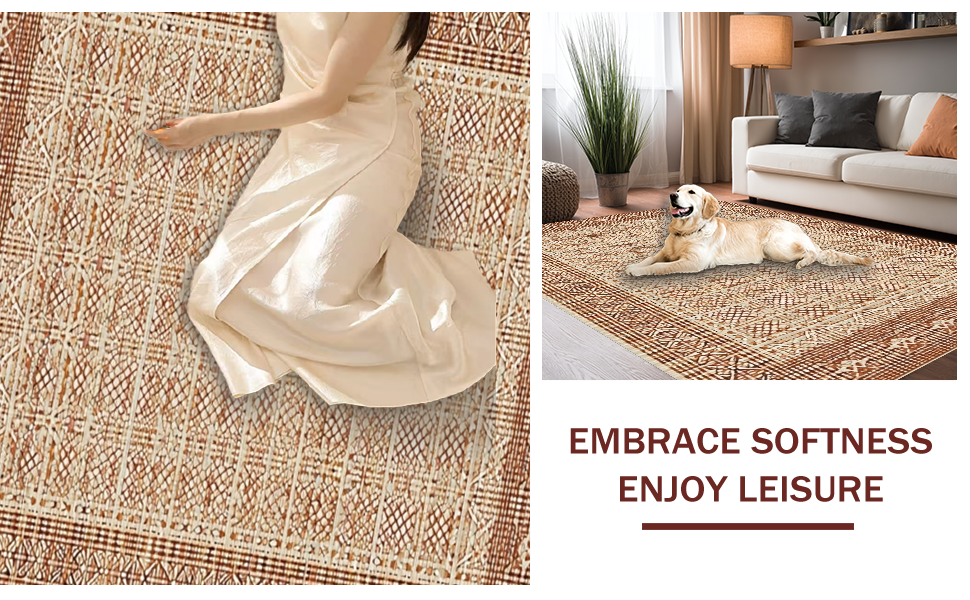 Ultra Soft Area Rug, Non Slip, Stain Resistant, Washable Area Rugs for Living Room, Bedroom, Modern Cozy Linear Design Scheme(Beige) Overview: