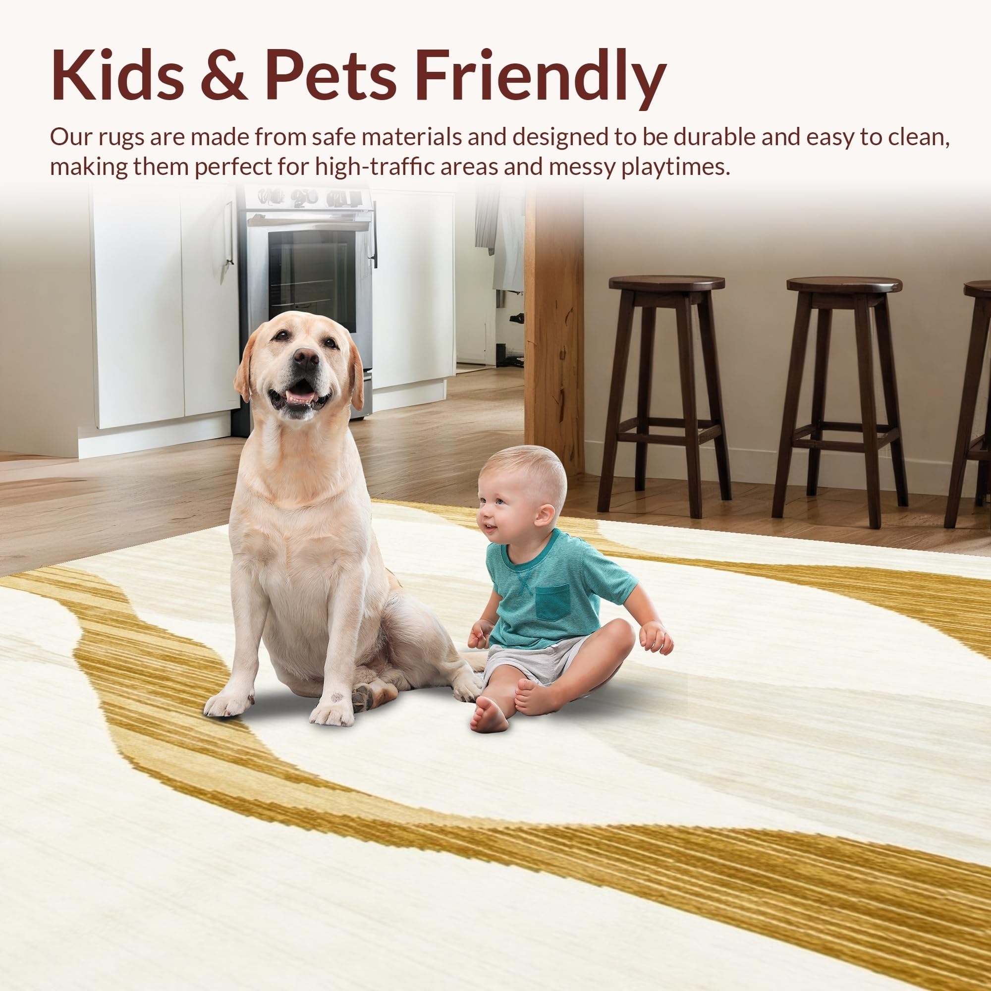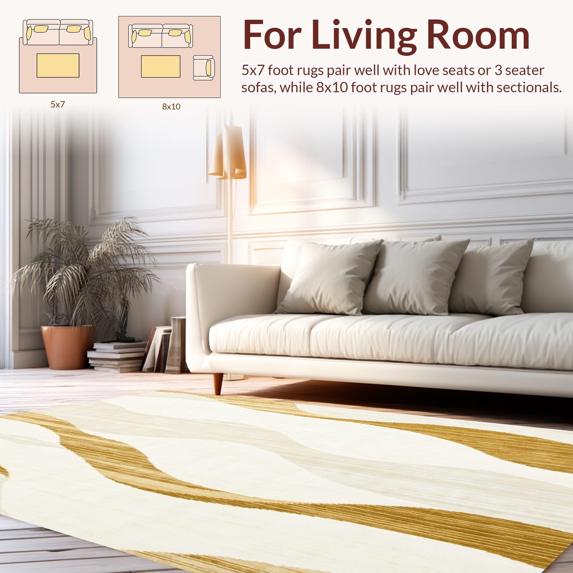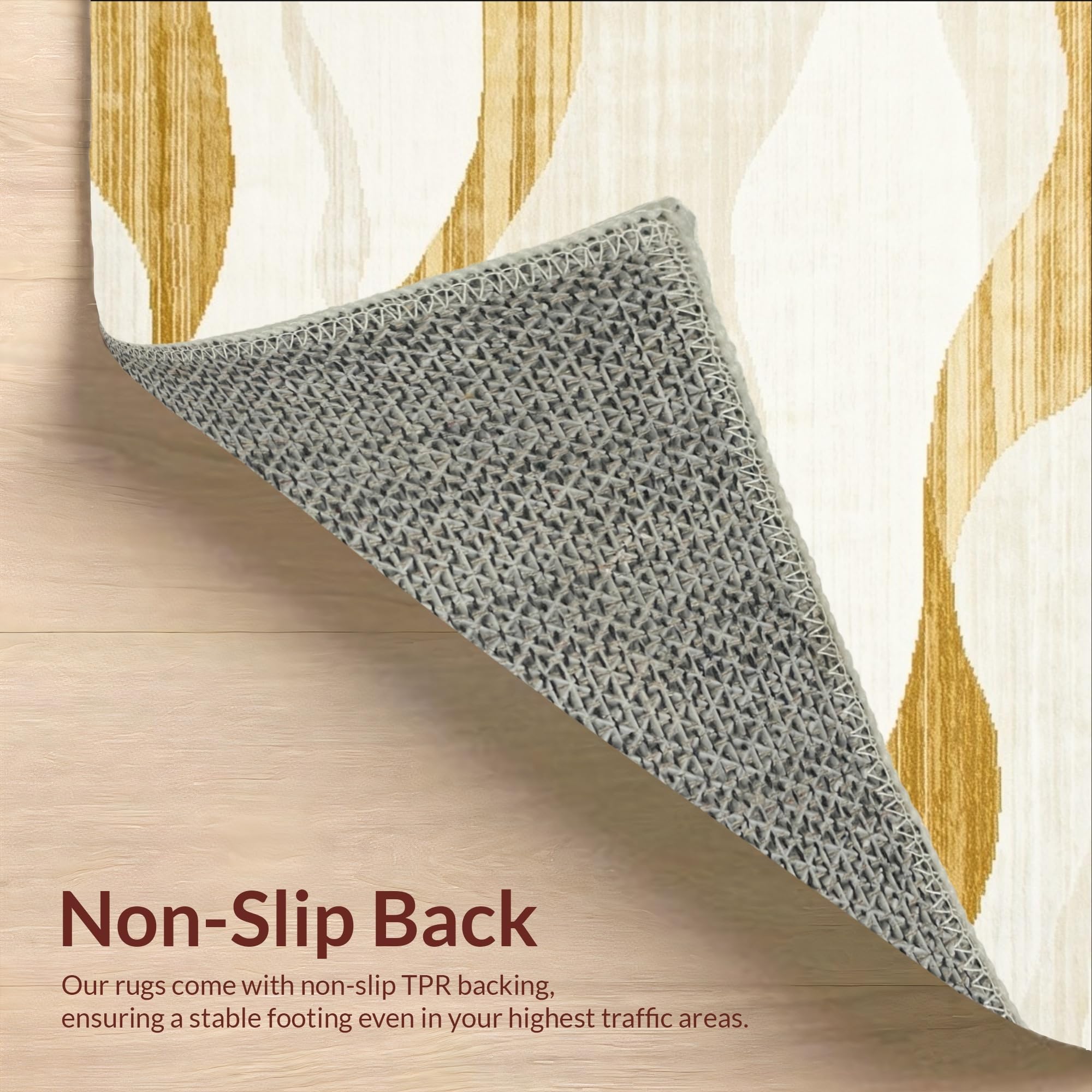 Ultra Soft Area Rug, Non Slip, Stain Resistant, Washable Area Rugs for Living Room, Bedroom, Modern Cream Wave Area(Beige) Overview: