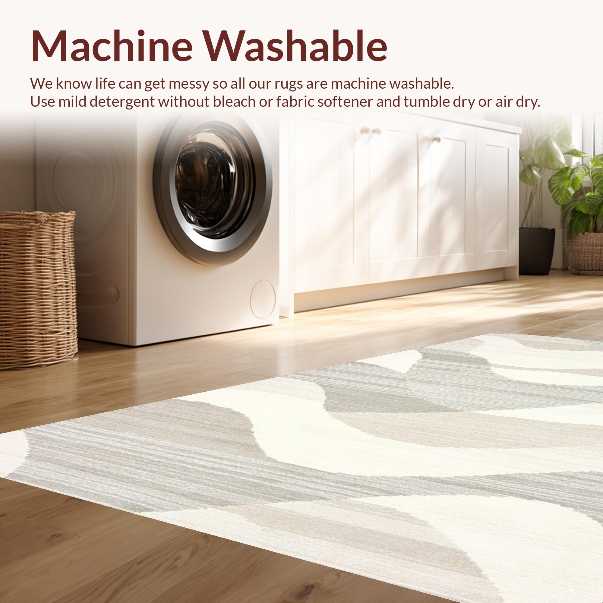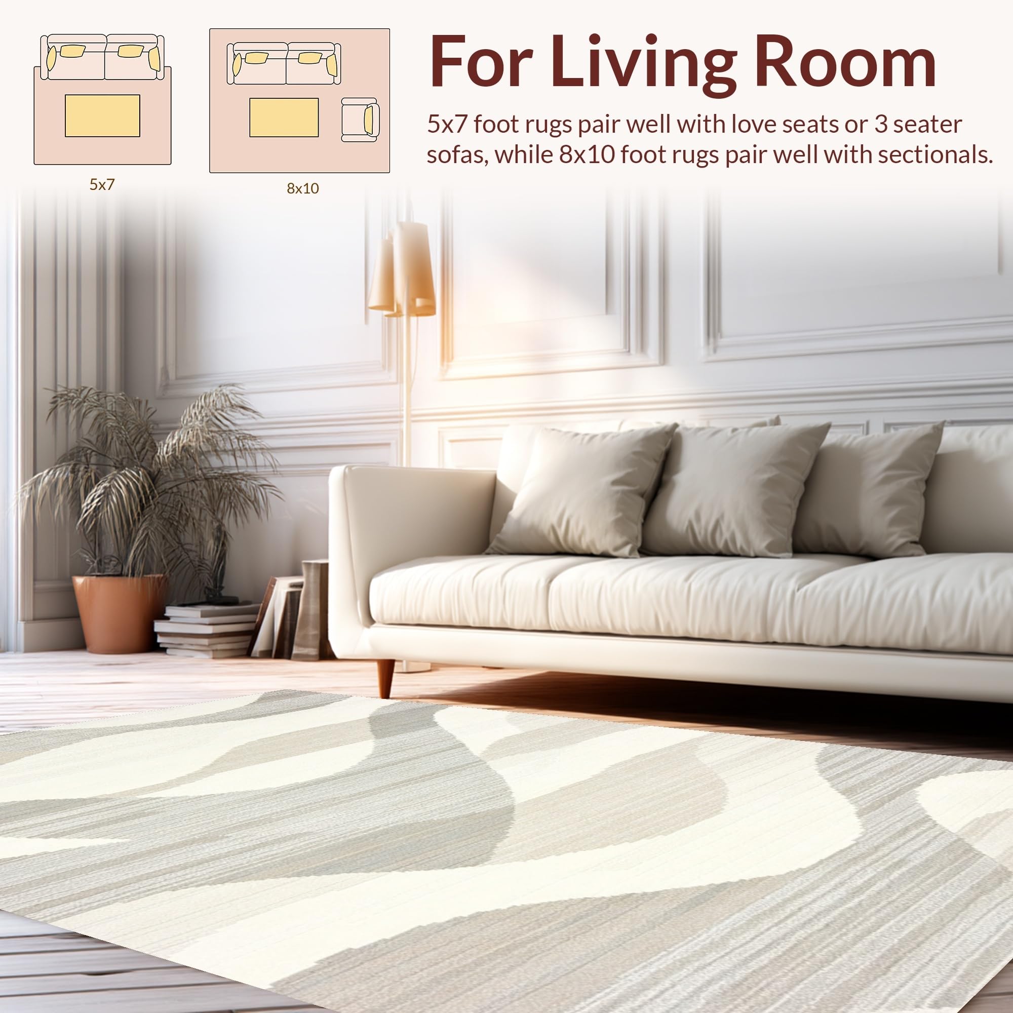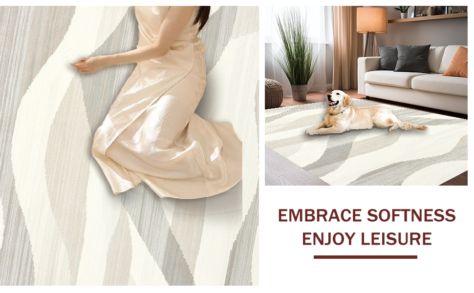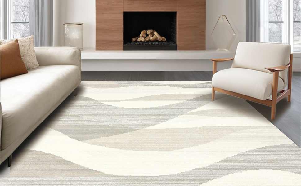Ultra Soft Area Rug, Non Slip, Stain Resistant, Washable Area Rugs for Living Room, Bedroom, Modern Creamy Wavy Pattern Play(Beige) Overview: