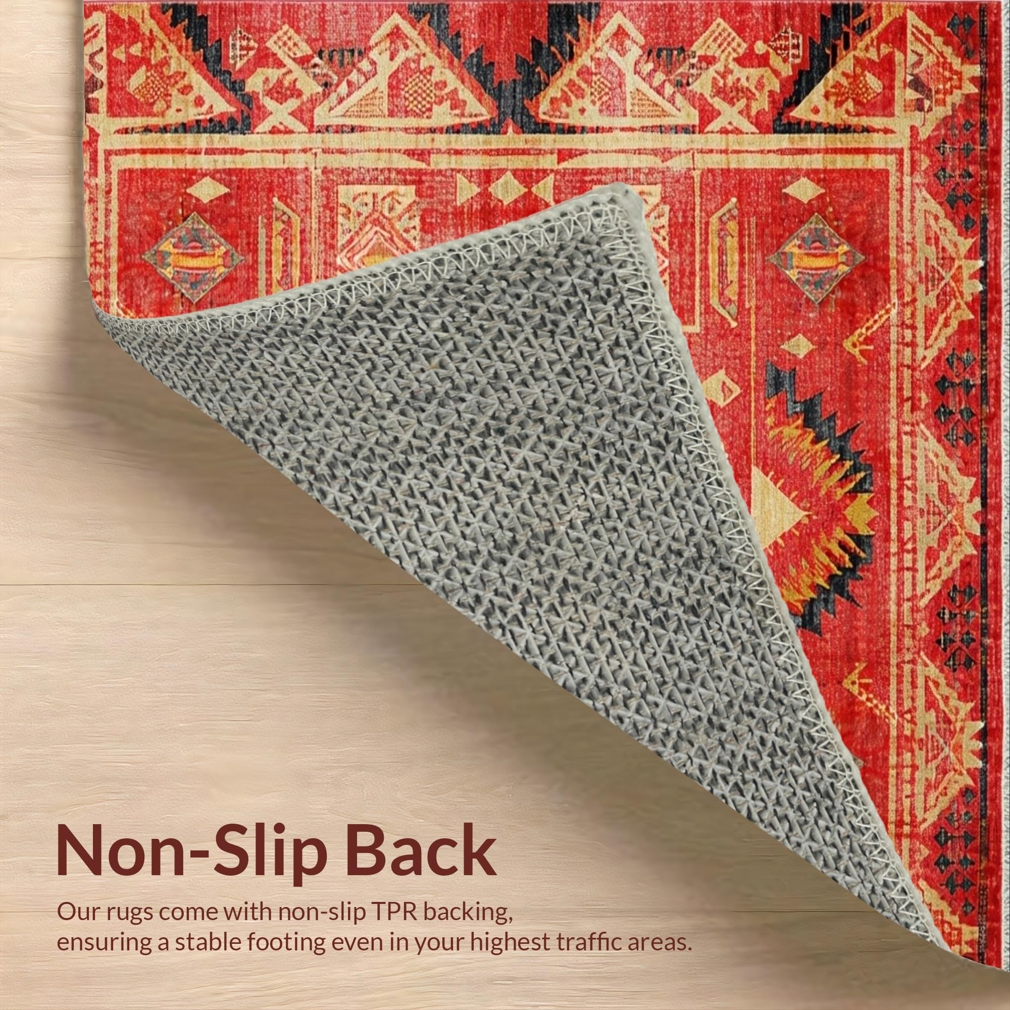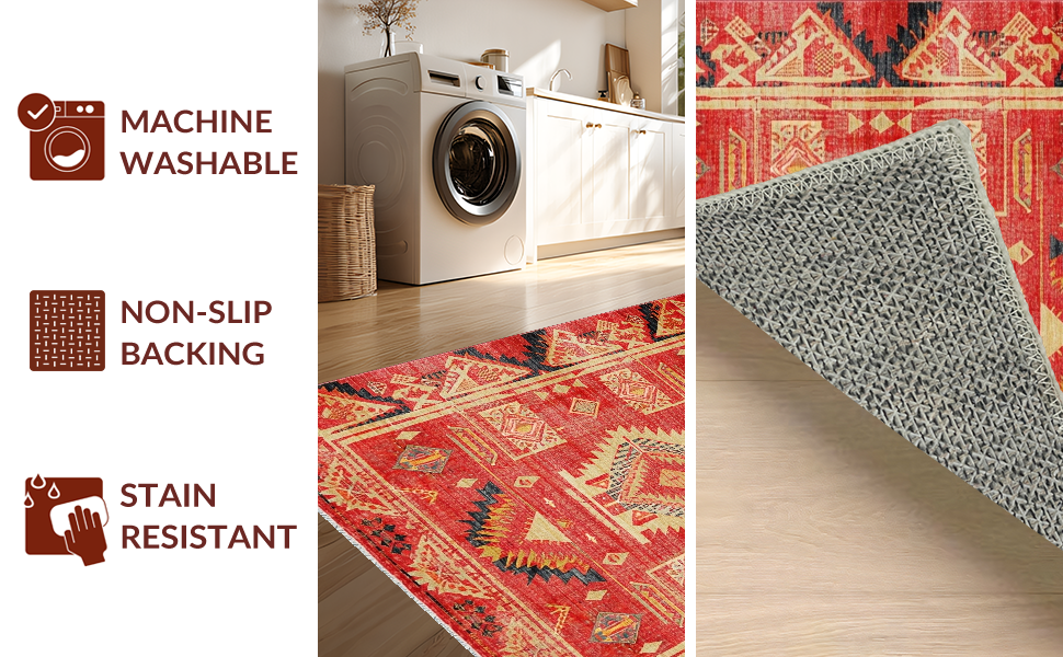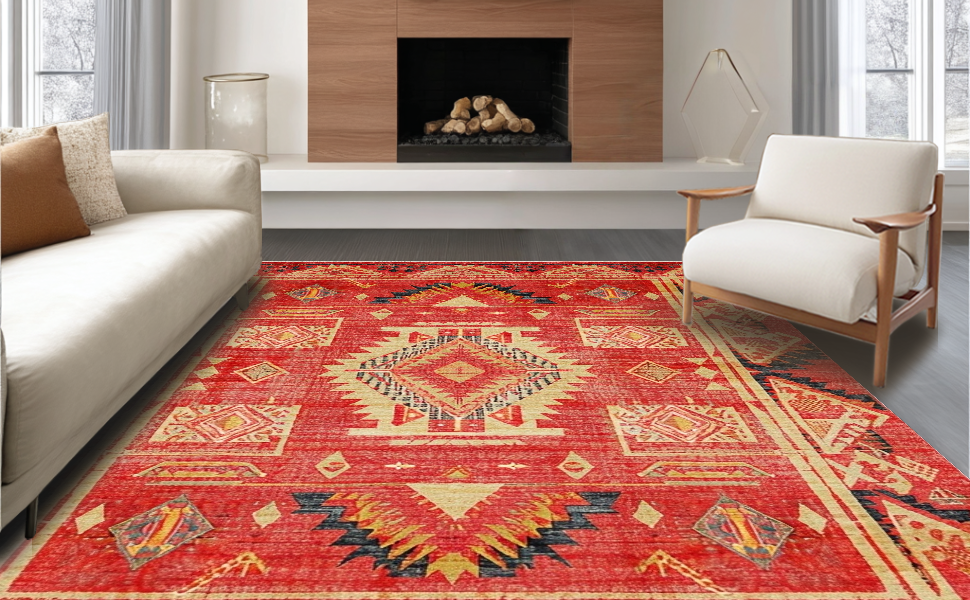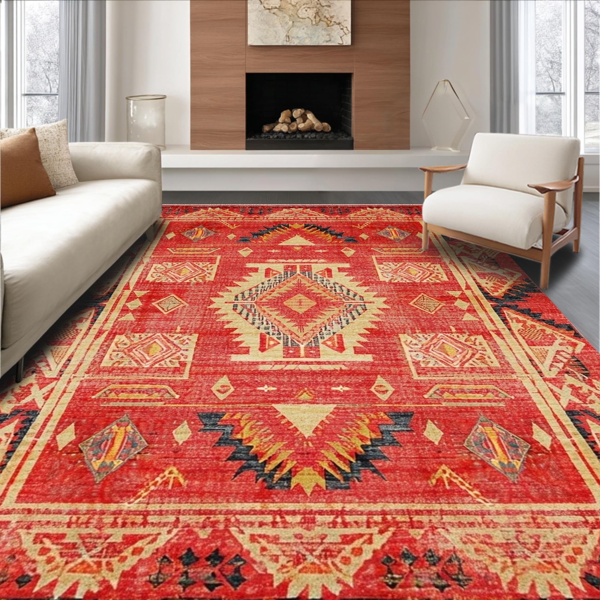 Ultra Soft Area Rug, Non Slip, Stain Resistant, Washable Area Rugs for Living Room, Bedroom, Modern Crimson Ethnic Geometry(Red) Overview: