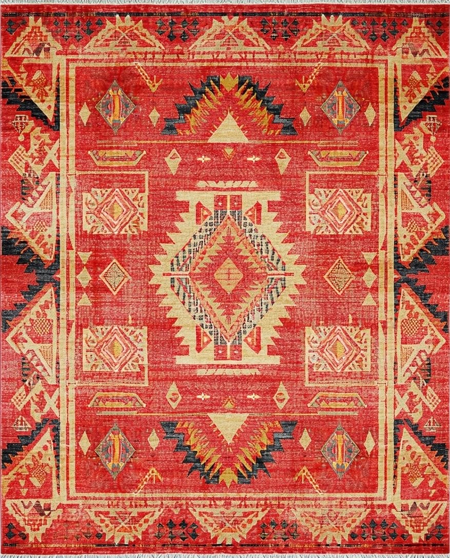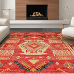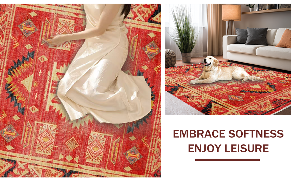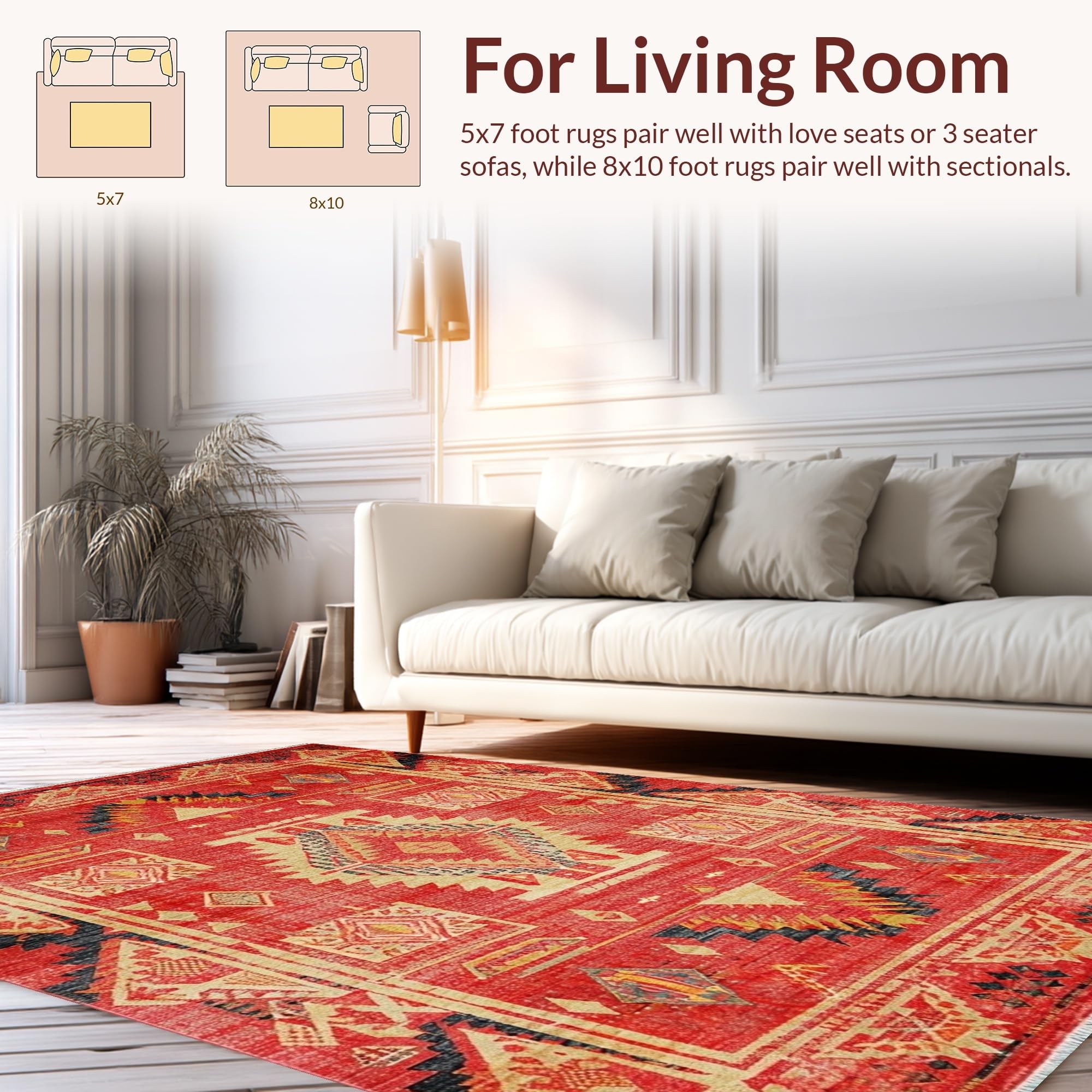 Ultra Soft Area Rug, Non Slip, Stain Resistant, Washable Area Rugs for Living Room, Bedroom, Modern Crimson Ethnic Geometry(Red) Overview: