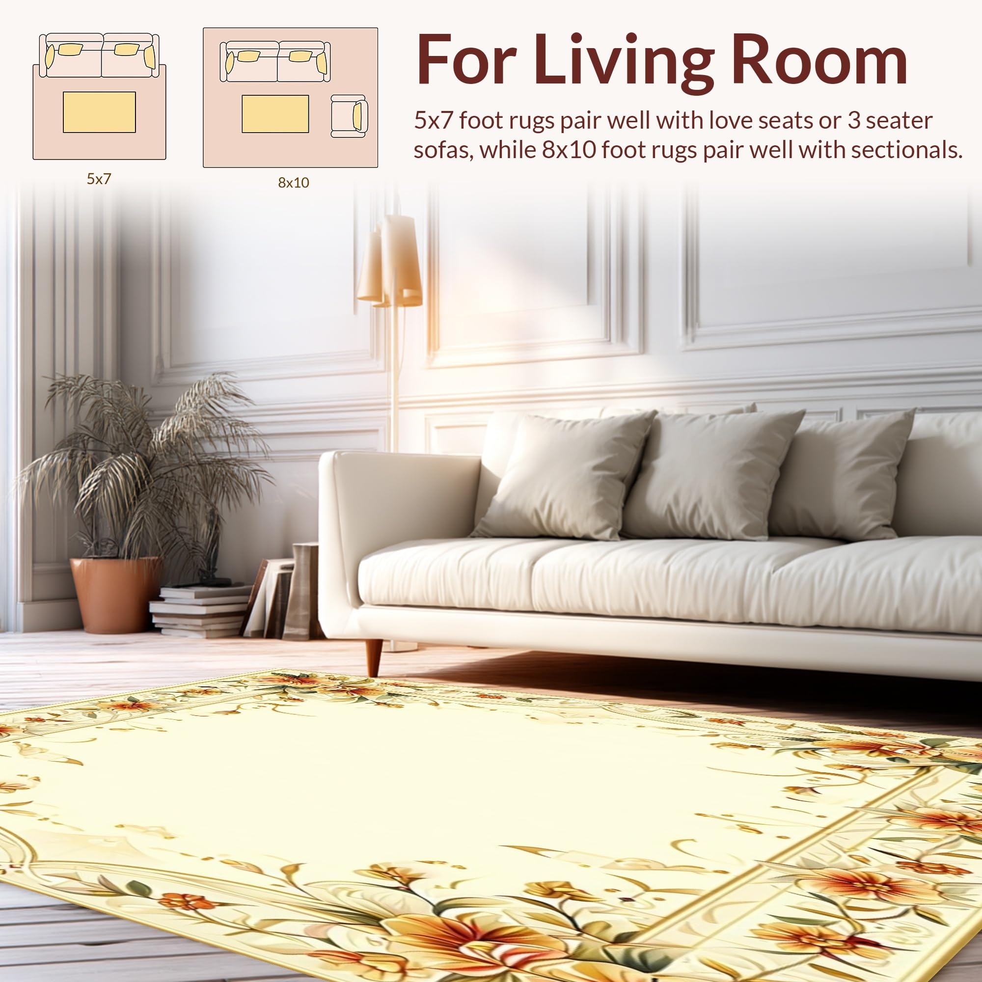 Ultra Soft Area Rug, Non Slip, Stain Resistant, Washable Area Rugs for Living Room, Bedroom, Modern Curved Lines Natural Look Beige Area(Beige) Overview: