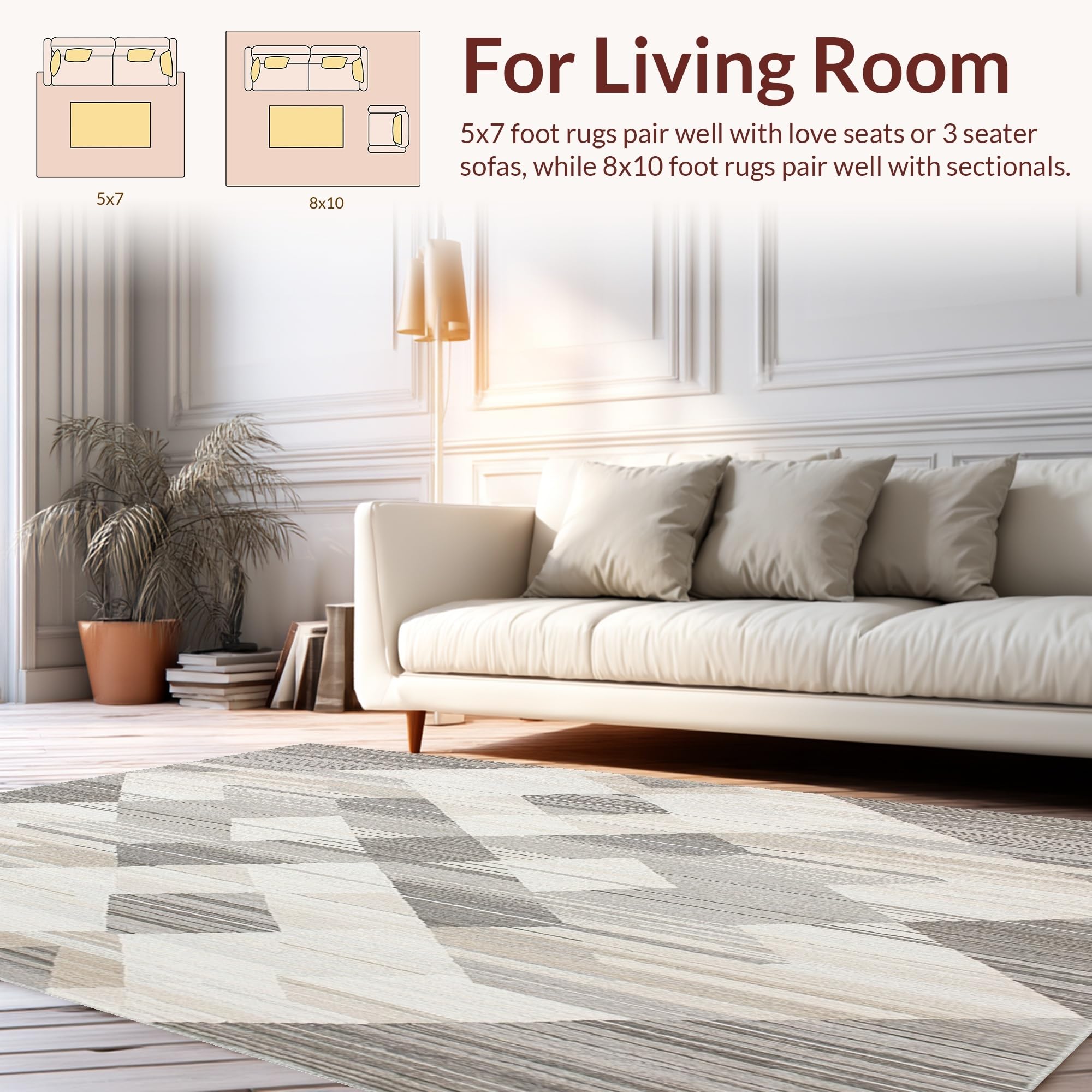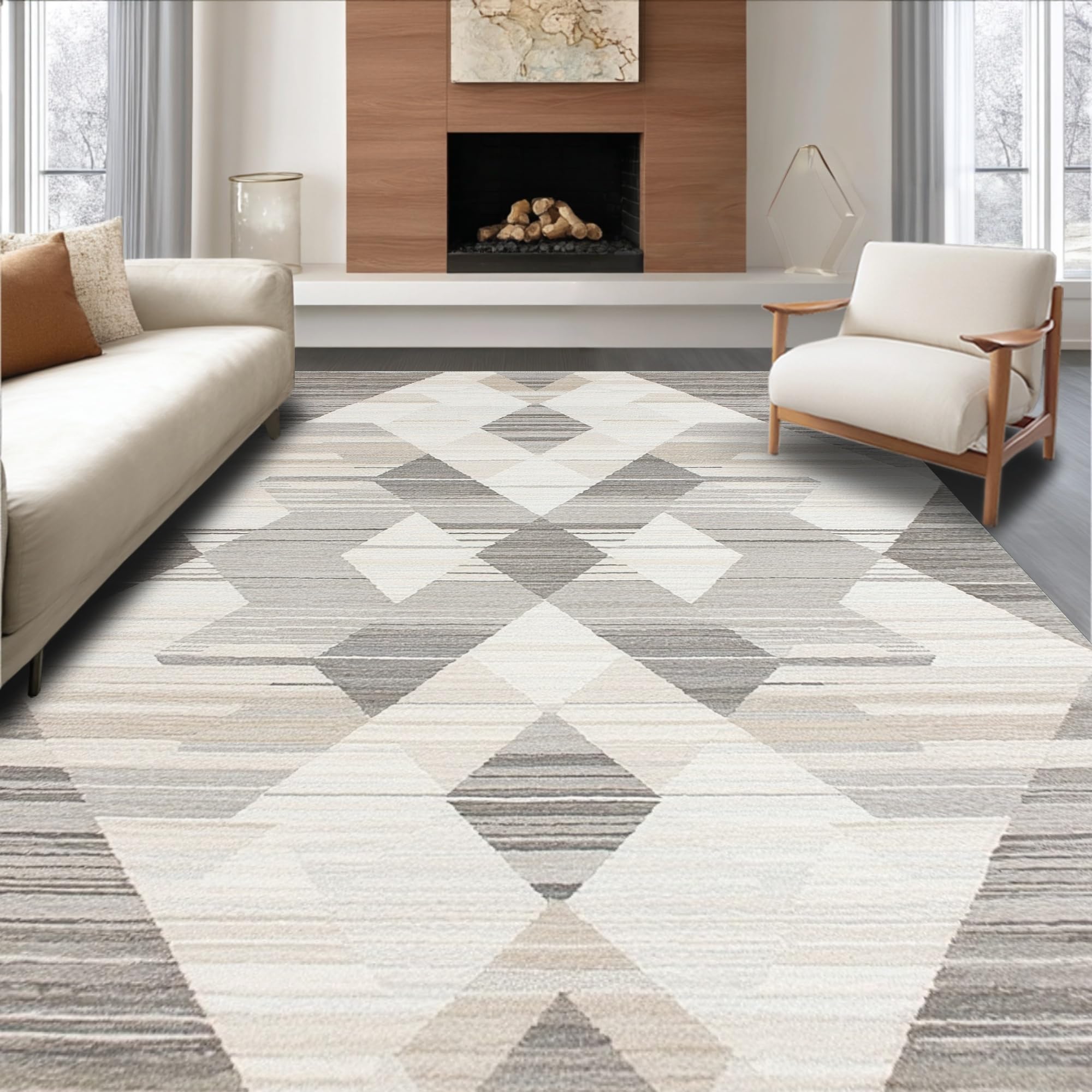 Ultra Soft Area Rug, Non Slip, Stain Resistant, Washable Area Rugs for Living Room, Bedroom, Modern Diamond Greyish Beige(Gray) Overview: