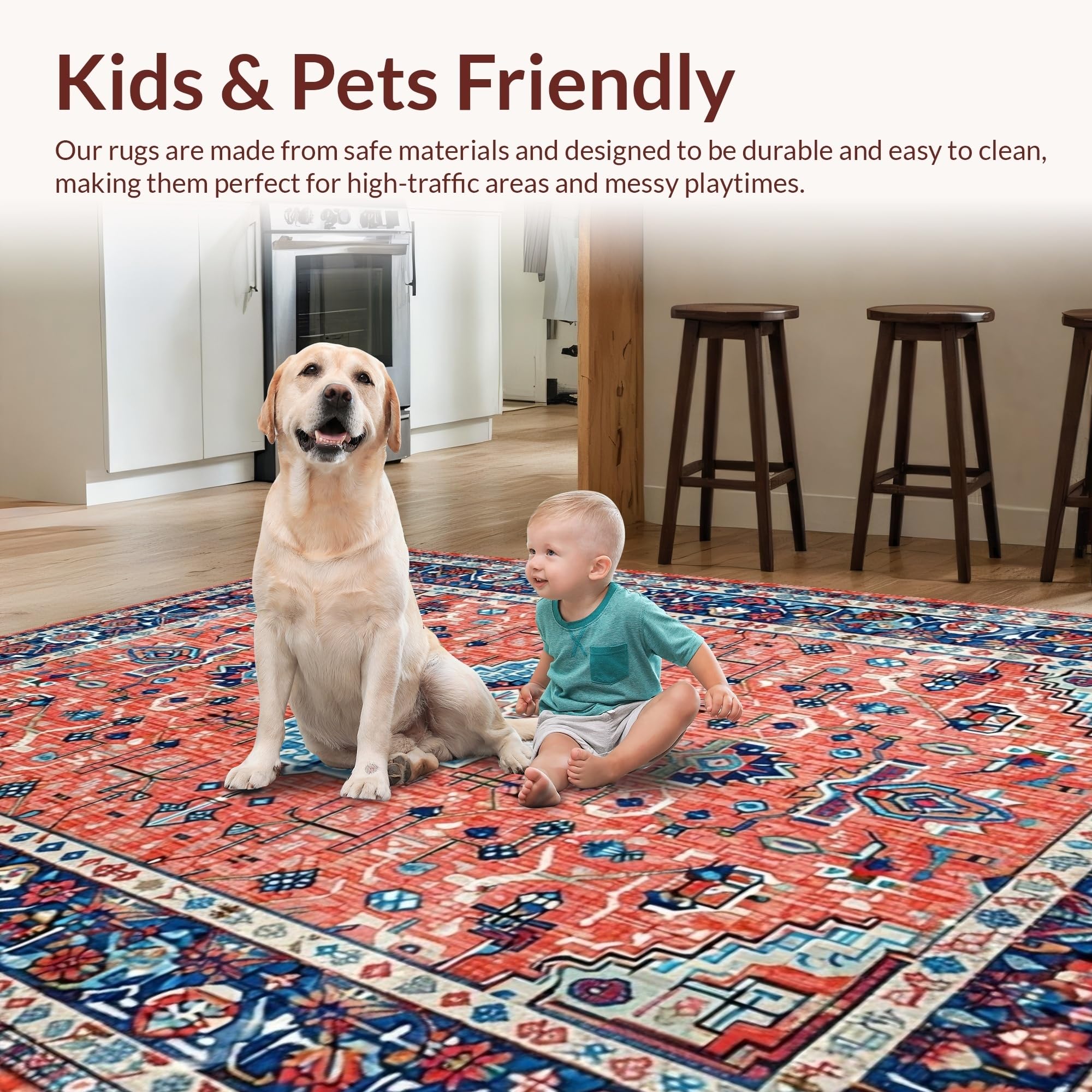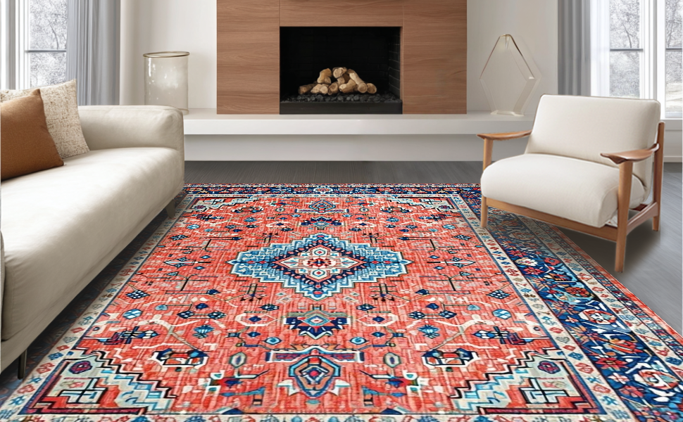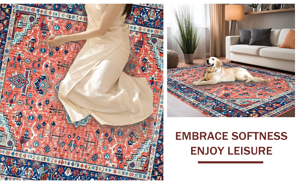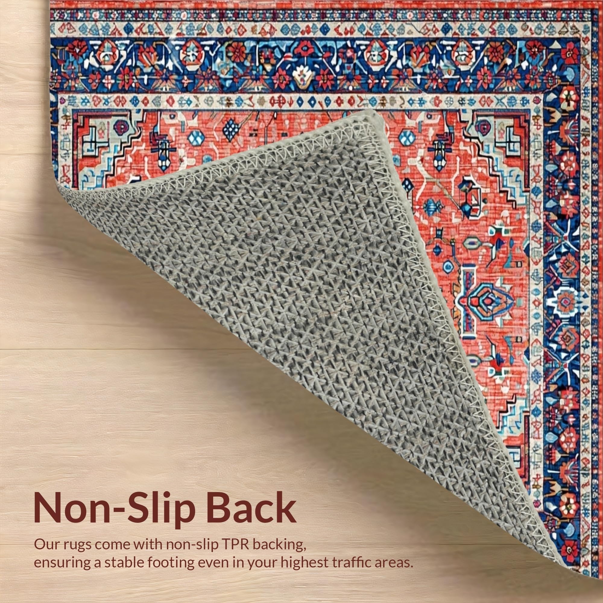 Ultra Soft Area Rug, Non Slip, Stain Resistant, Washable Area Rugs for Living Room, Bedroom, Modern Distressed Floral Aesthetic(Red) Overview: