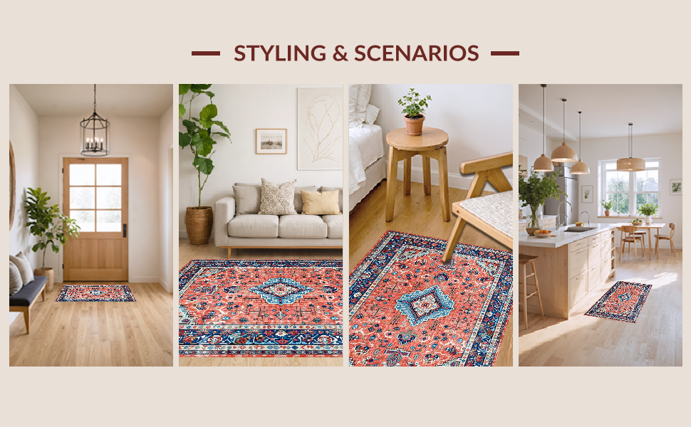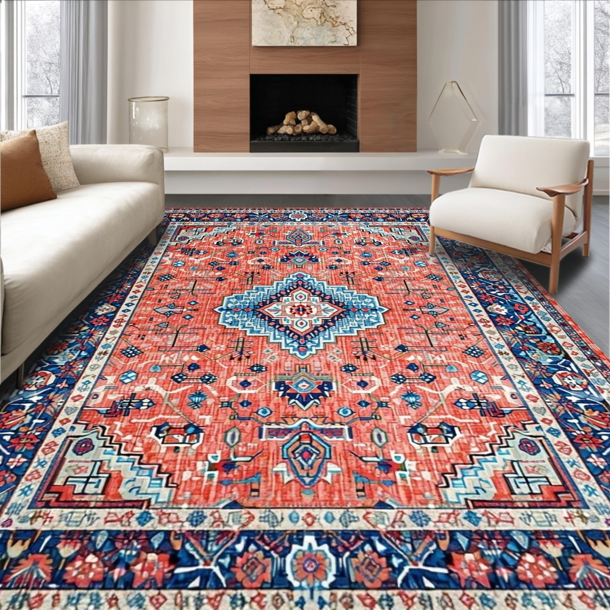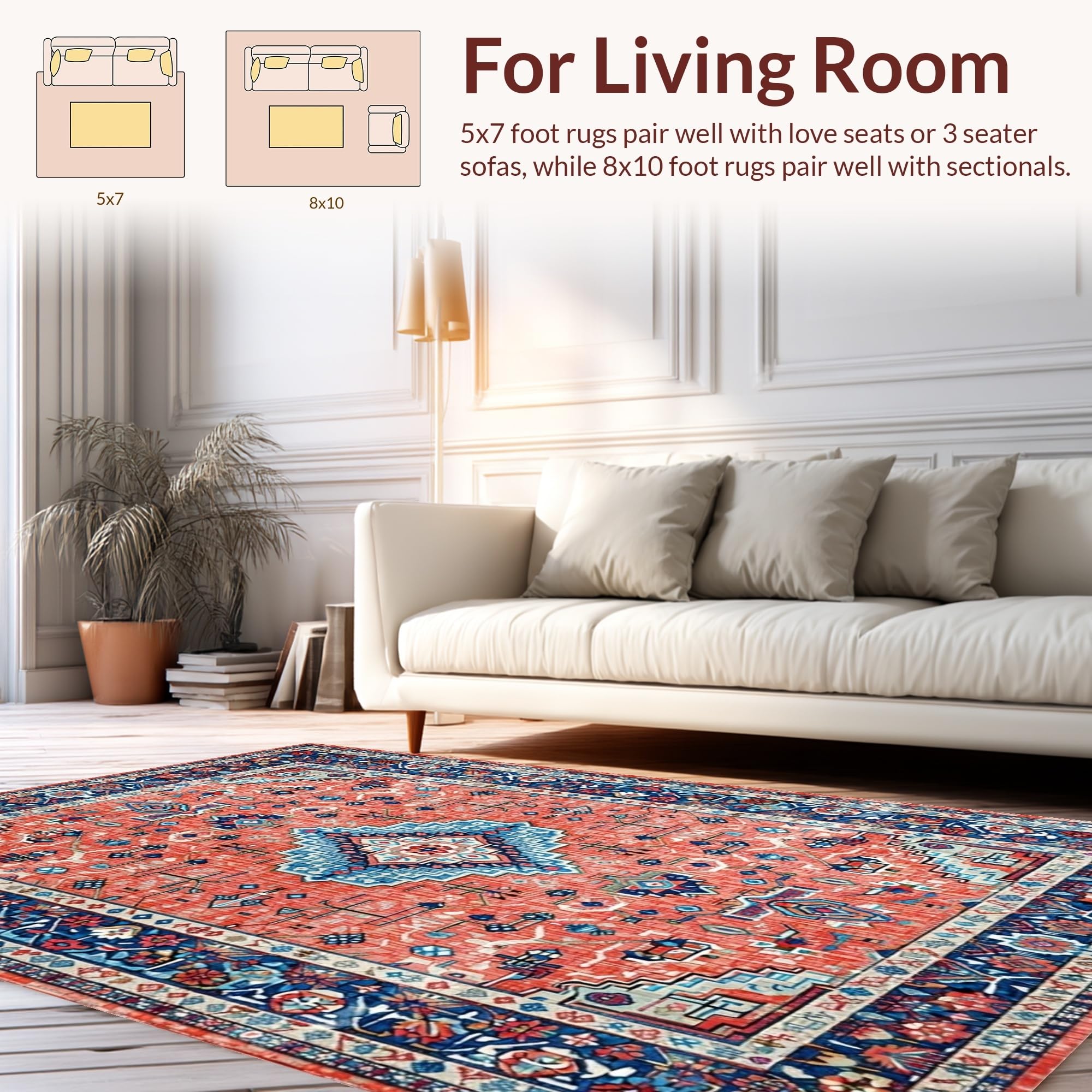 Ultra Soft Area Rug, Non Slip, Stain Resistant, Washable Area Rugs for Living Room, Bedroom, Modern Distressed Floral Aesthetic(Red) Overview: