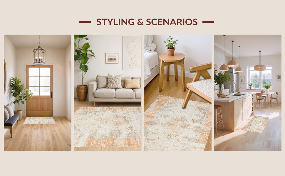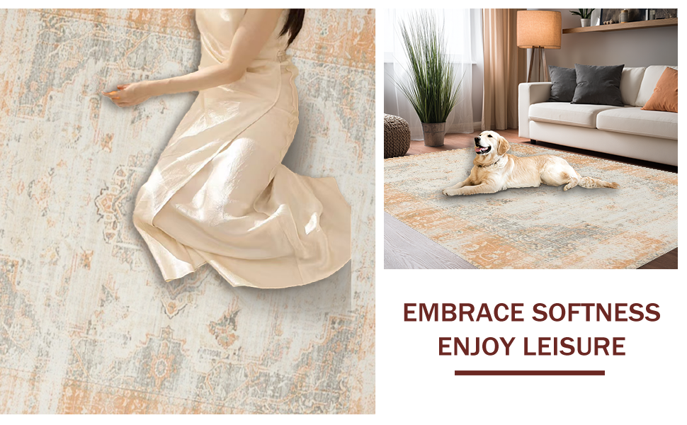 Ultra Soft Area Rug, Non Slip, Stain Resistant, Washable Area Rugs for Living Room, Bedroom, Modern Distressed Floral Harmony(Beige) Overview: