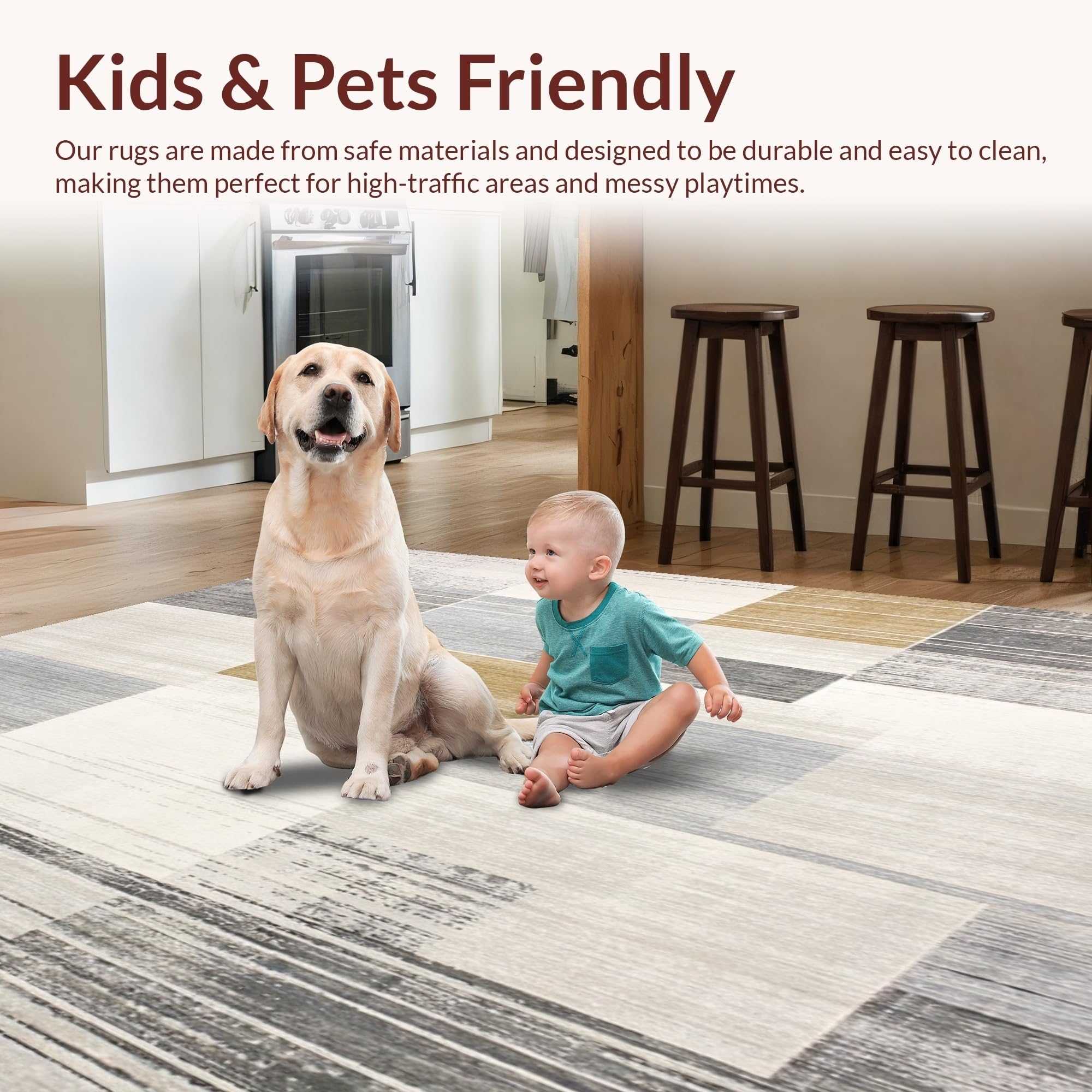 Ultra Soft Area Rug, Non Slip, Stain Resistant, Washable Area Rugs for Living Room, Bedroom, Modern Distressed Geometric Non Slip Small Floor Area(Gray) Overview: