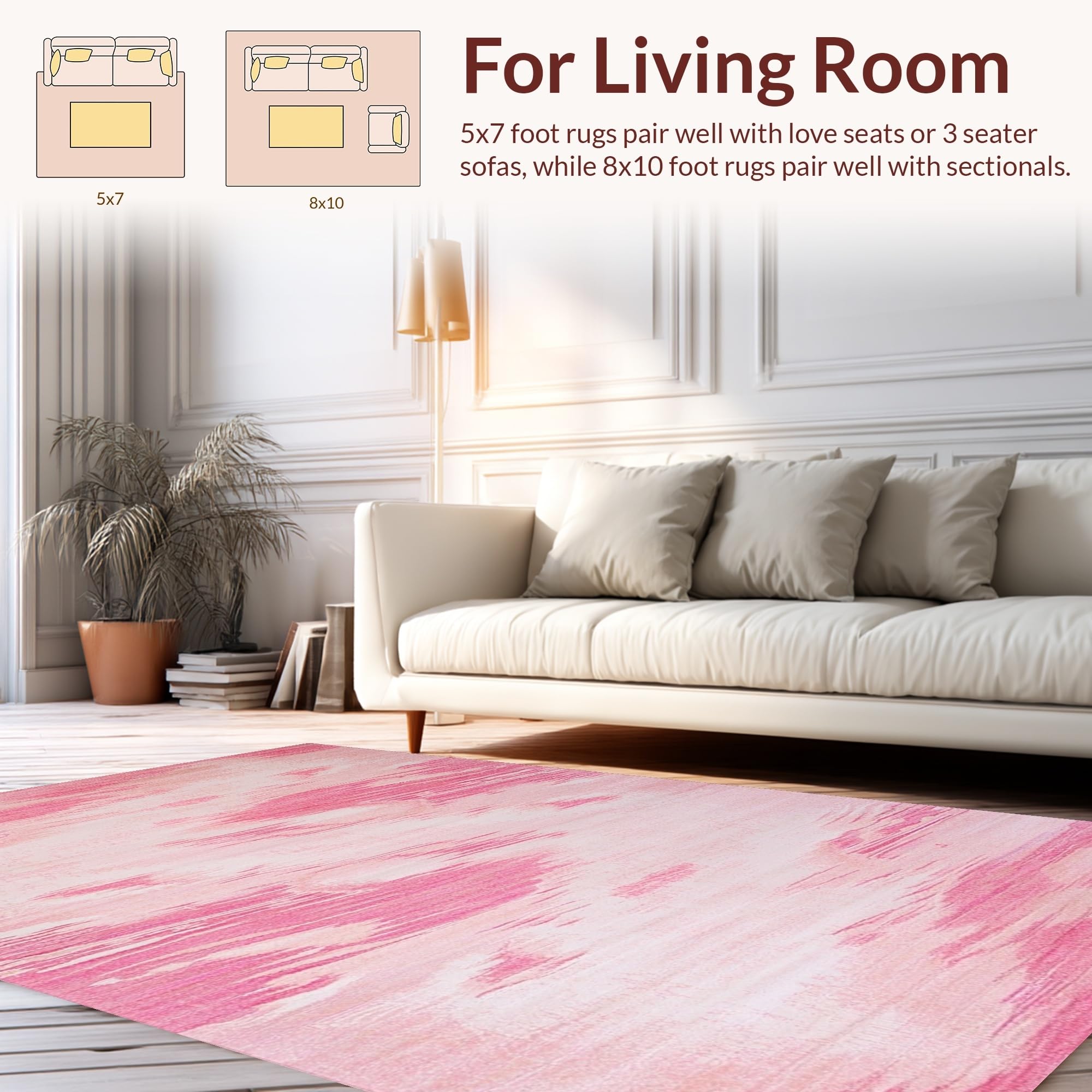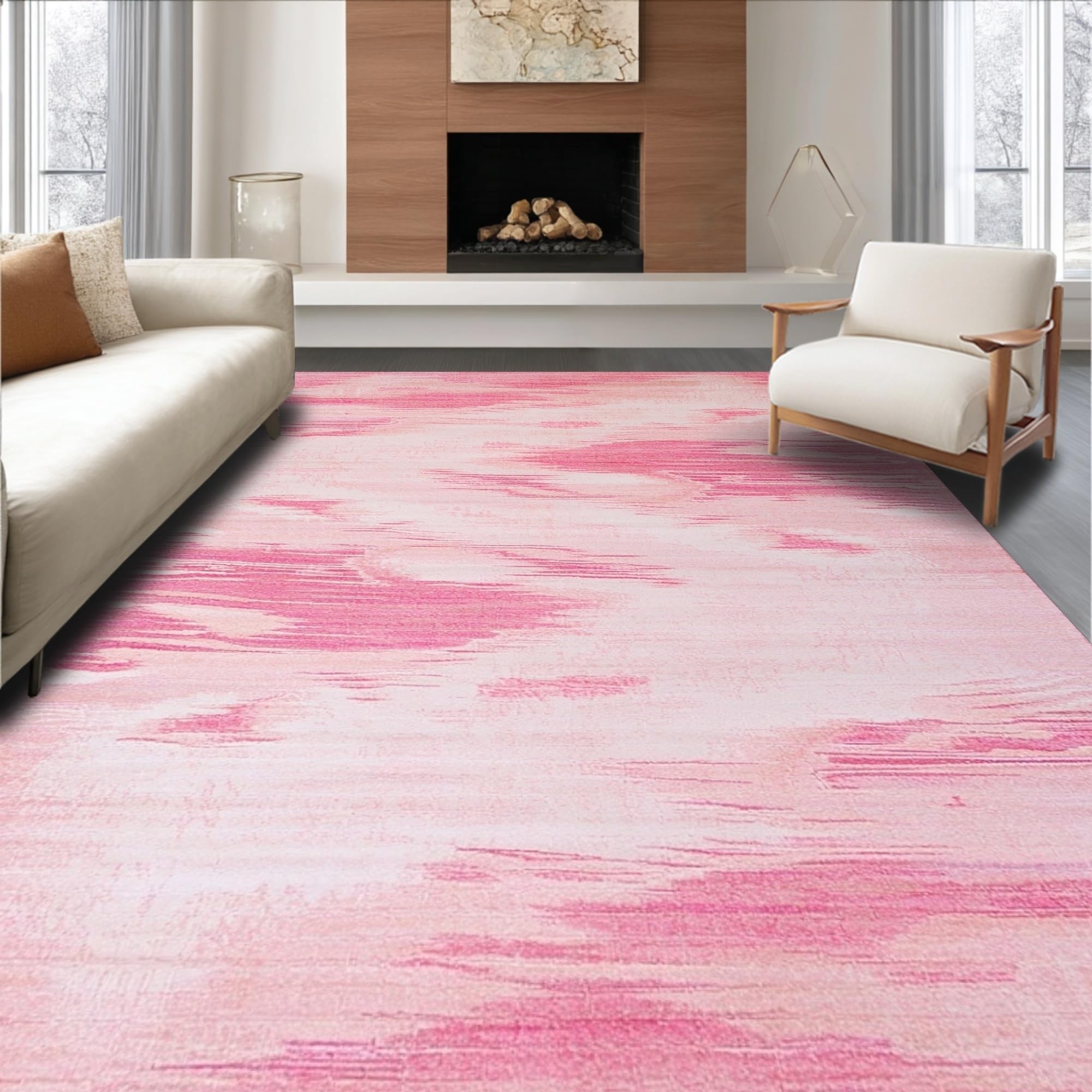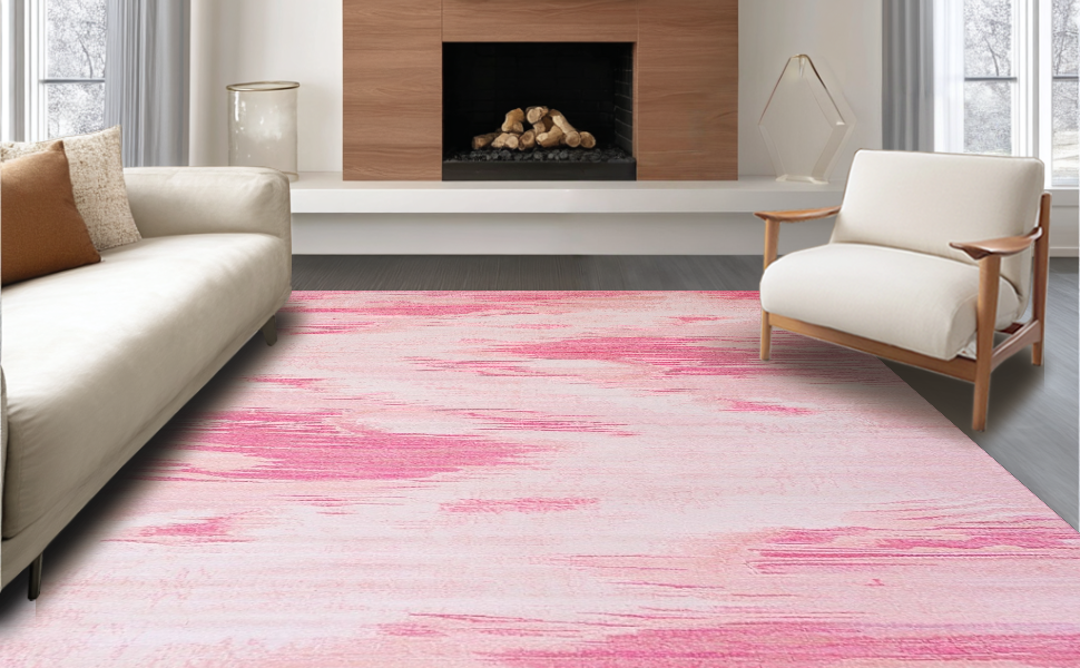 Ultra Soft Area Rug, Non Slip, Stain Resistant, Washable Area Rugs for Living Room, Bedroom, Modern Dreamy Gradient Finish(Pink) Overview: