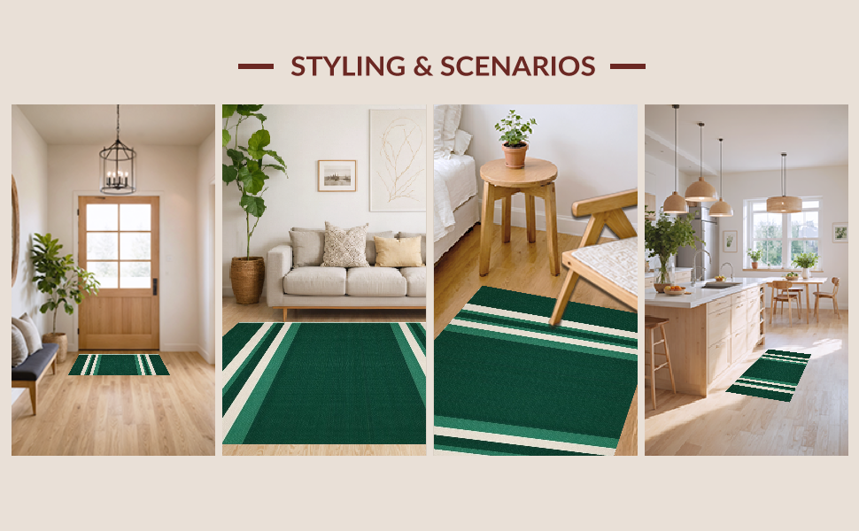 Ultra Soft Area Rug, Non Slip, Stain Resistant, Washable Area Rugs for Living Room, Bedroom, Modern Earthy Textural Layers(Green) Overview:
