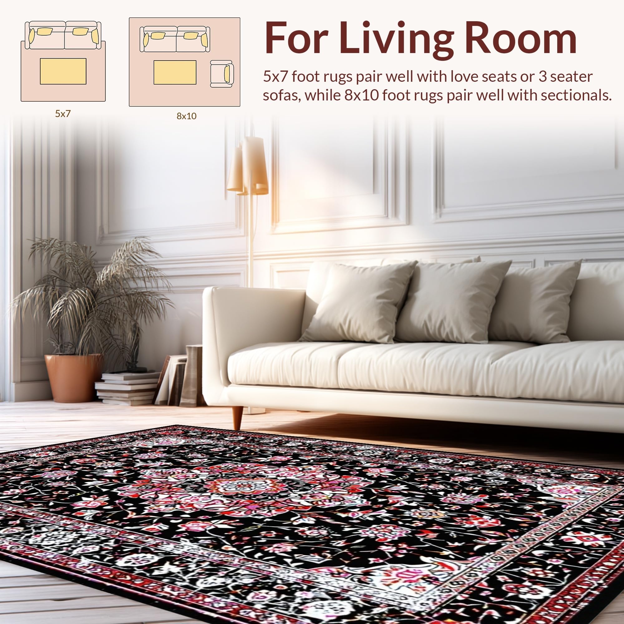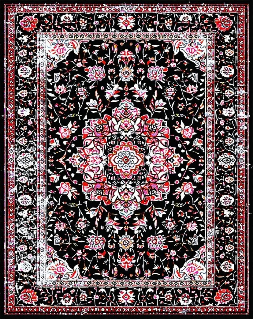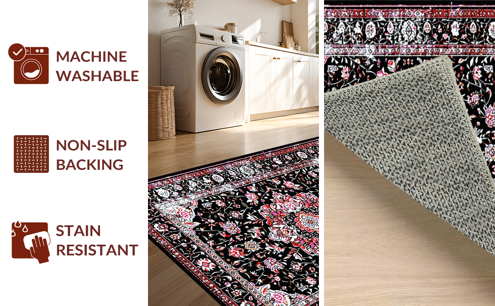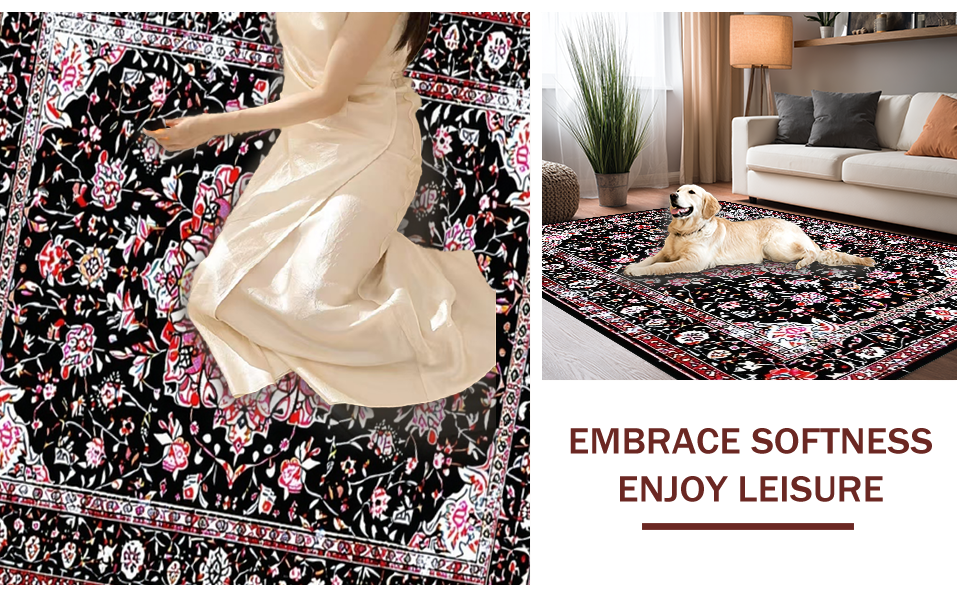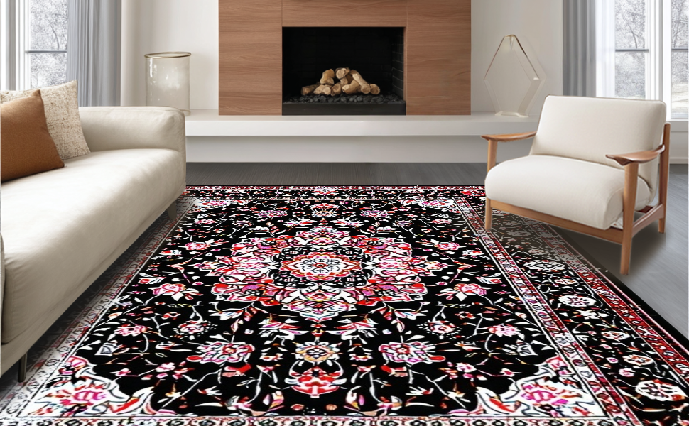 Ultra Soft Area Rug, Non Slip, Stain Resistant, Washable Area Rugs for Living Room, Bedroom, Modern Elegant Floral Geometry(Black) Overview: