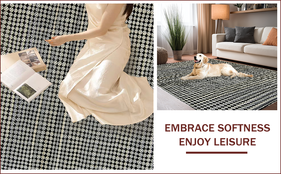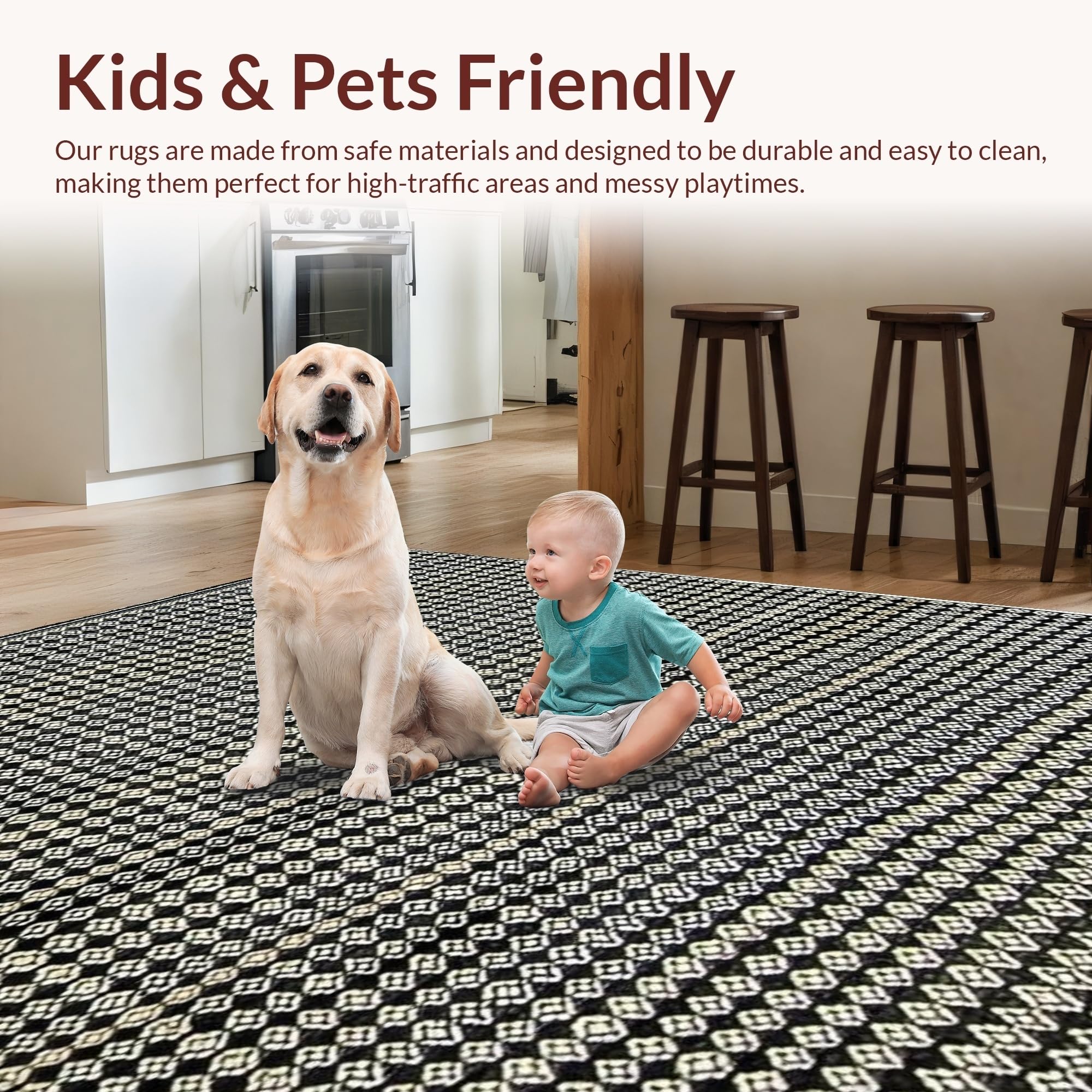 Ultra Soft Area Rug, Non Slip, Stain Resistant, Washable Area Rugs for Living Room, Bedroom, Modern Elegant Geometric Arrangement(Black) Overview: