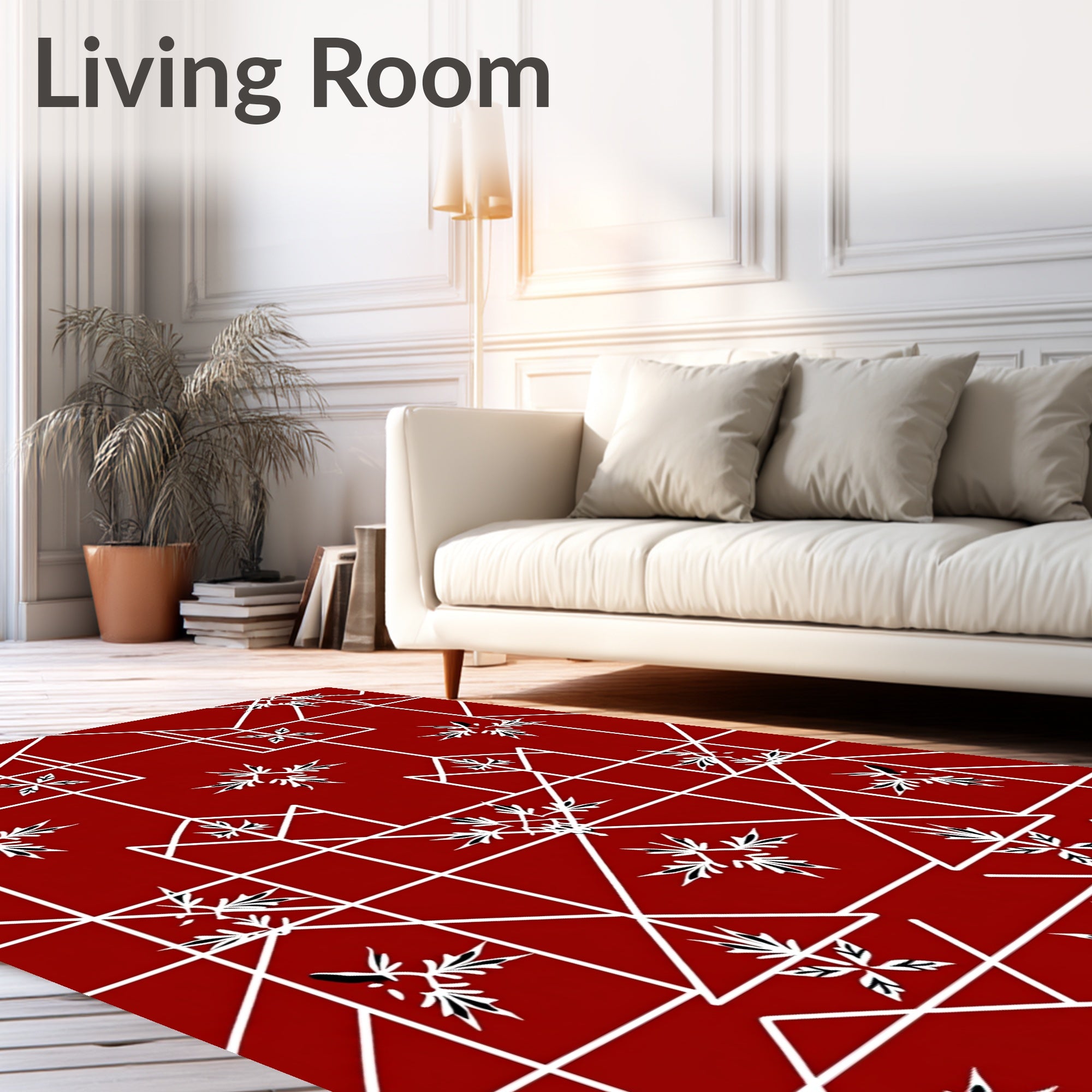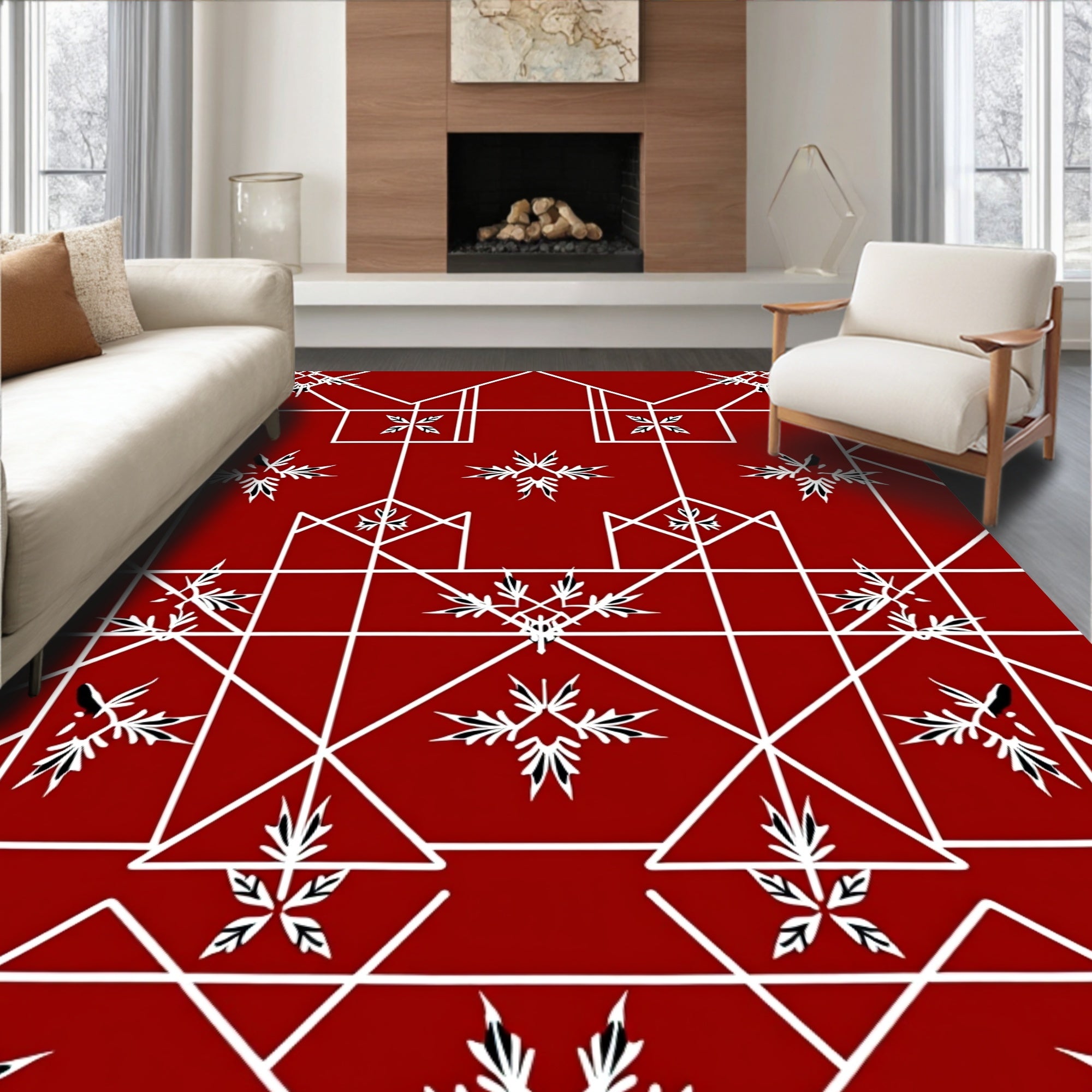 Ultra Soft Area Rug, Non Slip, Stain Resistant, Washable Area Rugs for Living Room, Bedroom, Modern Festive Checkered Grid with Minimalist Holly Leaf and Interlocking Lines(Red) Overview: