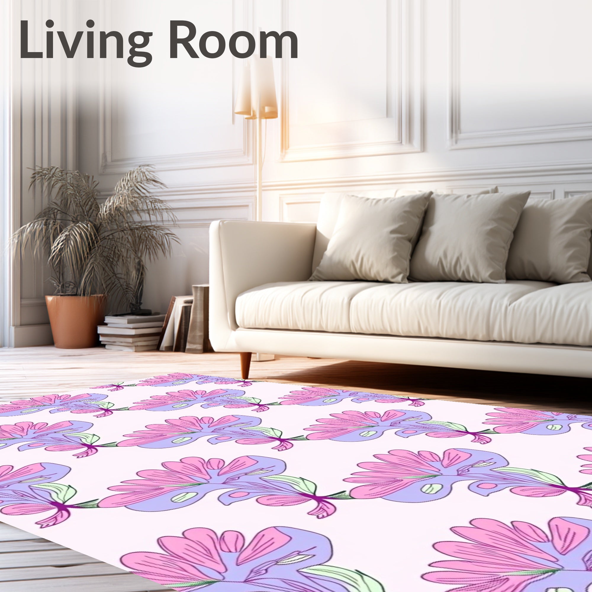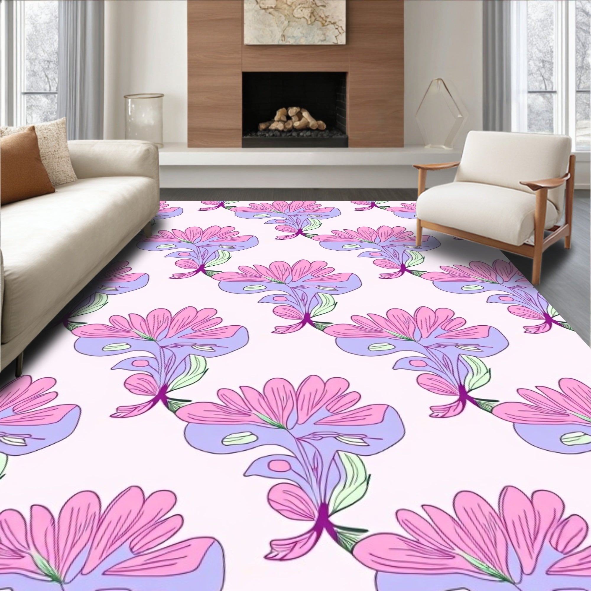 Flatwoven High Traffic Area Rug, Modern Floral Interlocking Tapestry with Stylized Petal Arrangements, Non Slip, Stain Resistant, Washable Area Rugs for Living Room, Bedroom (Pink) Overview: