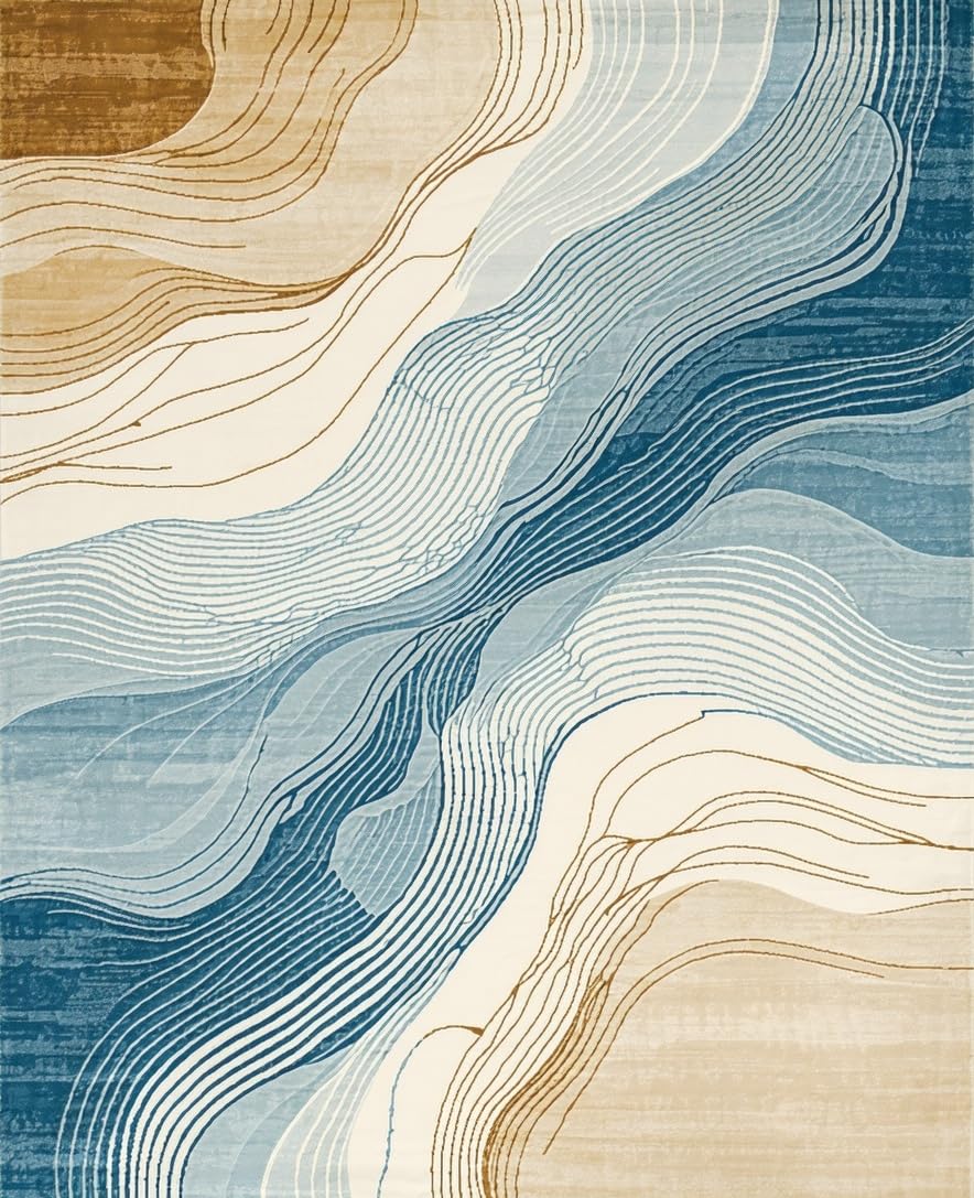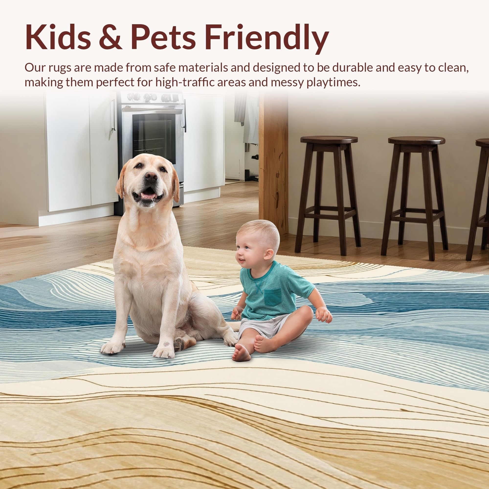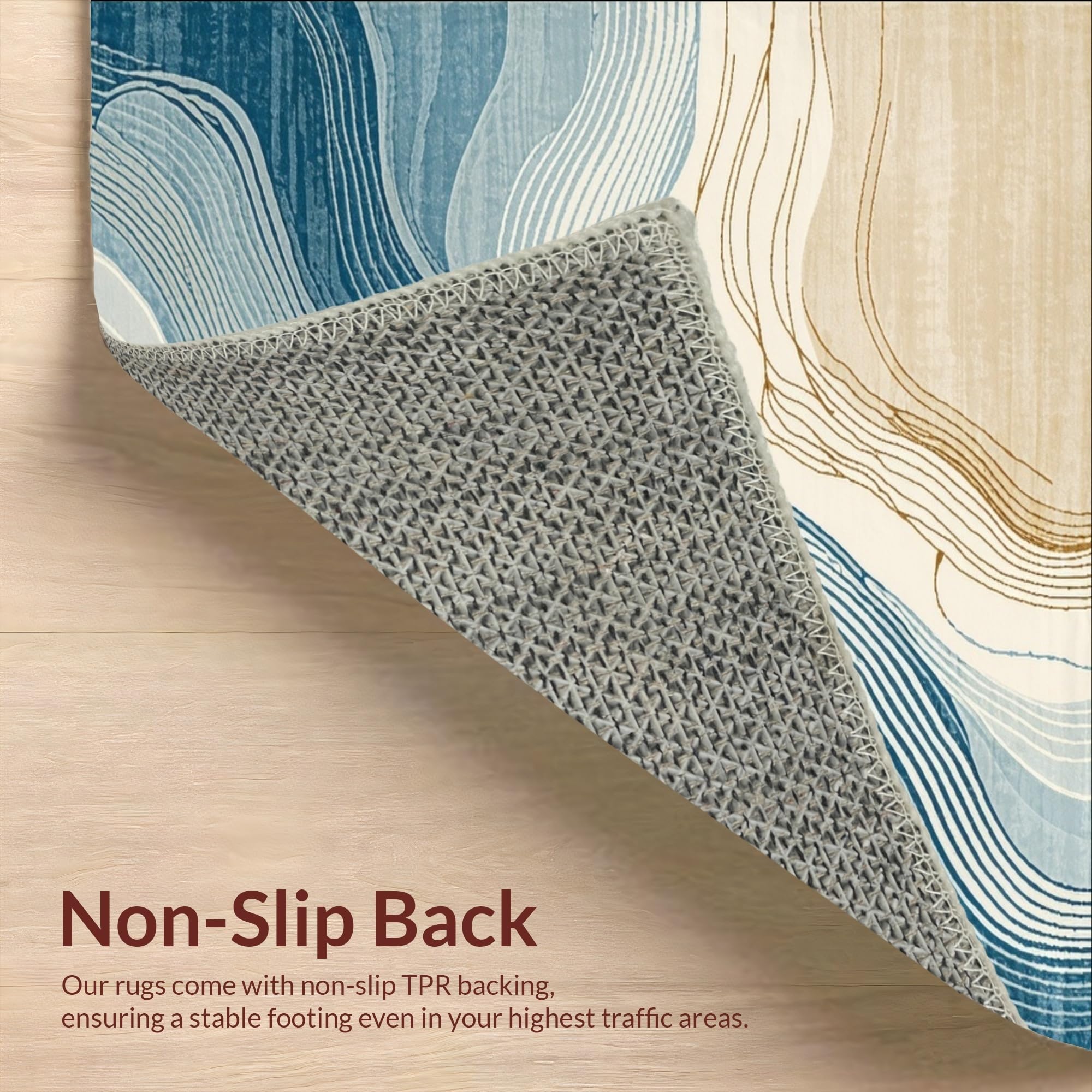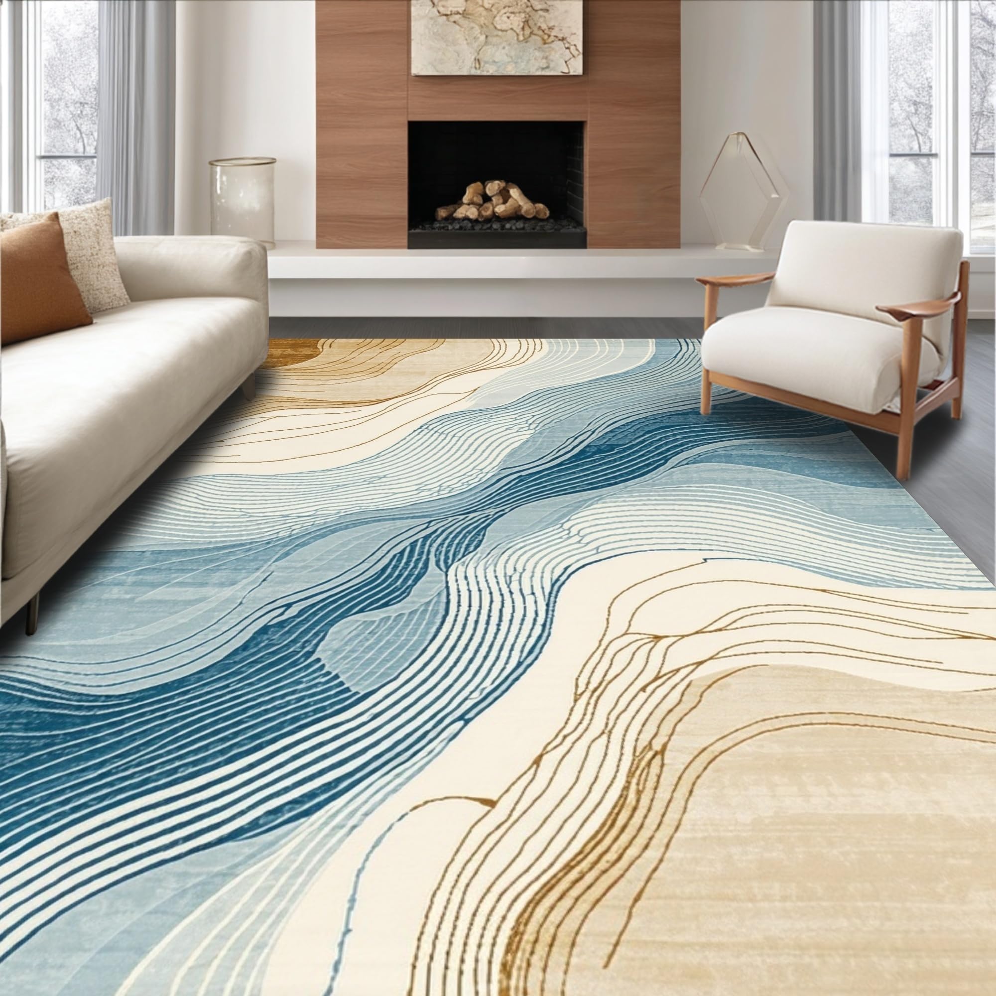 Ultra Soft Area Rug, Non Slip, Stain Resistant, Washable Area Rugs for Living Room, Bedroom, Modern Flowing Waters Area Tranquil River Abstract(Beige) Overview: