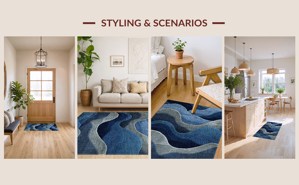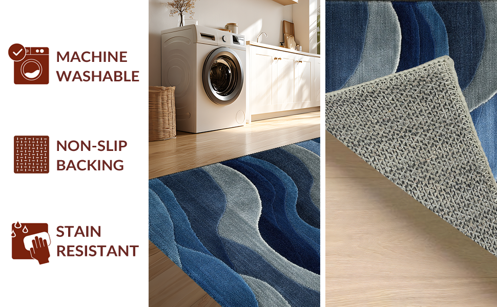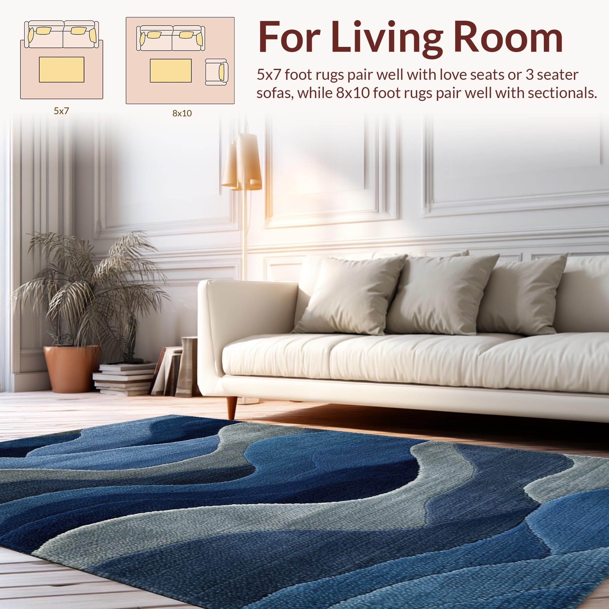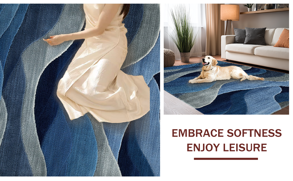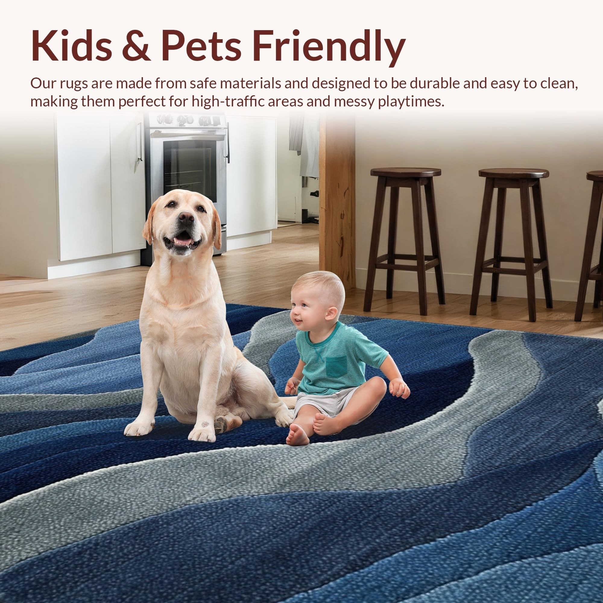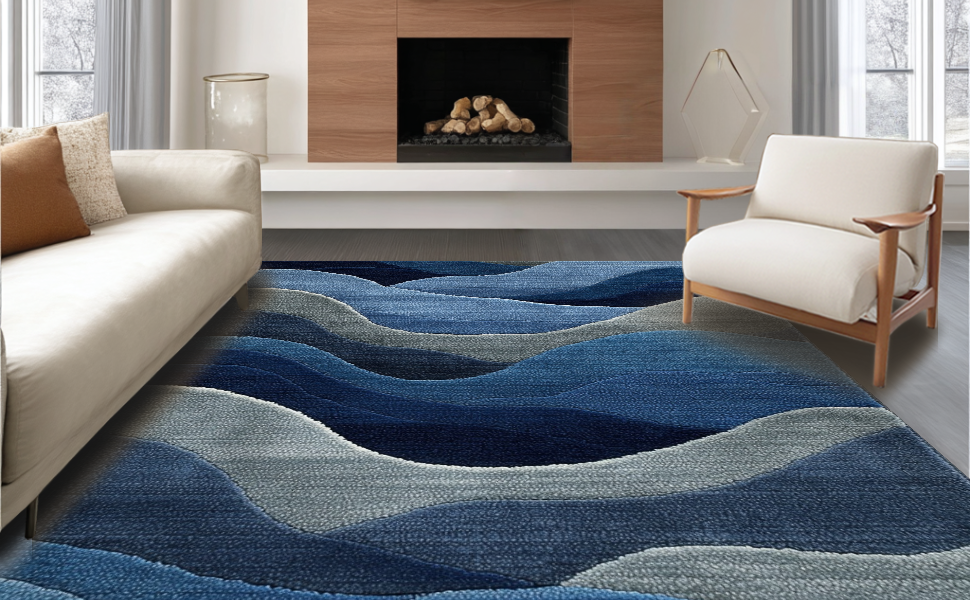 Ultra Soft Area Rug, Non Slip, Stain Resistant, Washable Area Rugs for Living Room, Bedroom, Modern Fluid Wave Artistry Concept(Blue) Overview: