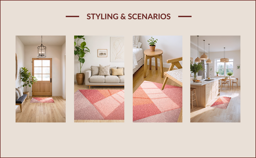 Ultra Soft Area Rug, Non Slip, Stain Resistant, Washable Area Rugs for Living Room, Bedroom, Modern Geometric 3D Texture(Pink) Overview: