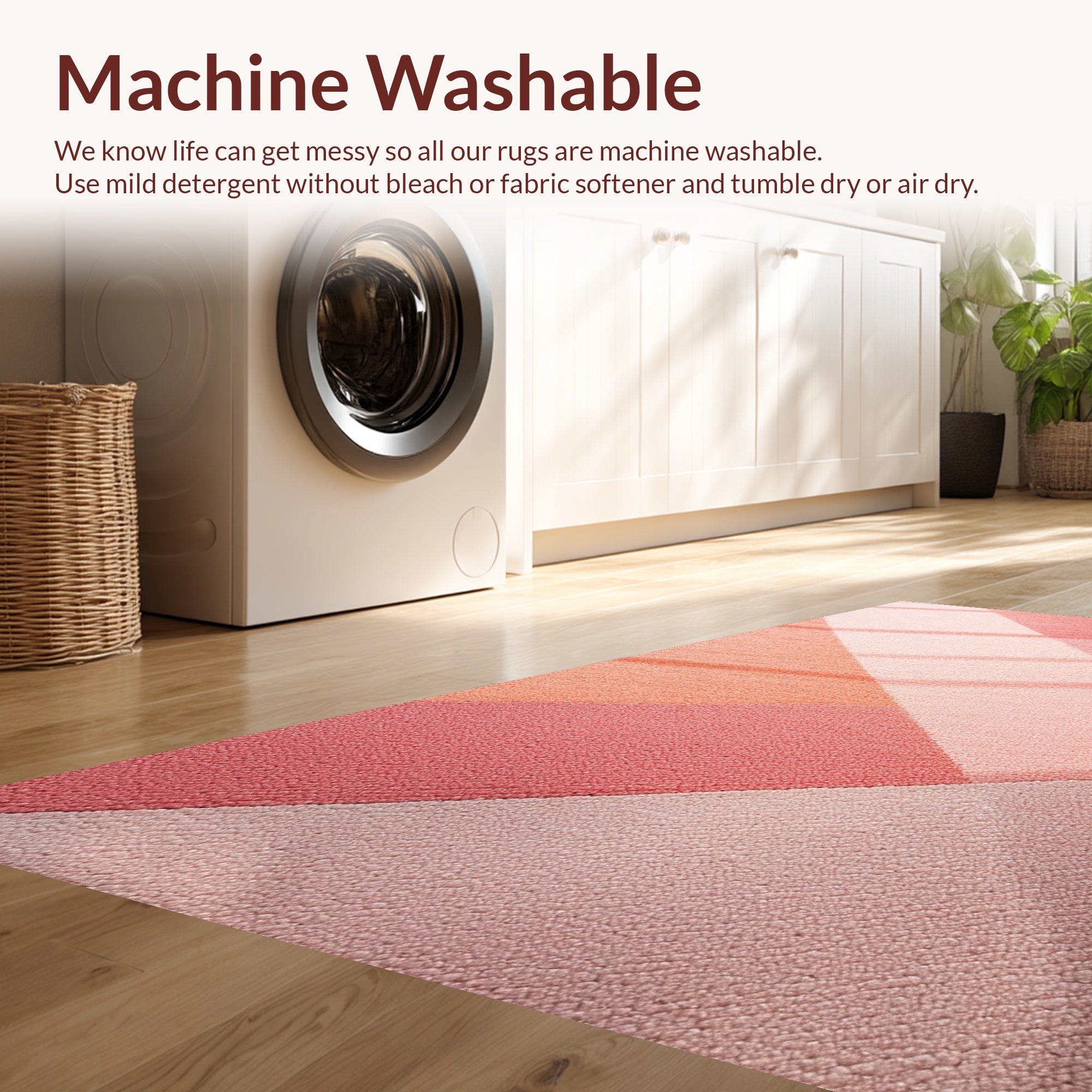 - Machine Washable: Our rugs can be easily thrown in the wash machine.