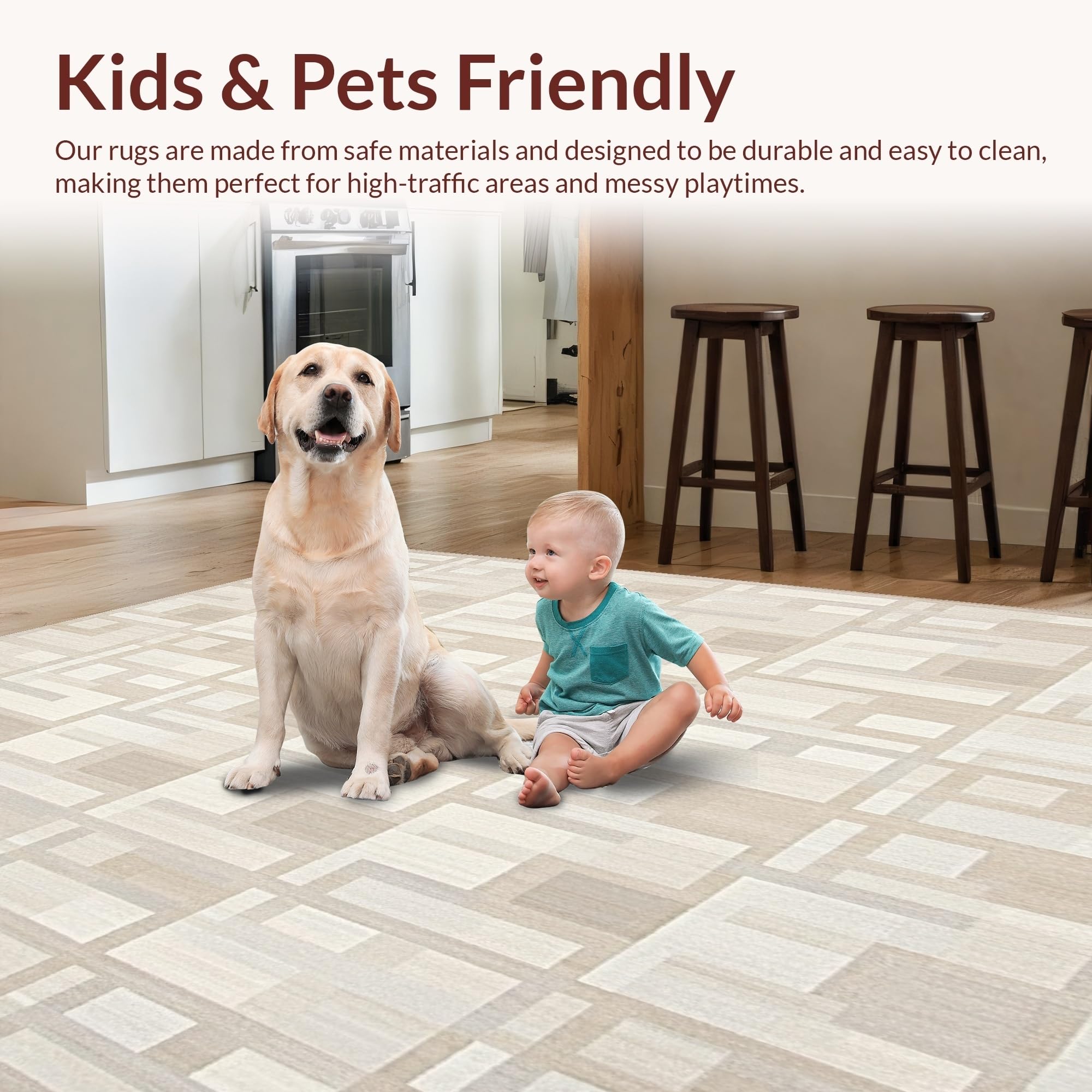 Ultra Soft Area Rug, Non Slip, Stain Resistant, Washable Area Rugs for Living Room, Bedroom, Modern Geometric Area Stylish Checkered Design and Durable(Beige) Overview: