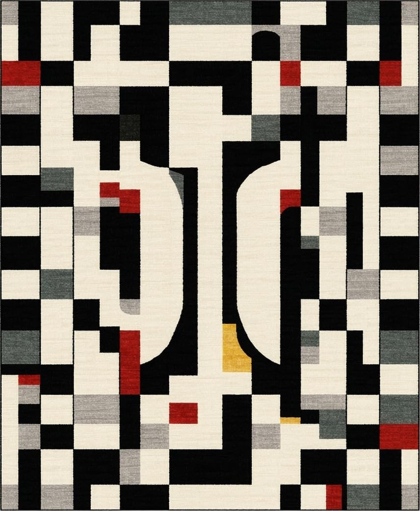 Modern Geometric Area with Bold Beige and Black Design(Black)