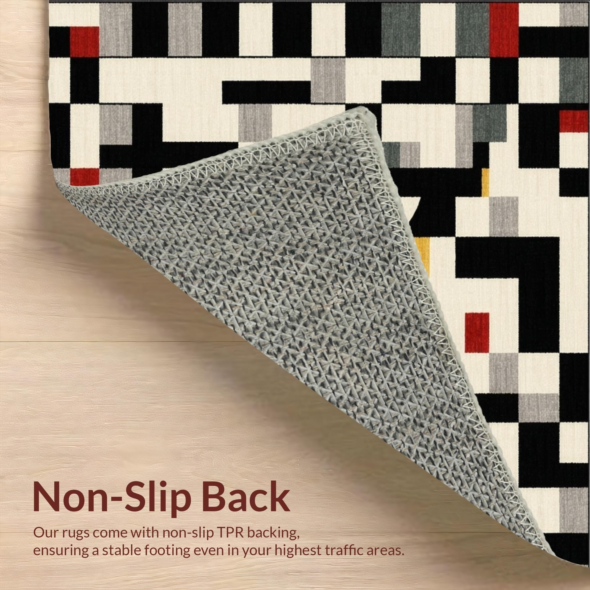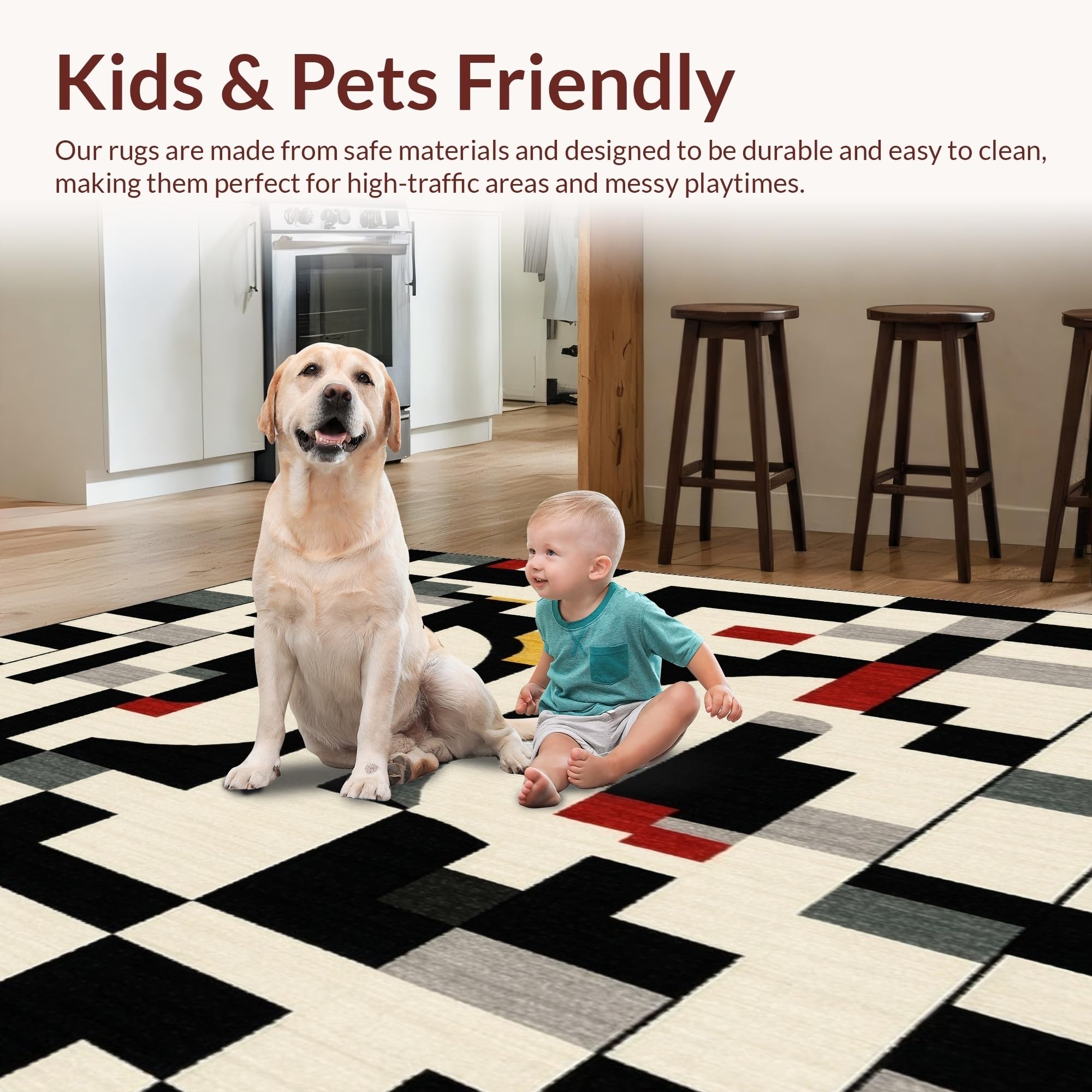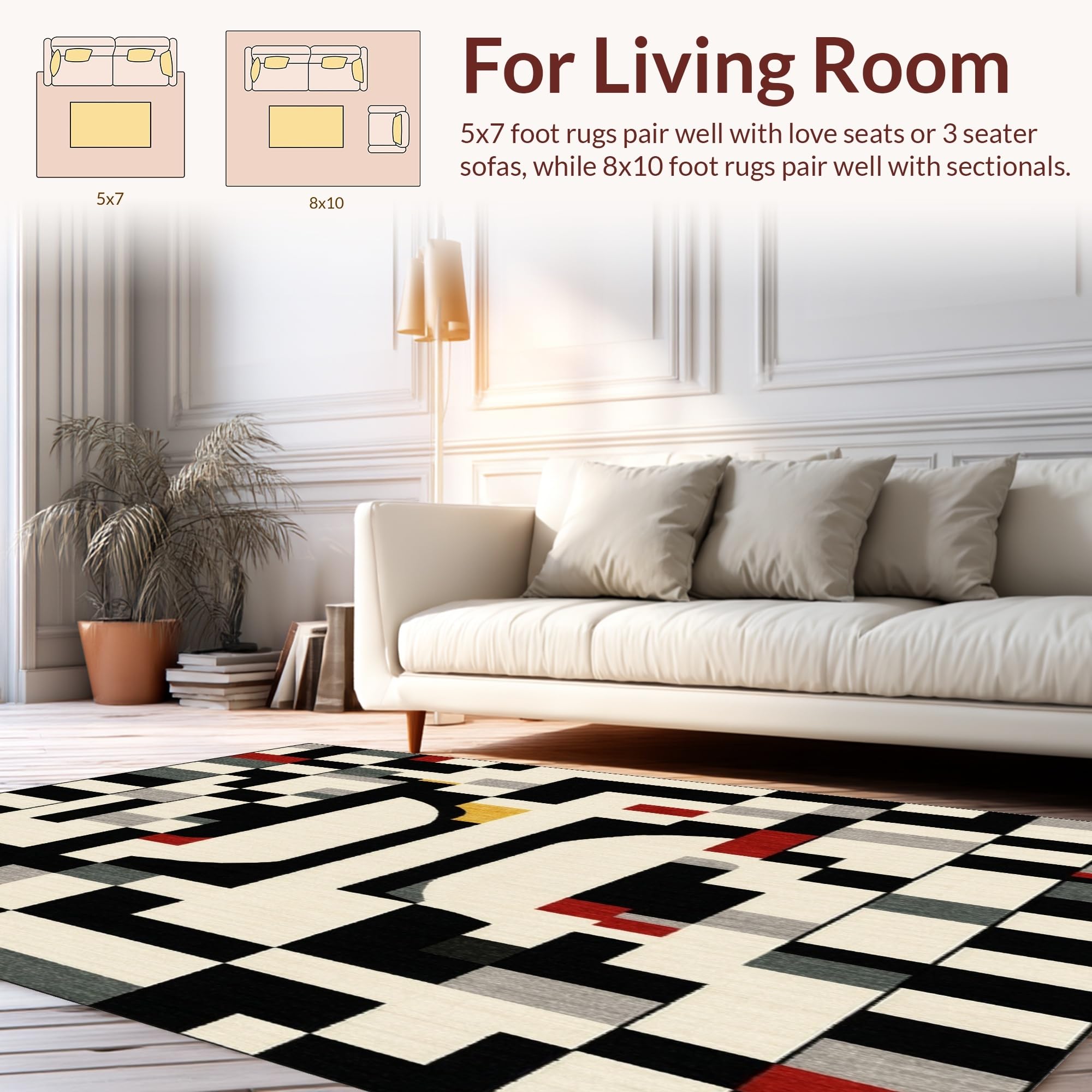 Ultra Soft Area Rug, Non Slip, Stain Resistant, Washable Area Rugs for Living Room, Bedroom, Modern Geometric Area with Bold Beige and Black Design(Black) Overview: