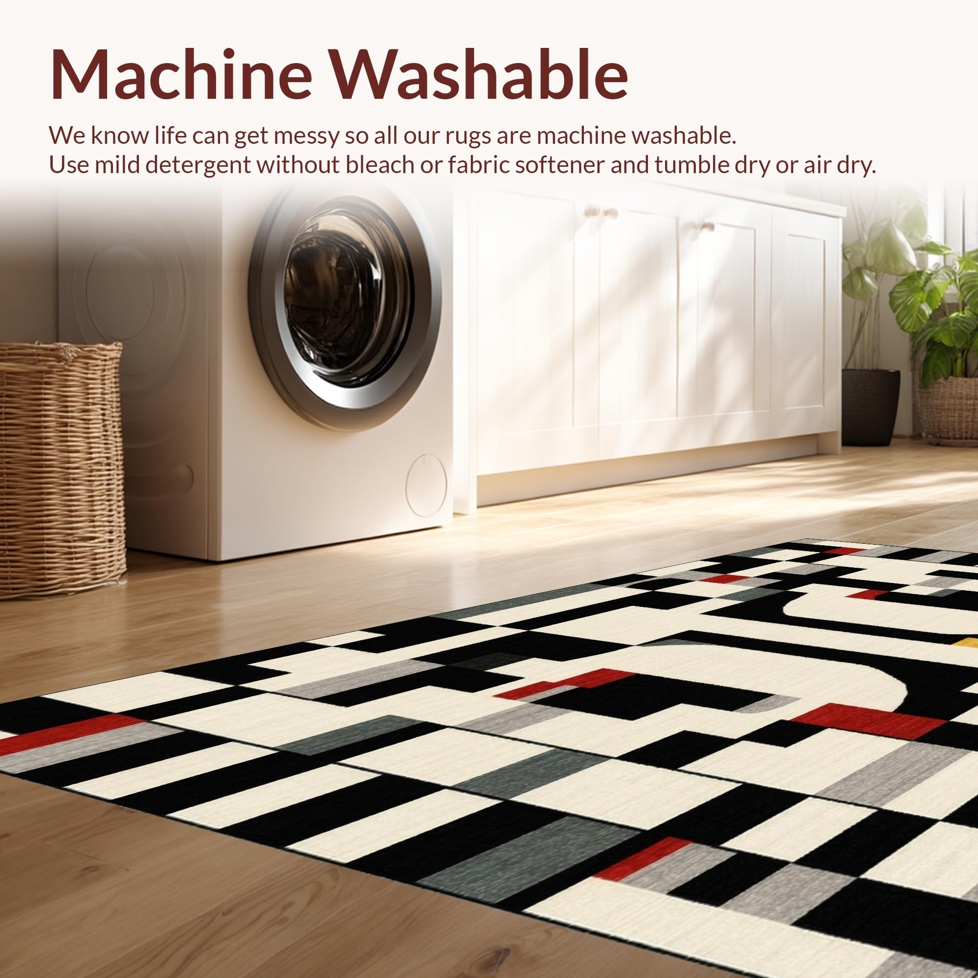 - Machine Washable: Our rugs can be easily thrown in the wash machine.